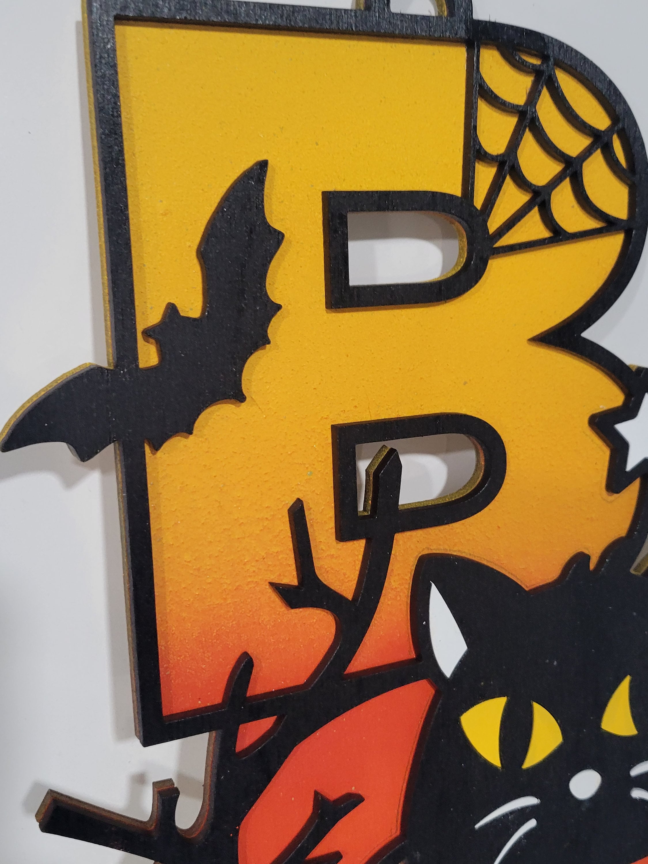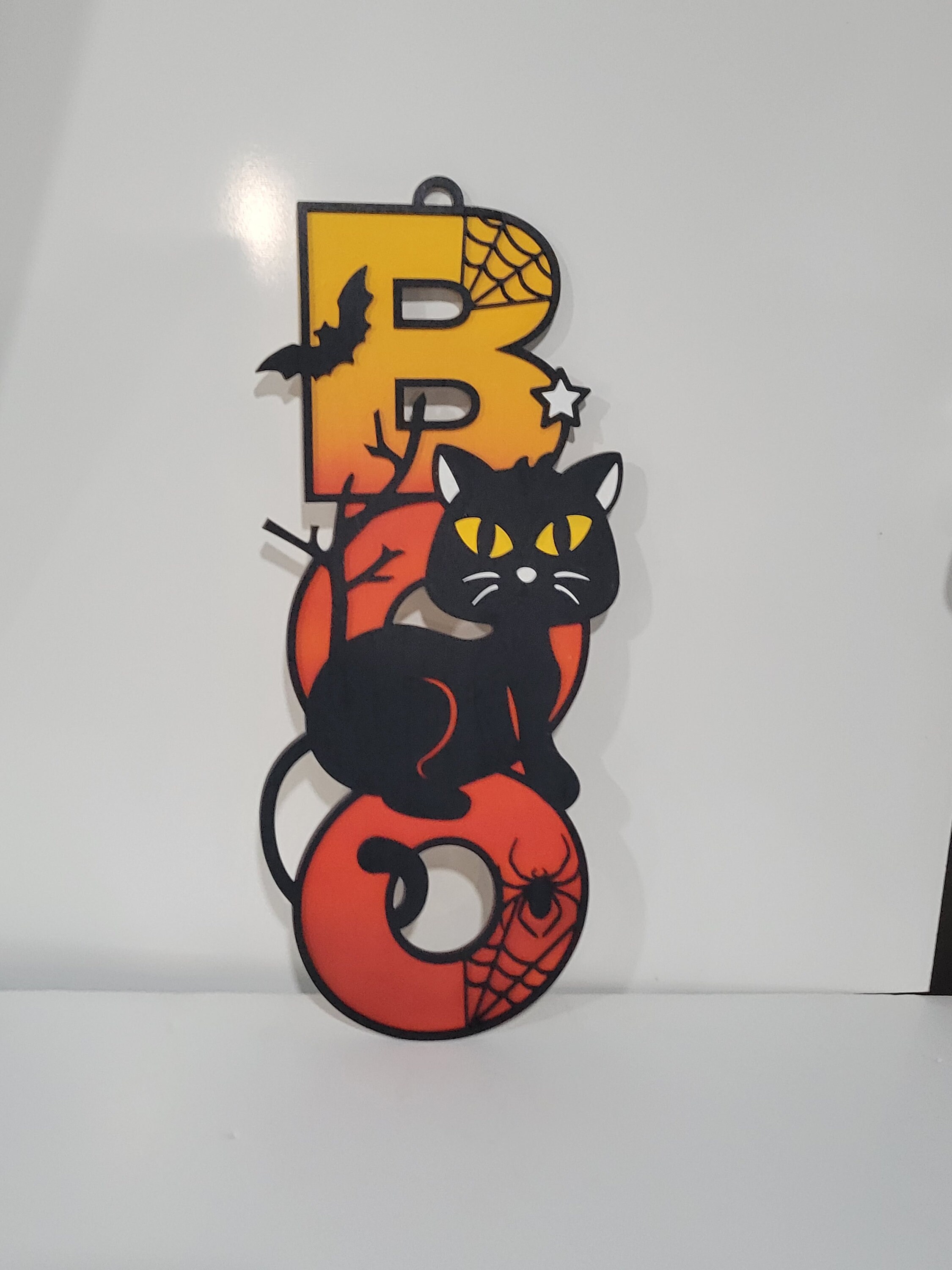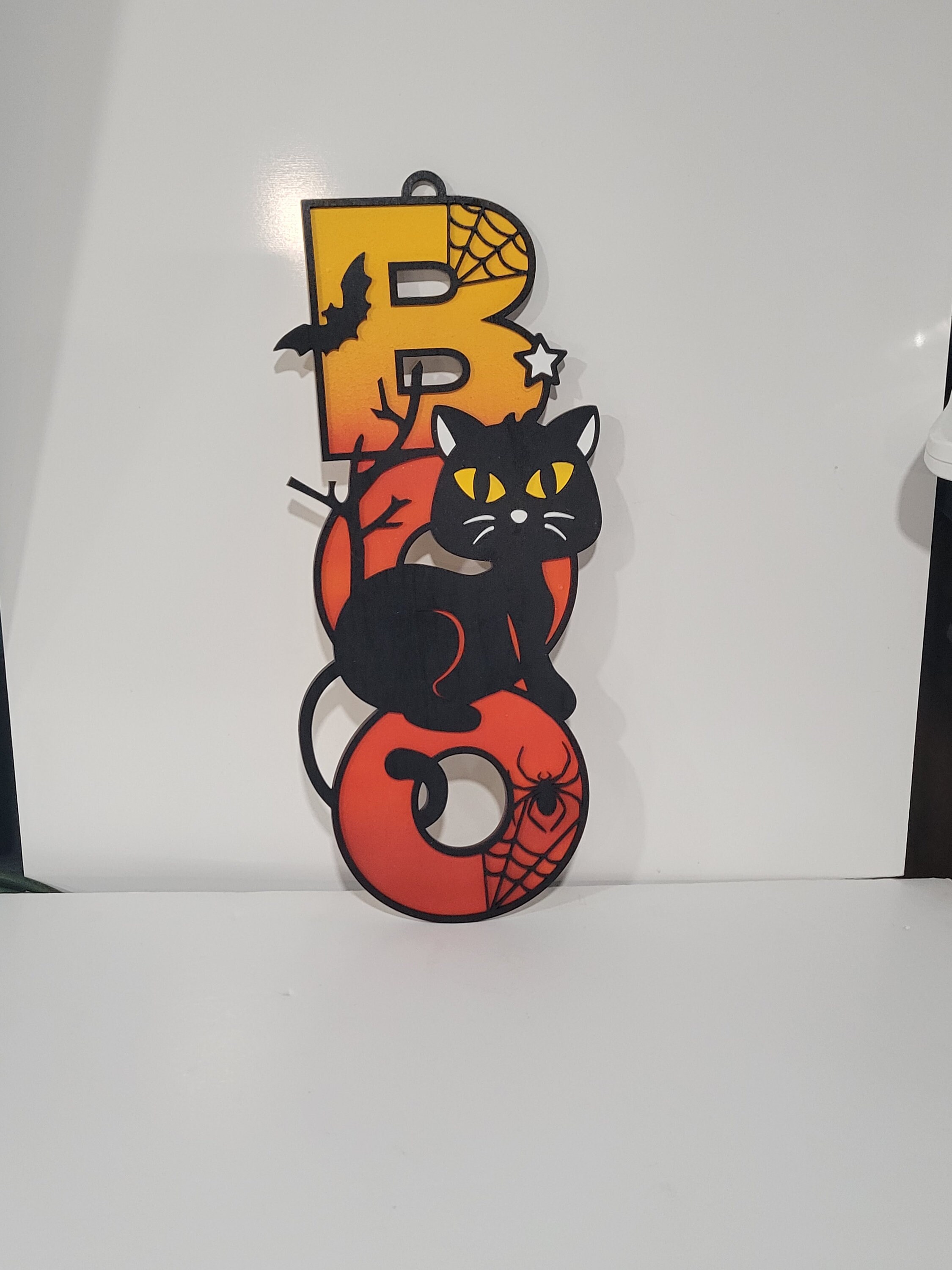This adorable wood cat sign is made from two layers of Baltic birch wood and spray painted.