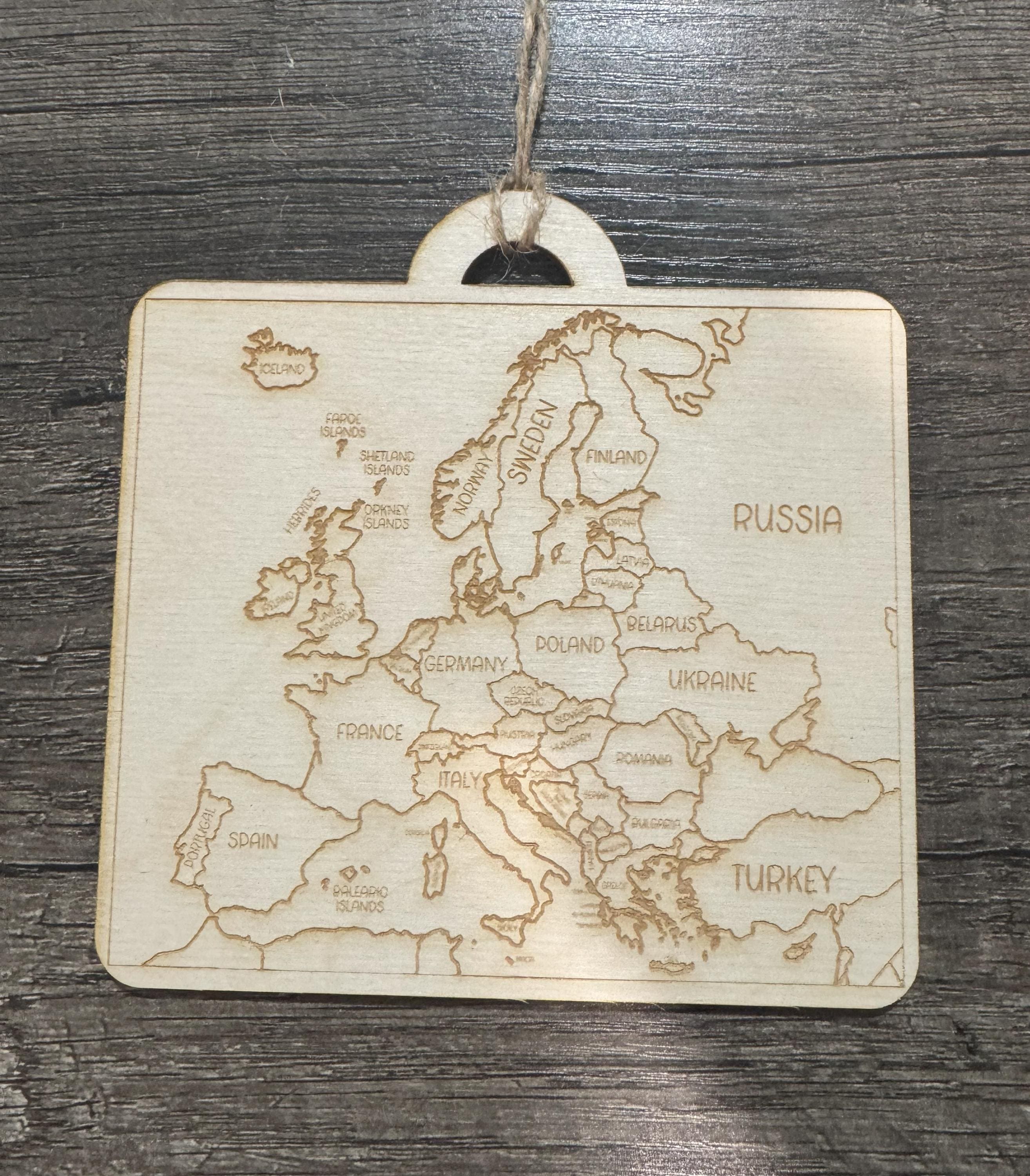 This is an SVG file for all seven color-your-own travel map ornaments. This includes North America, USA, world traveler, South America, Africa, Asia, and Europe.