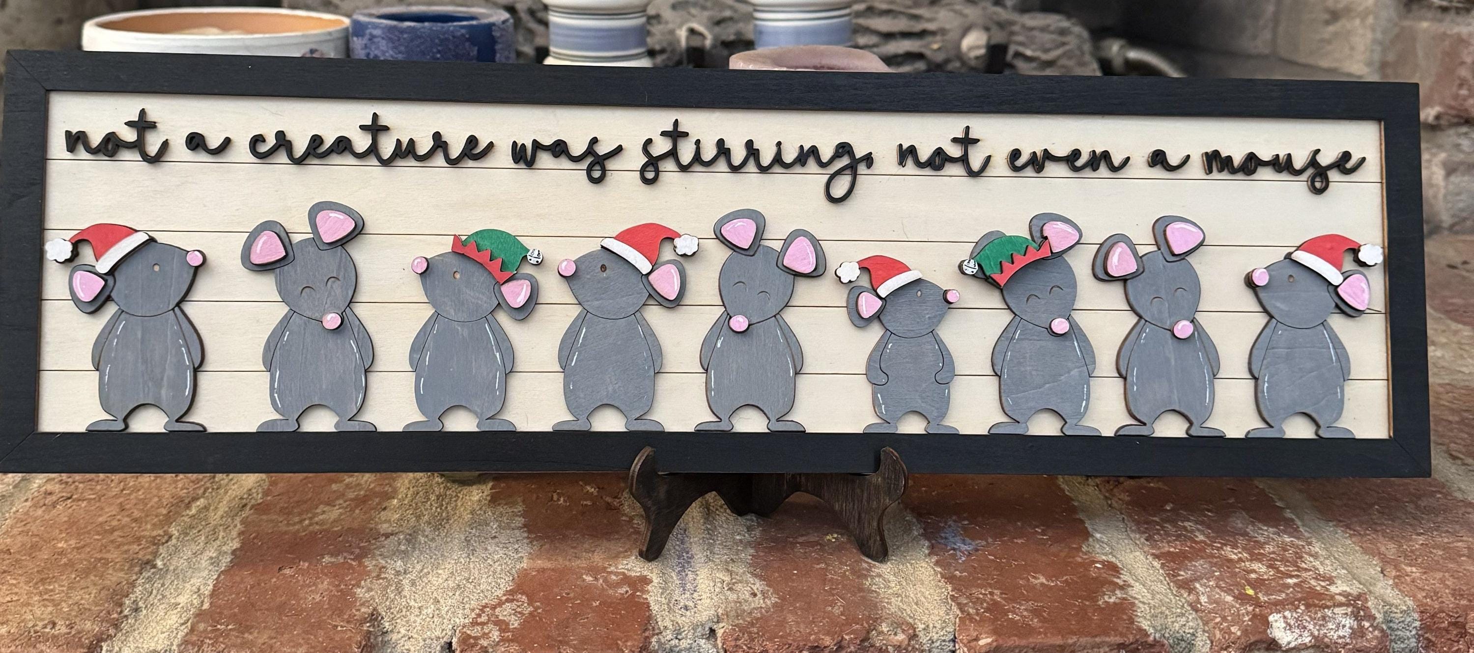 If ordering a custom sign, please leave the following details at checkout: number of mice & frame color, text color, any special requests for the mice