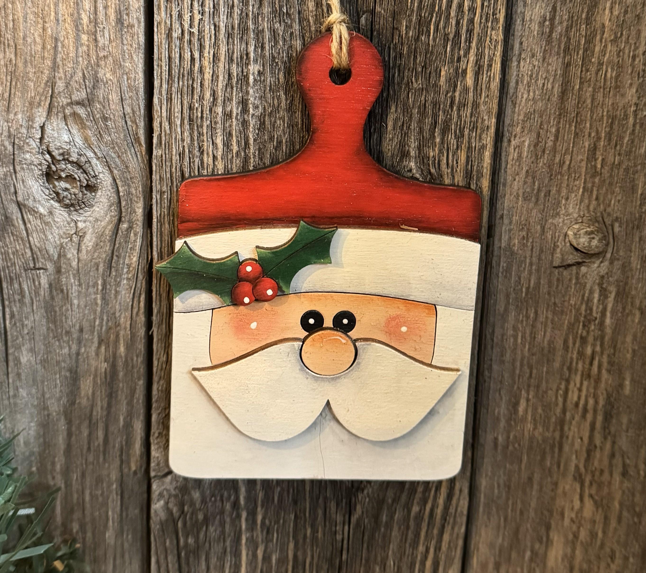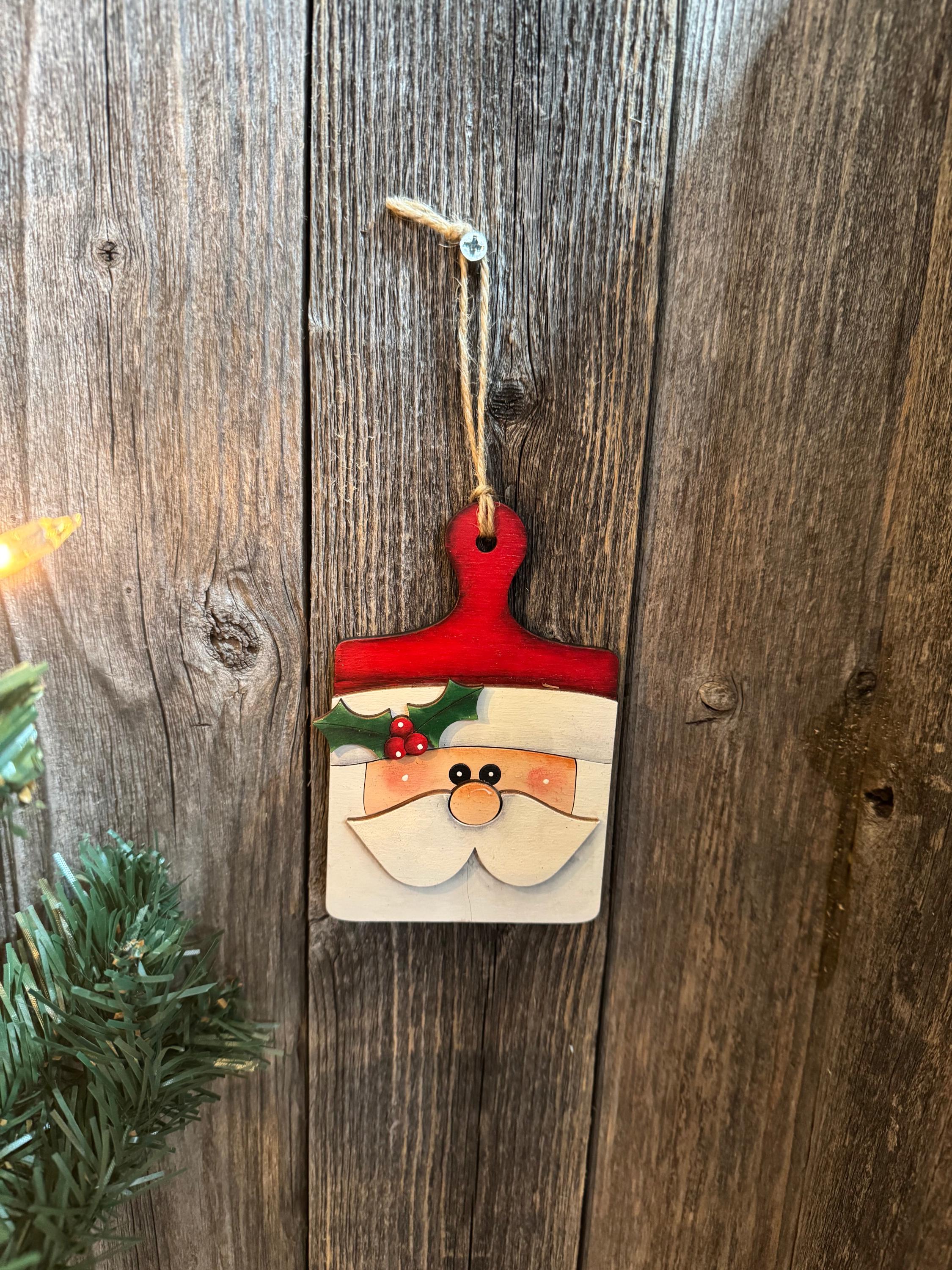 Bring festive cheer to your kitchen with this charming Santa Breadboard Ornament. Featuring a jolly Santa face crafted onto a classic breadboard shape, this unique piece celebrates the joy of holiday cooking and entertaining. Perfect for hanging on your tree, displaying in your kitchen, or gifting to the baker in your life, it combines two beloved traditions—Christmas spirit and culinary warmth. A delightful conversation starter that reminds you to embrace the magic of the season while you create delicious memories with loved ones.