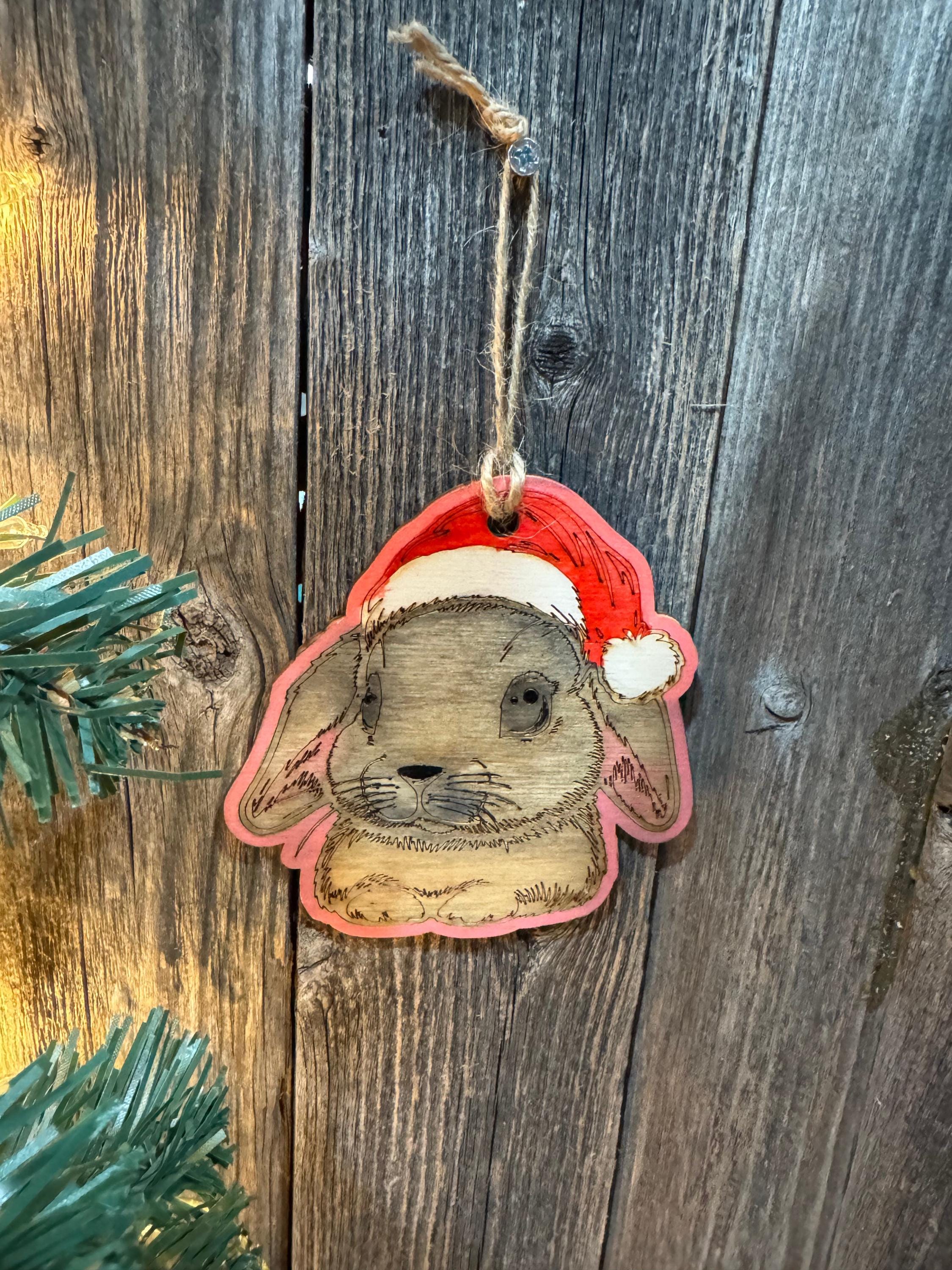 Bring festive cheer to your tree with this delightful watercolor bunny rabbit ornament, complete with a cheerful Santa hat. Perfect for animal lovers and holiday decorators alike, this charming piece captures the whimsy of the season with its soft, artistic watercolor style. Whether you're a bearded dragon enthusiast or simply adore unique Christmas decorations, this ornament adds personality and warmth to your holiday display. A thoughtful gift for anyone who appreciates nature-inspired art and festive fun.