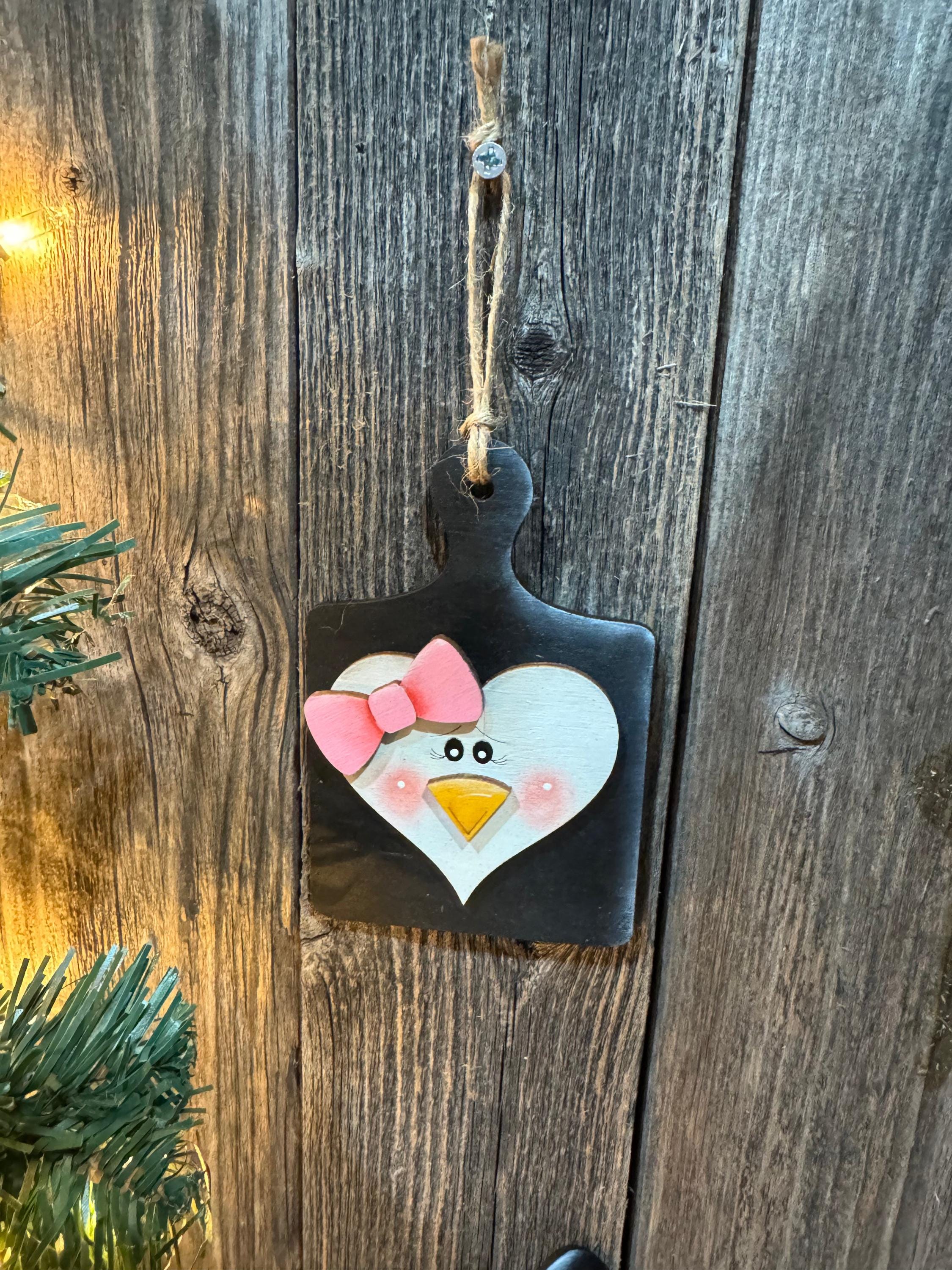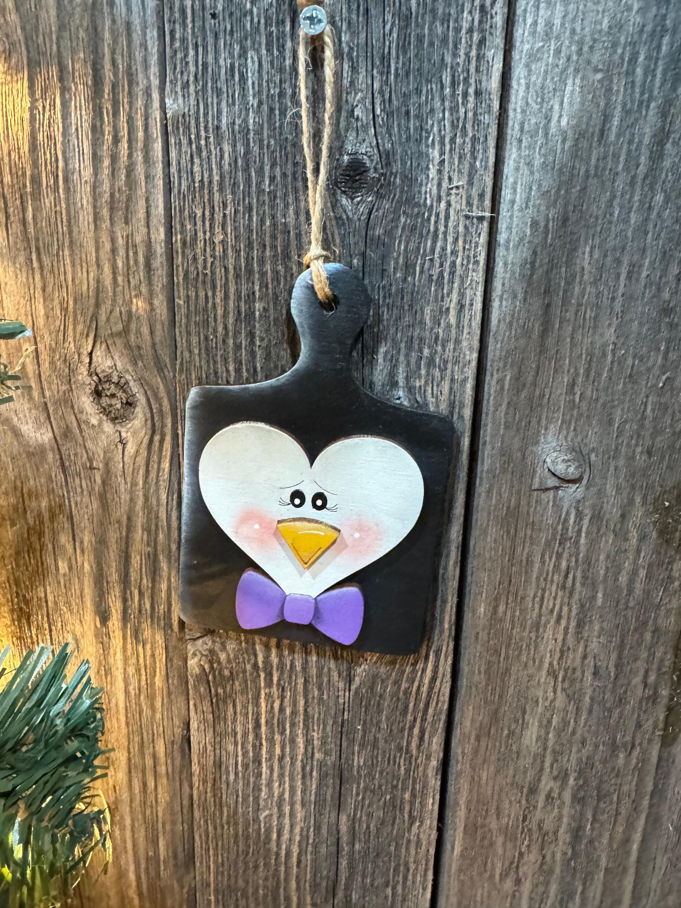 Bring festive cheer to your kitchen with this delightful breadboard penguin face ornament set. Each charming piece features adorable penguin designs that capture the playful spirit of the season. Perfect for decorating your holiday tree, kitchen shelves, or gifting to fellow cooking enthusiasts, these ornaments celebrate the joy of gathering around good food and warm memories. Made with care, they're a whimsical way to add personality to your seasonal décor while honoring your love of baking and cooking.