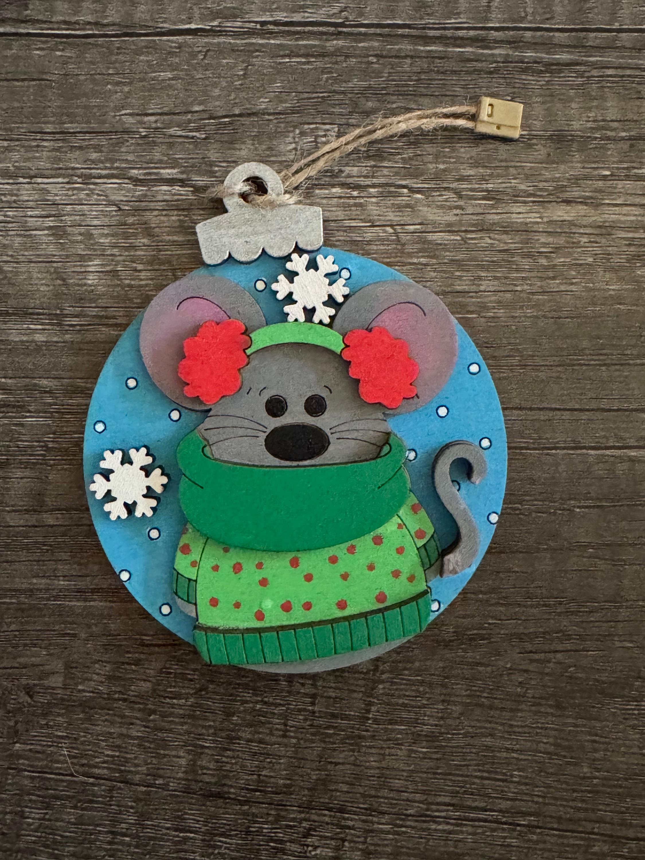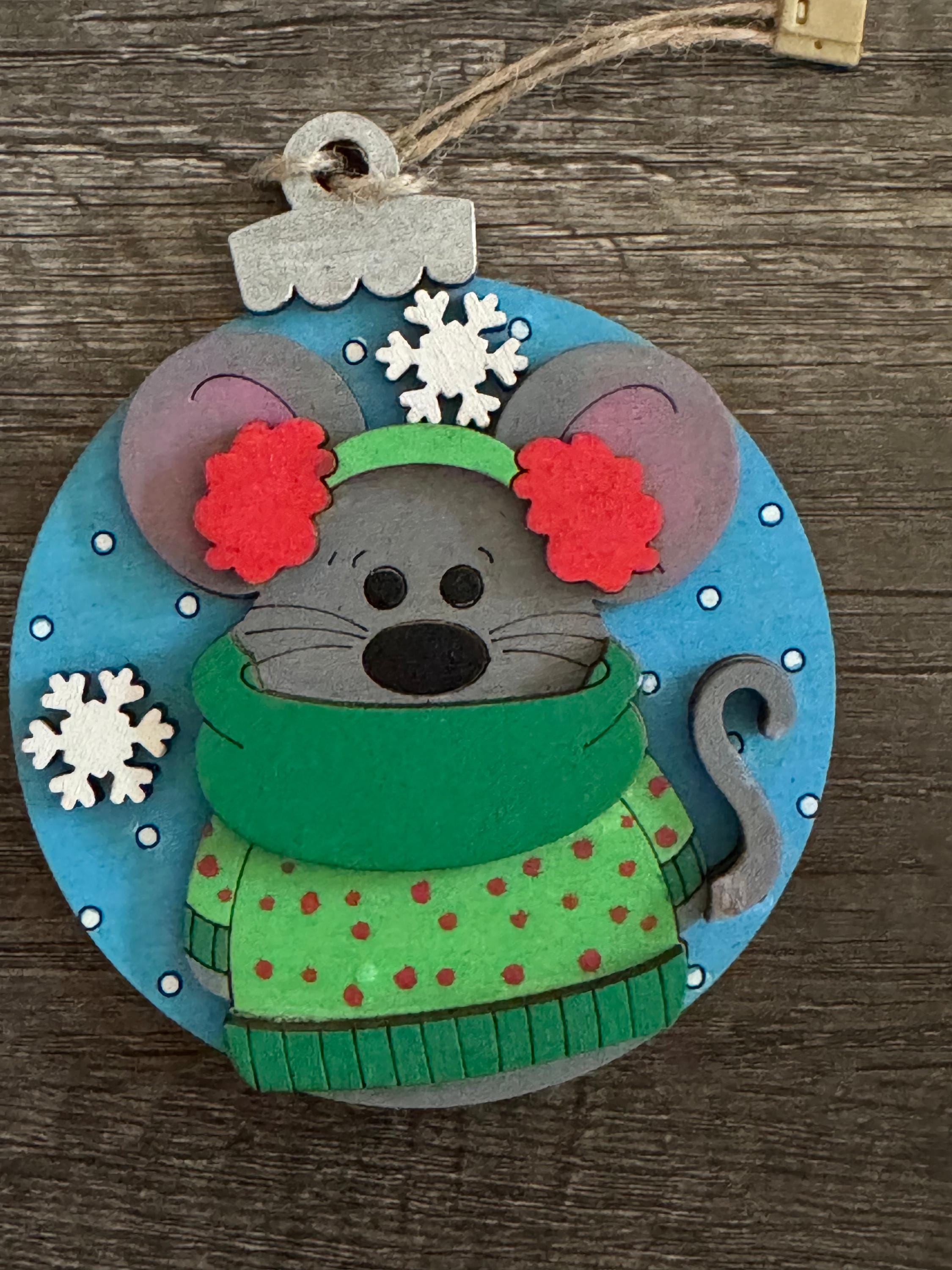 Discover the sweetness of the season with this adorable mouse ornament, bundled up in ear muffs, a soft scarf, and a snug sweater. Crafted with intricate layered wood construction, this petite treasure brings warmth and whimsy to your holiday tree. It's perfect for collectors who love charming woodland creatures and those seeking ornaments with genuine character. Available in stock and ready to brighten your home, with custom options to personalize your keepsake. A delightful reminder that the holidays are about finding joy in life's smallest, most precious moments.