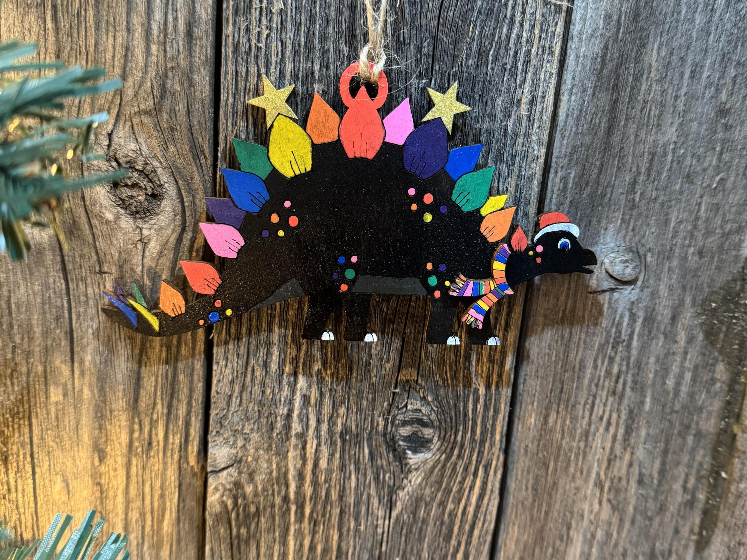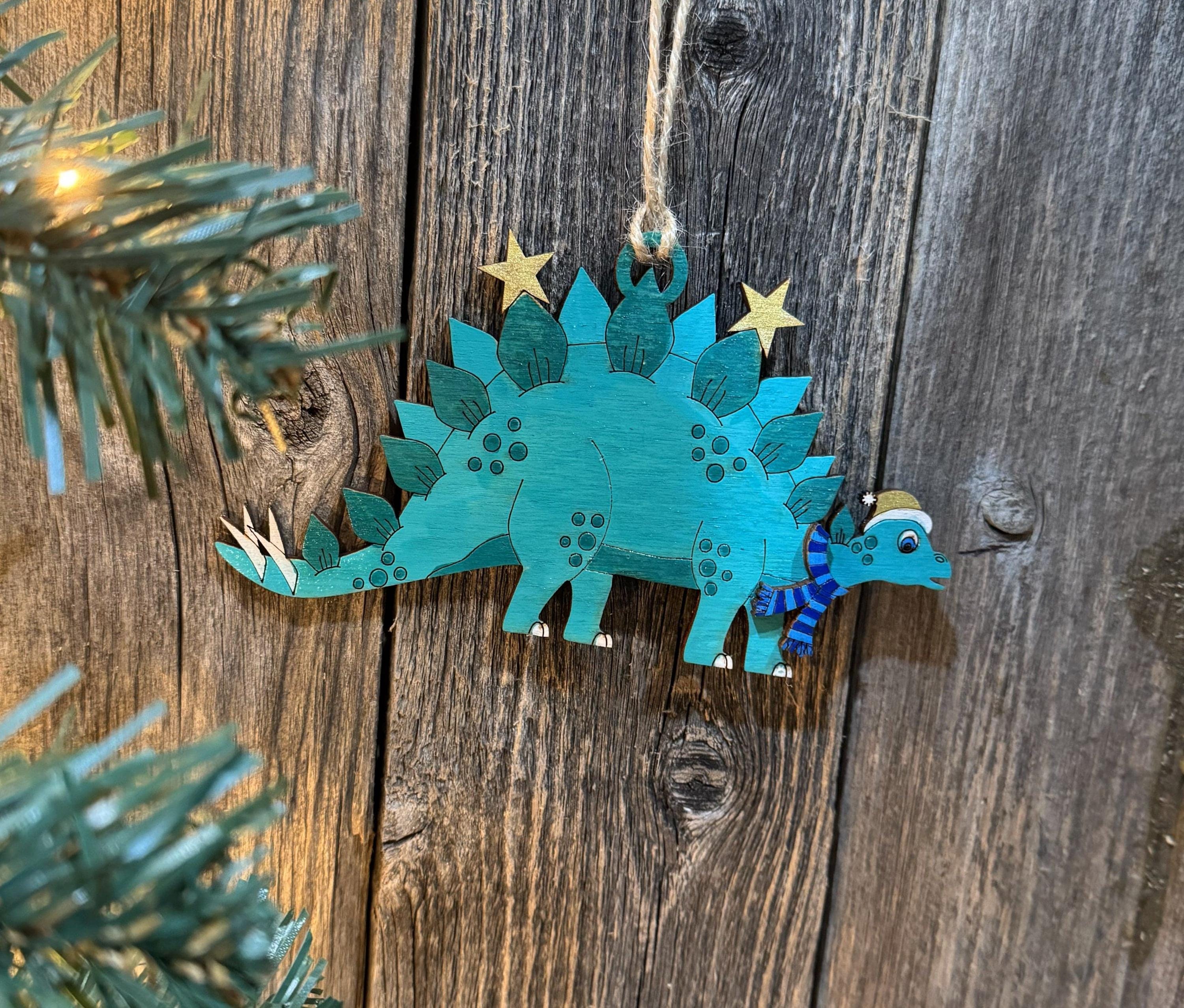 Bring prehistoric charm to your holiday décor with these delightful dinosaur cut-out ornaments. Choose between a fearsome T-Rex or a spiky Stegosaurus to match your style. Perfect for hanging on your tree, displaying in your car, or gifting to dino enthusiasts of all ages. Each ornament captures the playful spirit of winter while celebrating these beloved creatures. Available in ready-made designs or customize your own for a truly personal touch. Add a roaring good time to your seasonal celebrations.