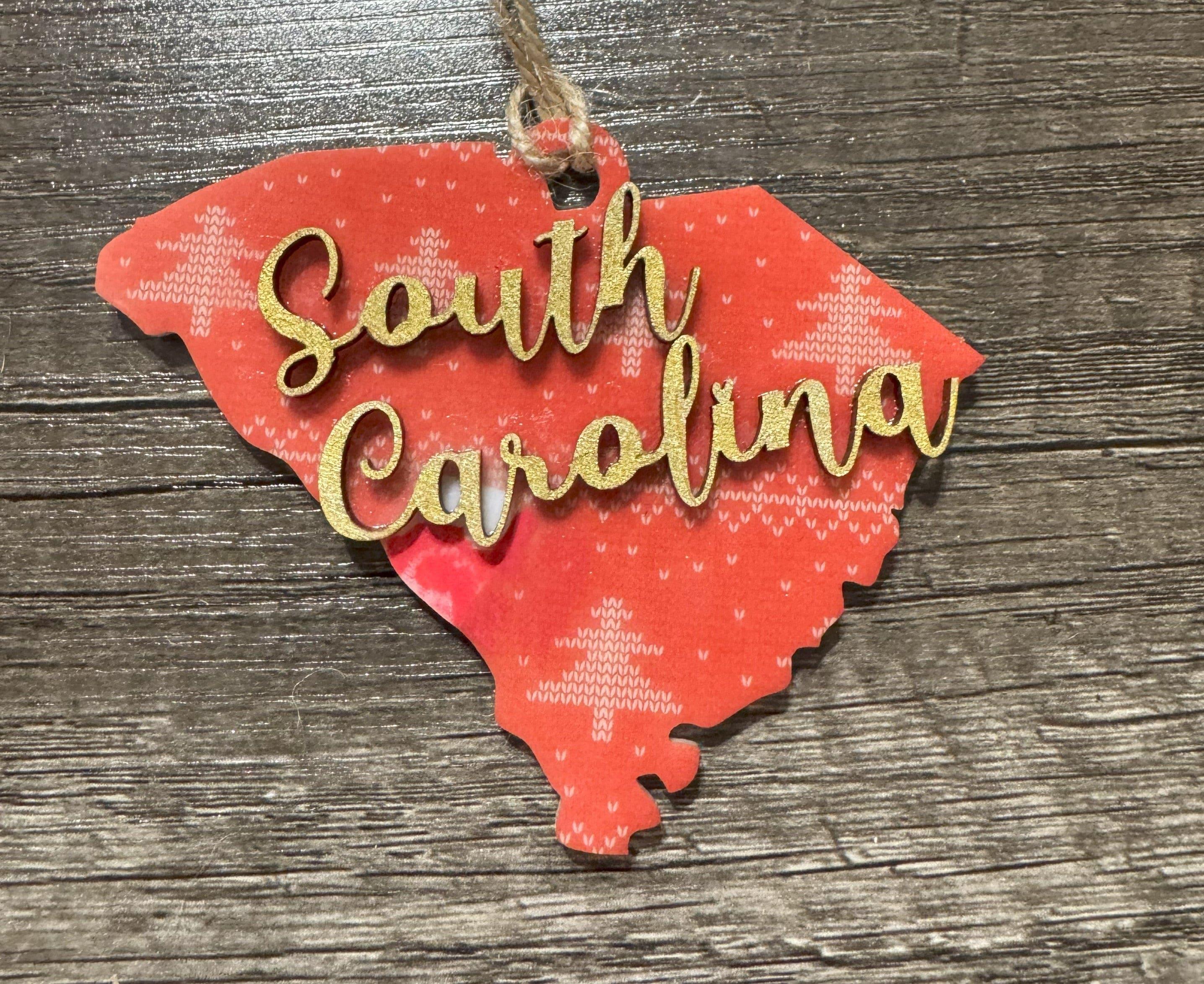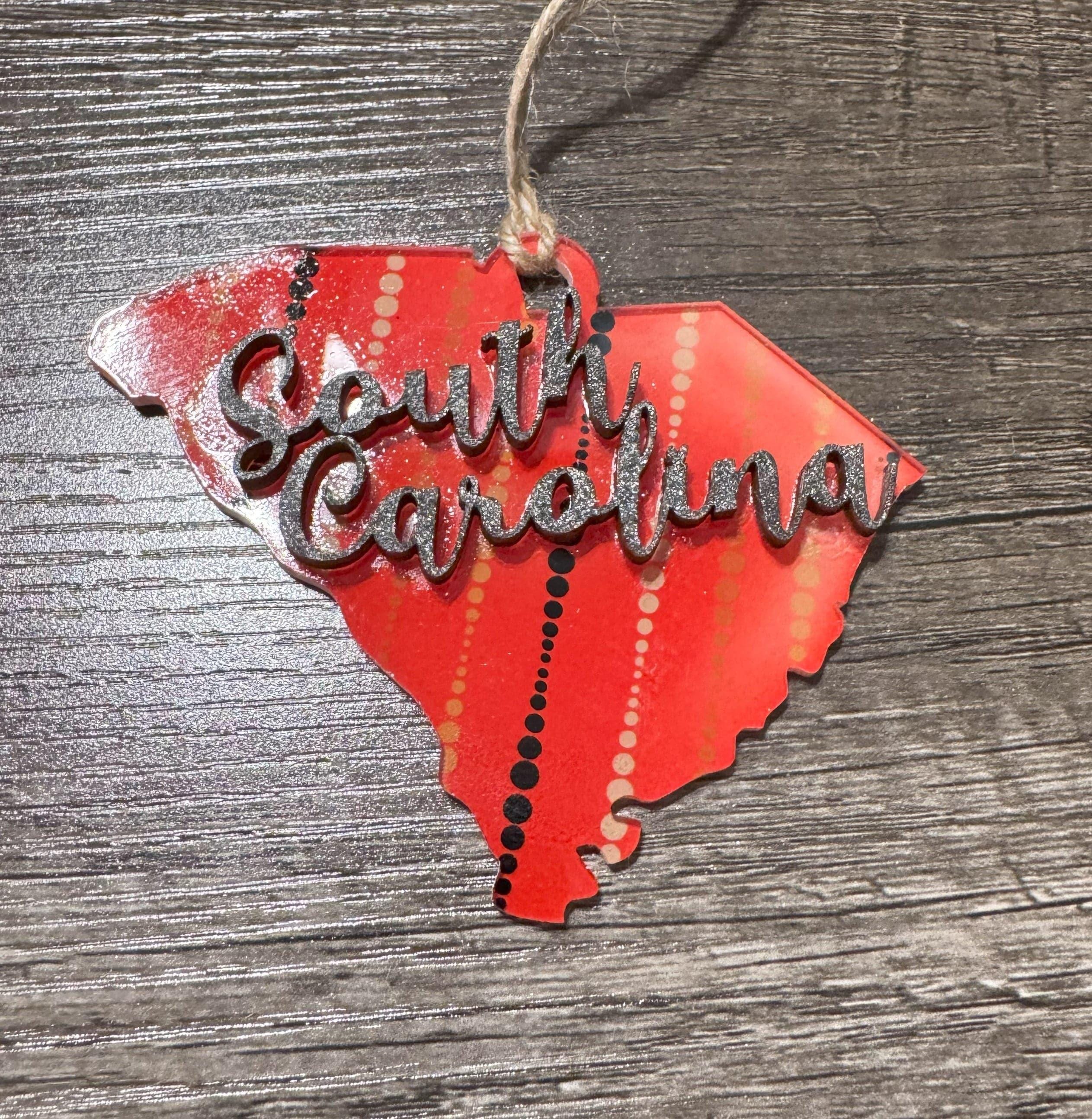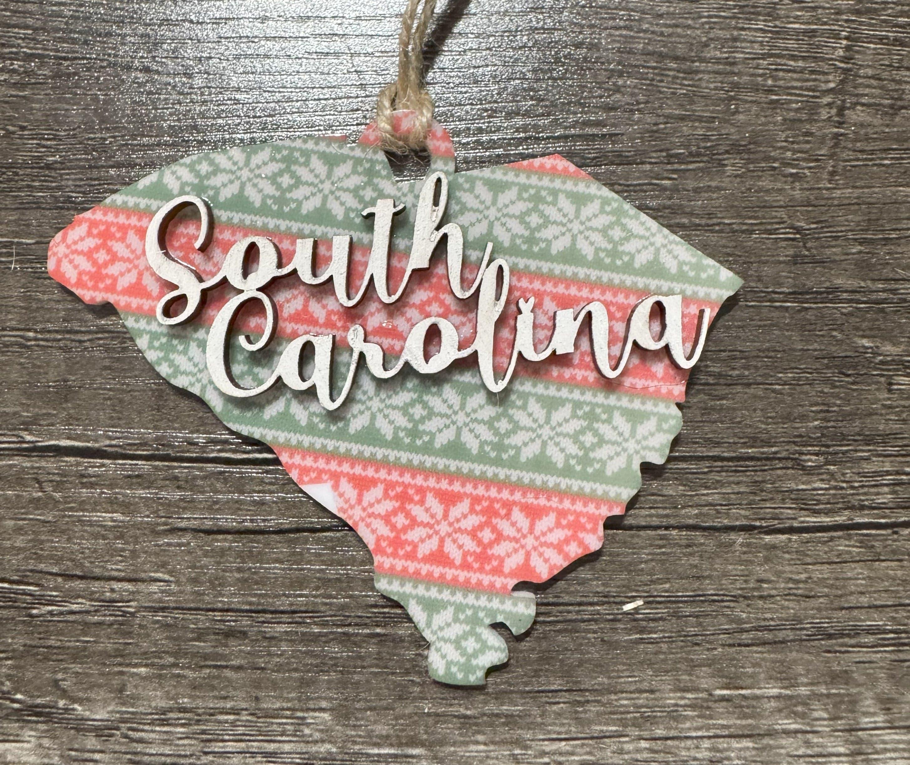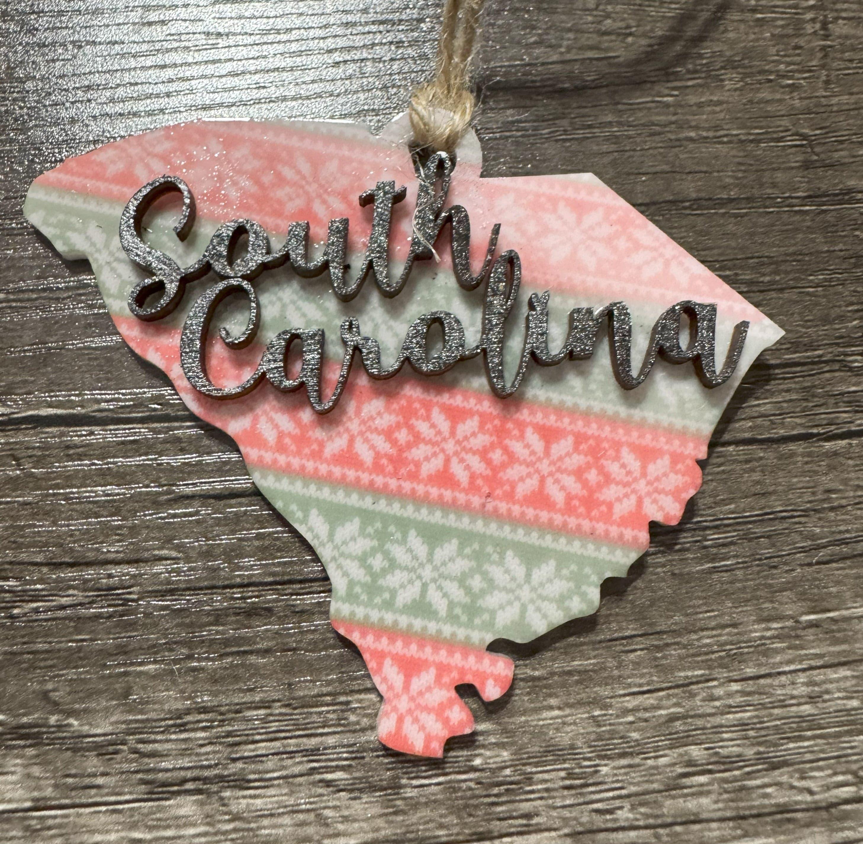 Celebrate your South Carolina pride with these charming ornaments that blend modern and rustic styles. Each piece features vibrant sublimated acrylic details paired with a natural wood accent shaped like the state itself, creating a meaningful keepsake for your tree. Perfect for locals, transplants, or anyone who loves the Palmetto State, these ornaments make thoughtful gifts that capture your connection to South Carolina's beauty and spirit.