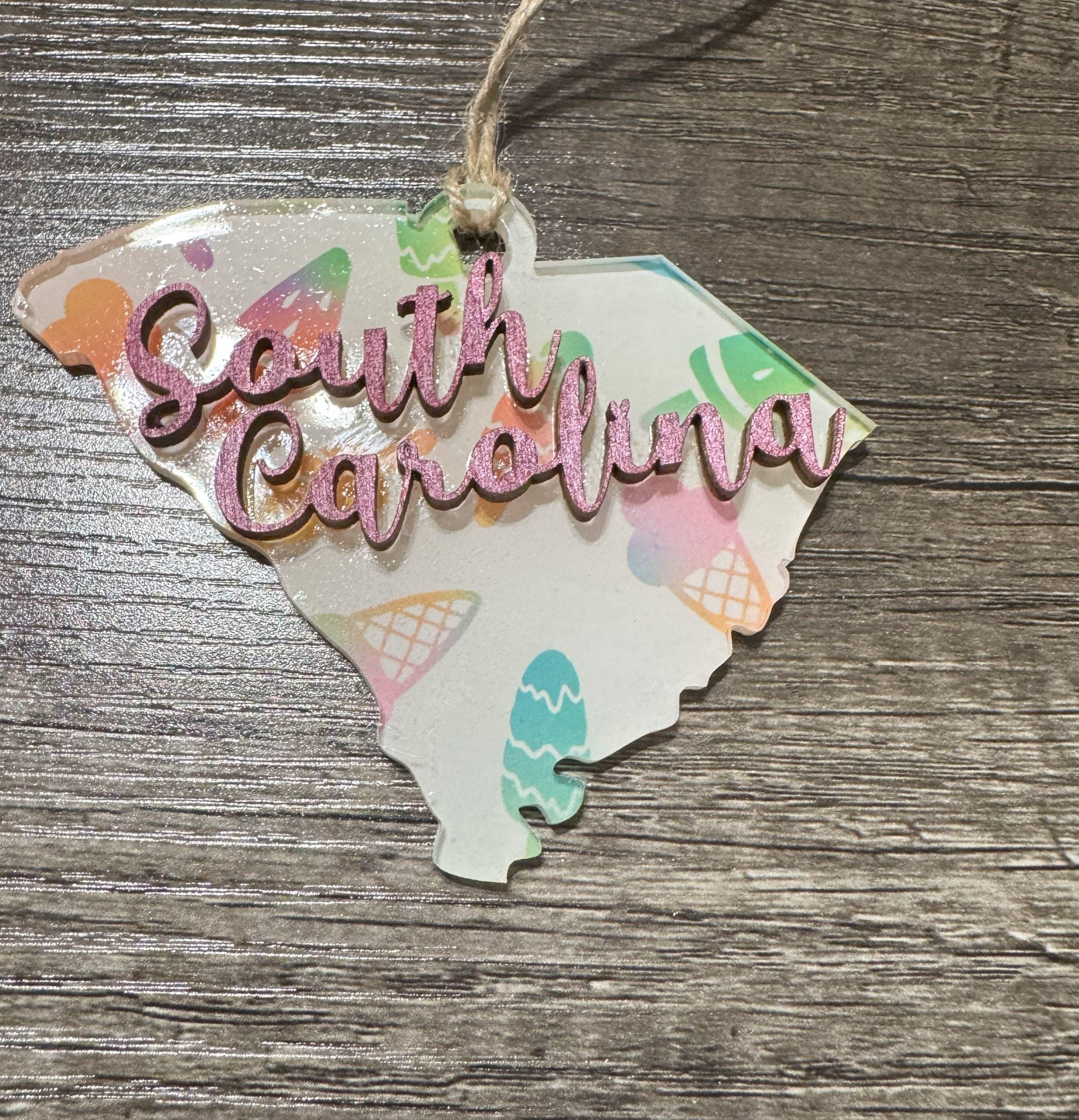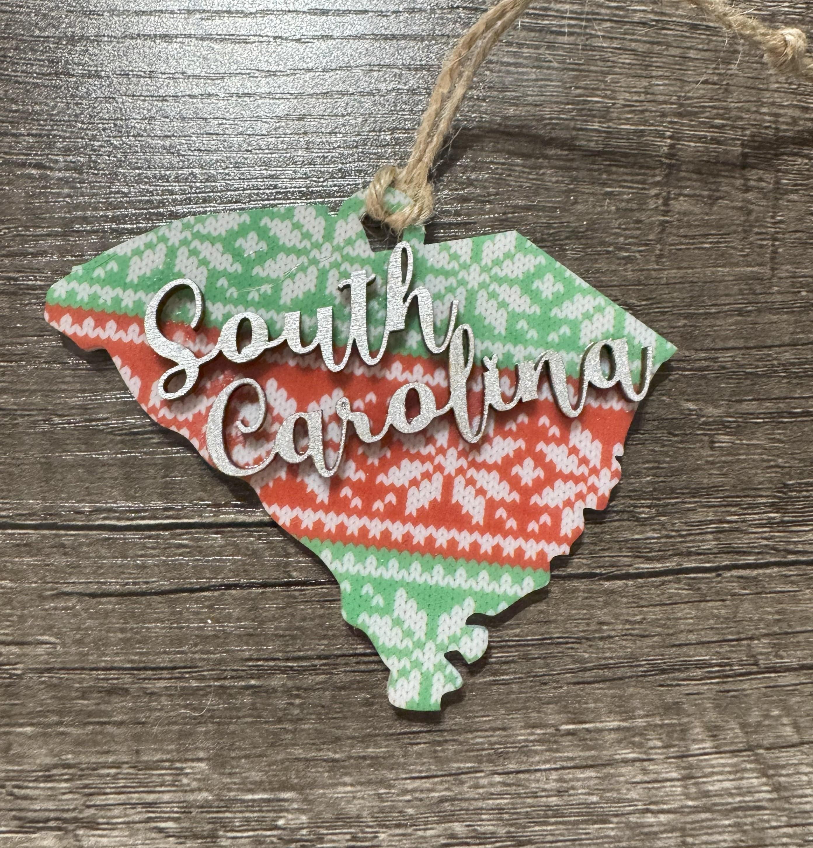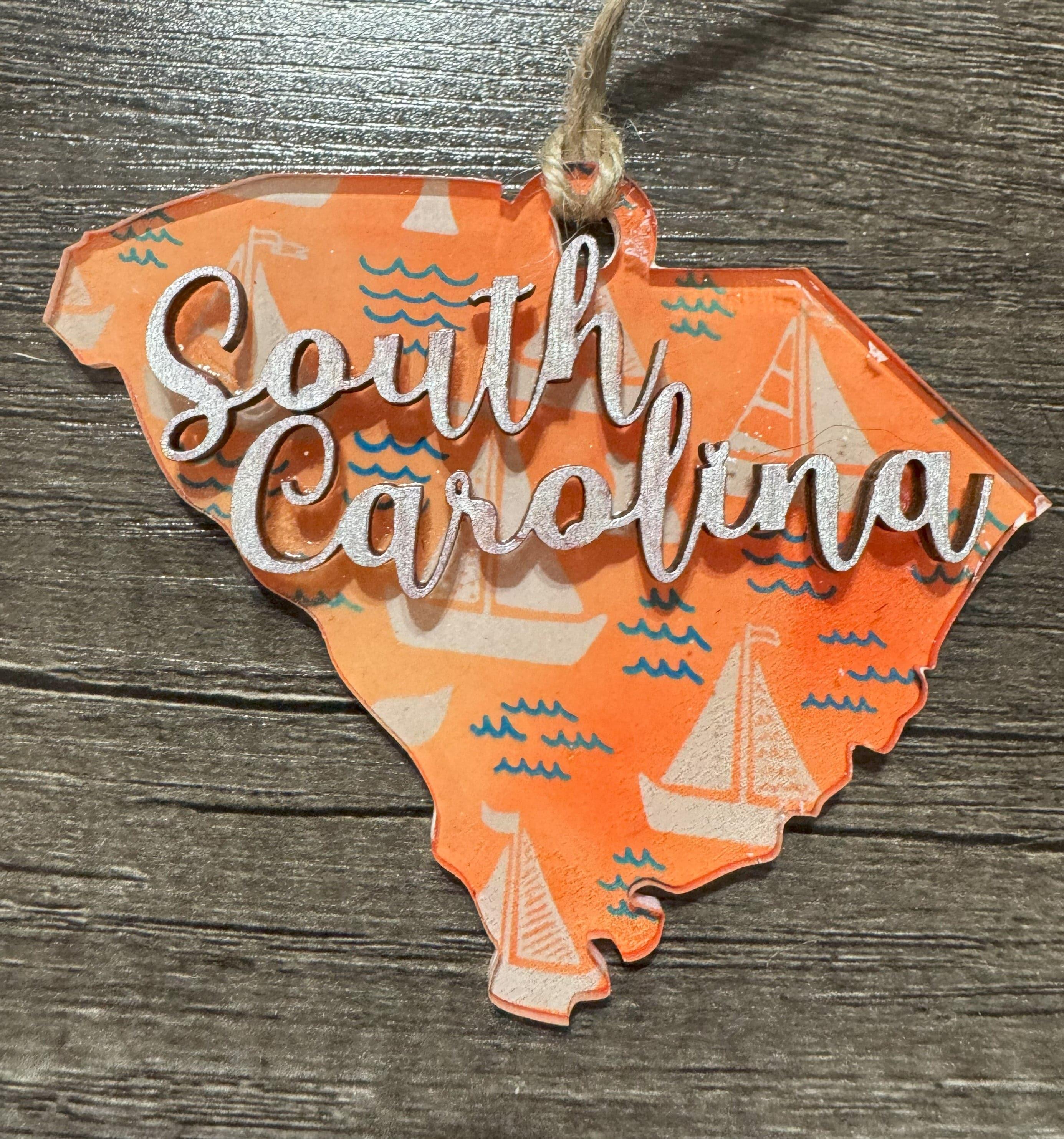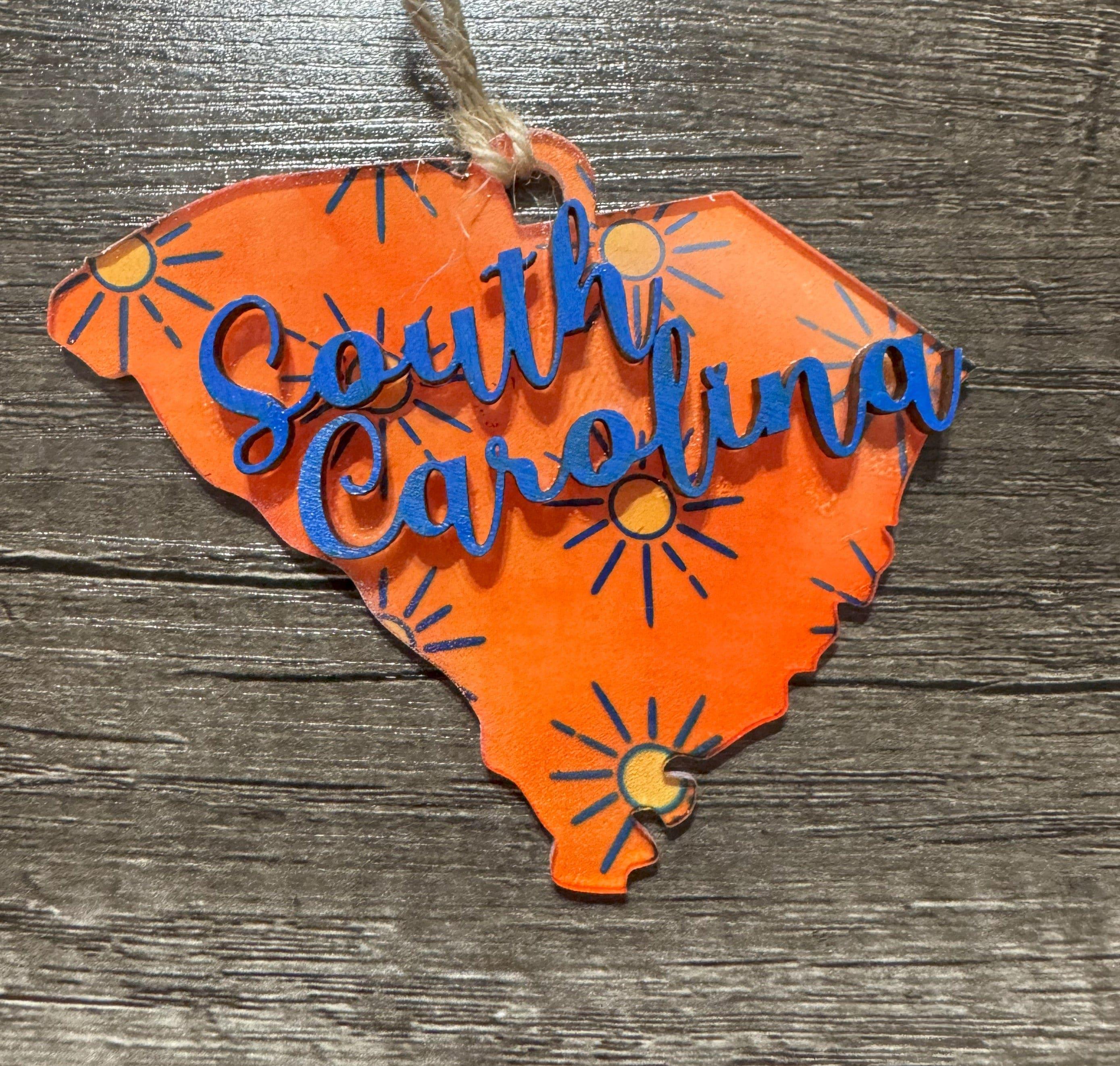 Celebrate your South Carolina pride with these charming ornaments that blend modern and rustic styles. Each piece features vibrant sublimated acrylic details paired with a natural wood accent shaped like the state itself, creating a meaningful keepsake for your tree. Perfect for locals, transplants, or anyone who loves the Palmetto State, these ornaments make thoughtful gifts that capture your connection to South Carolina's beauty and spirit.