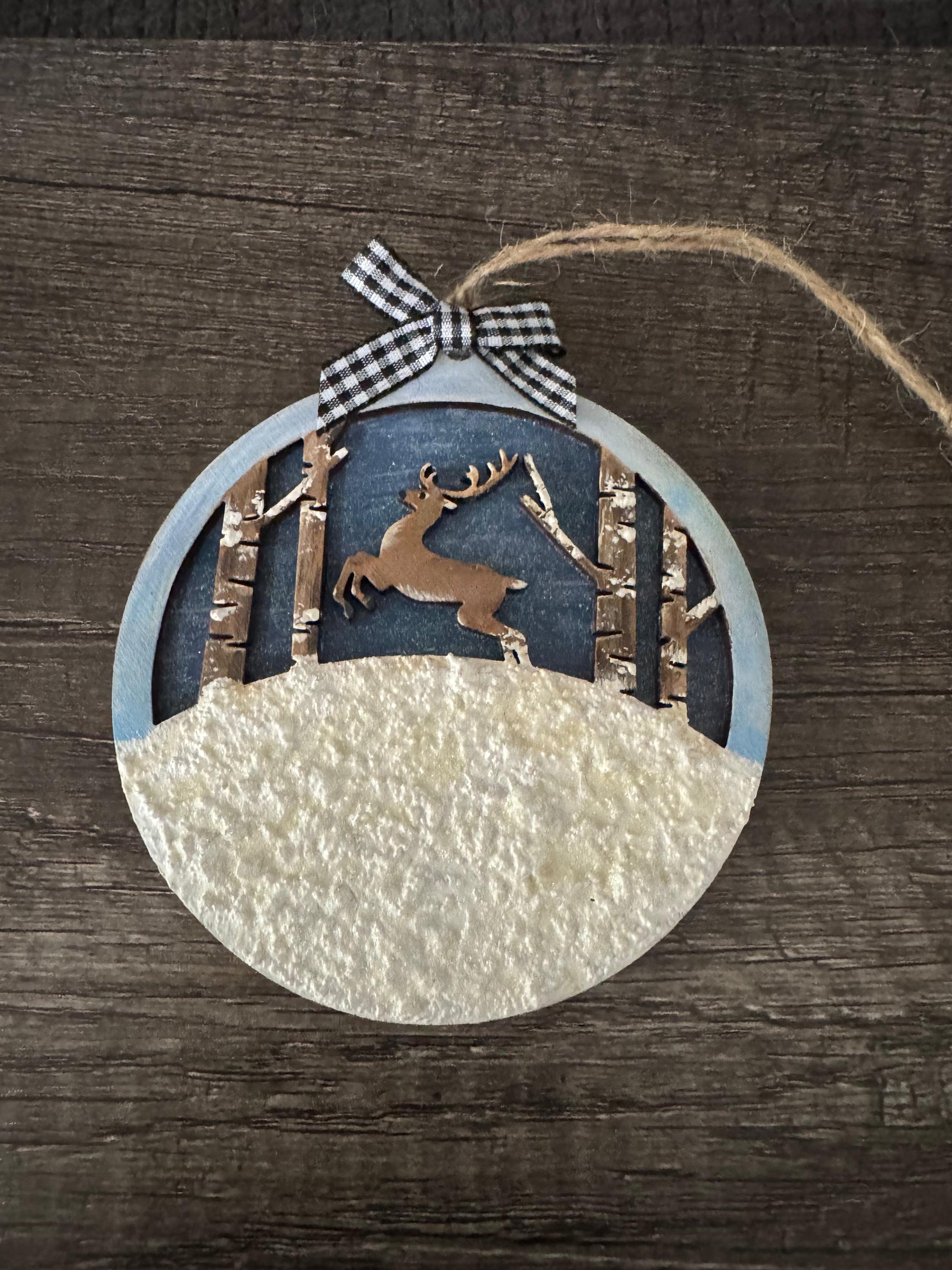Bring the beauty of nature into your home with this charming 4" Deer in the Forest Ornament. Perfect for holiday decorating or year-round display, this piece captures a serene woodland scene with delicate detail. The compact size makes it ideal for hanging on trees, wreaths, or displaying on shelves. Whether you're a nature lover or looking for a thoughtful gift, this ornament adds warmth and character to any space. A wonderful way to celebrate the outdoors from the comfort of your home.