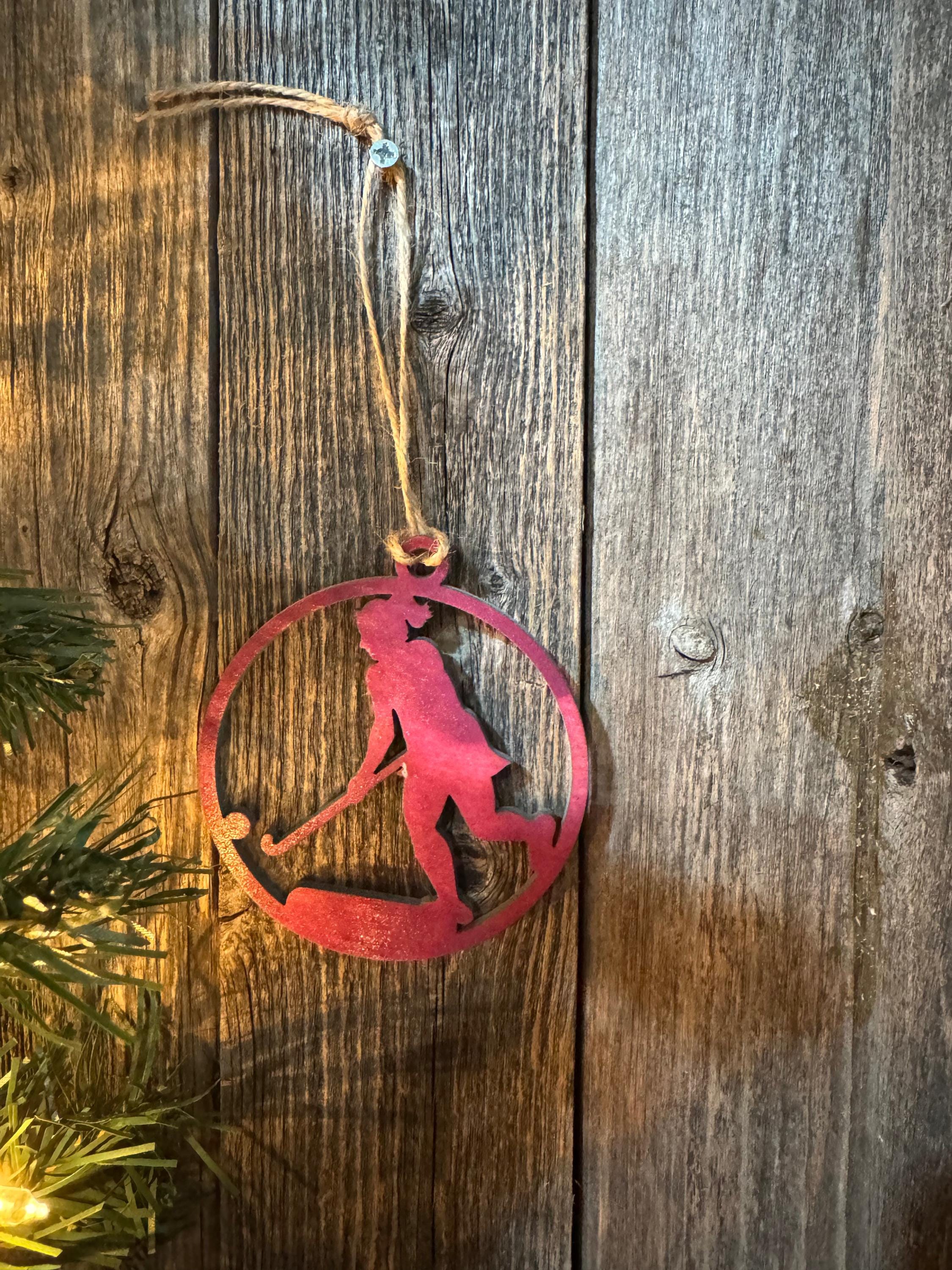 Celebrate your passion for field hockey with these striking silhouette ornaments. Perfect for decorating your tree or displaying year-round, each ornament captures the dynamic energy of the sport. Choose from custom designs tailored to your team's colors and preferences, or select from our ready-made in-stock options for immediate delivery. Whether you're a player, coach, or devoted fan, these ornaments make meaningful gifts that honor your love of the game. Add a touch of athletic spirit to your holiday décor.