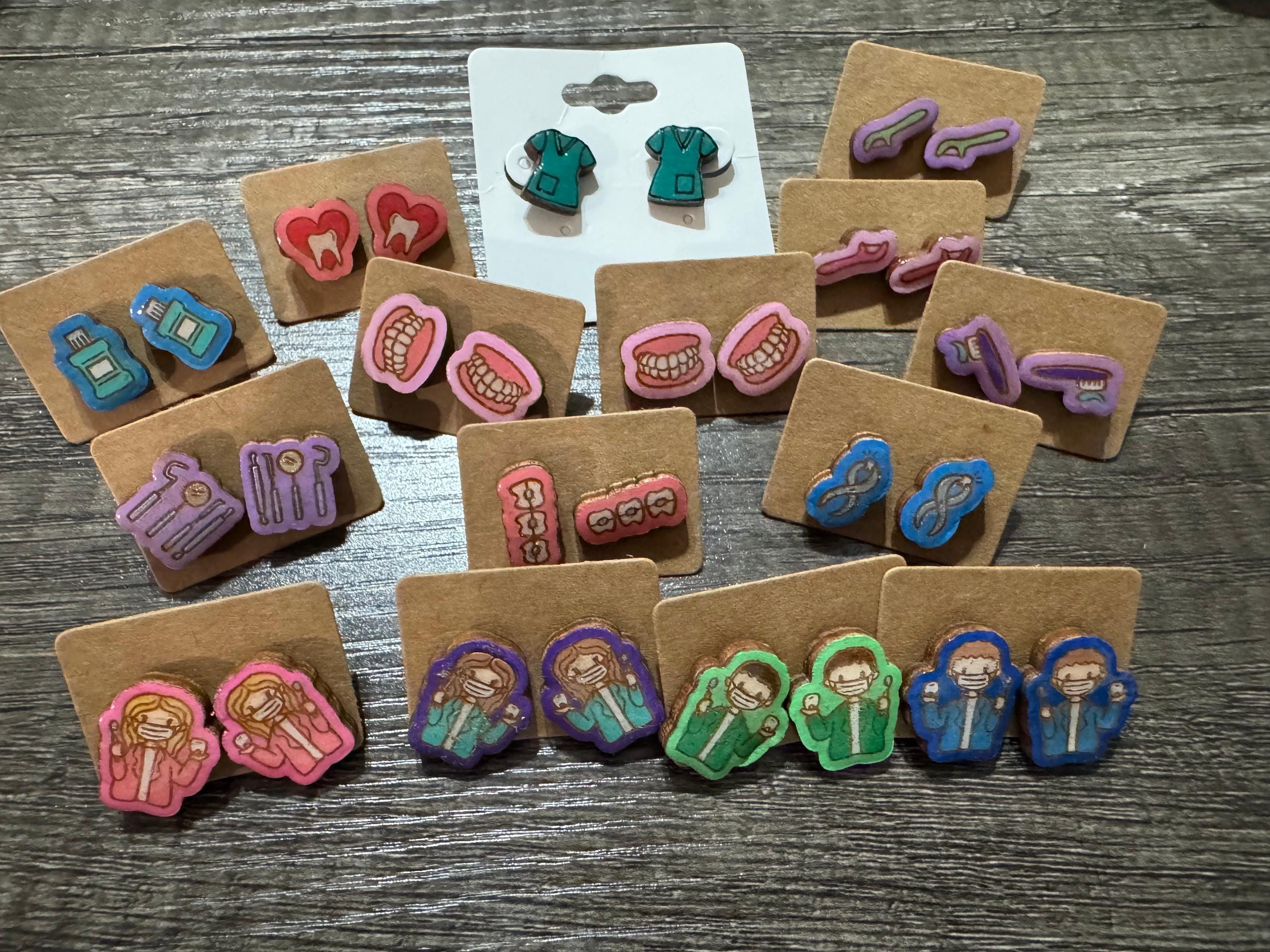 Show off your dental pride with these fun stud earrings designed for dentists and dental professionals. Featuring dentist-themed details, these earrings celebrate your dedication to oral health and your unique career. Whether you're heading to the office or out for the evening, they're a playful way to express your professional passion. Lightweight and comfortable for extended wear, these studs make a great gift for dental students, hygienists, or anyone in the dental field who loves wearing their profession with style.