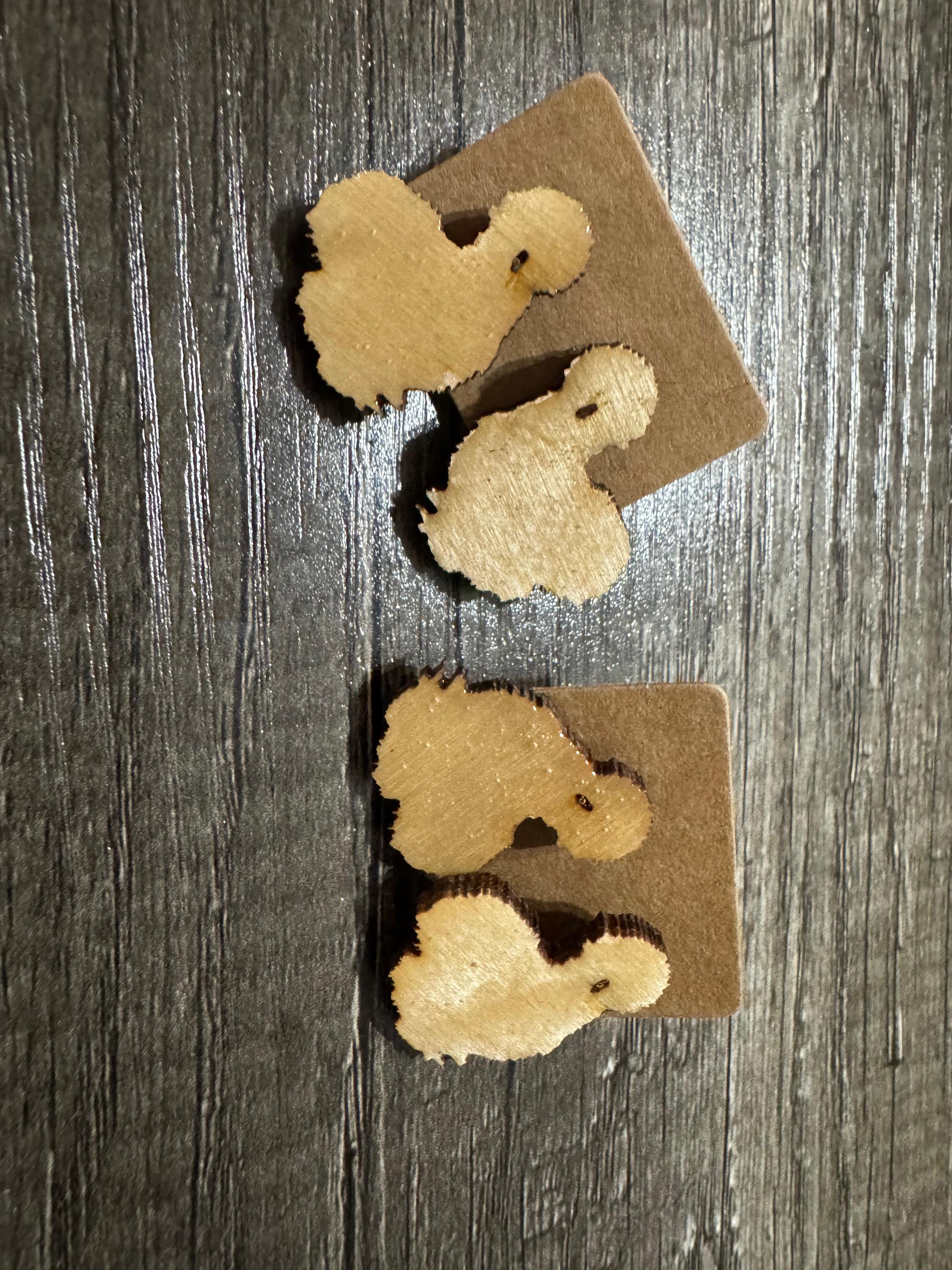 Celebrate your love for silkies with these charming wooden stud earrings. Crafted from natural wood, each pair features an adorable silkie chicken design that brings warmth and personality to any outfit. Perfect for poultry enthusiasts, farmers, or anyone who appreciates quirky, nature-inspired jewelry. Lightweight and comfortable for all-day wear, these earrings are a delightful way to show your passion for these beloved feathered friends.