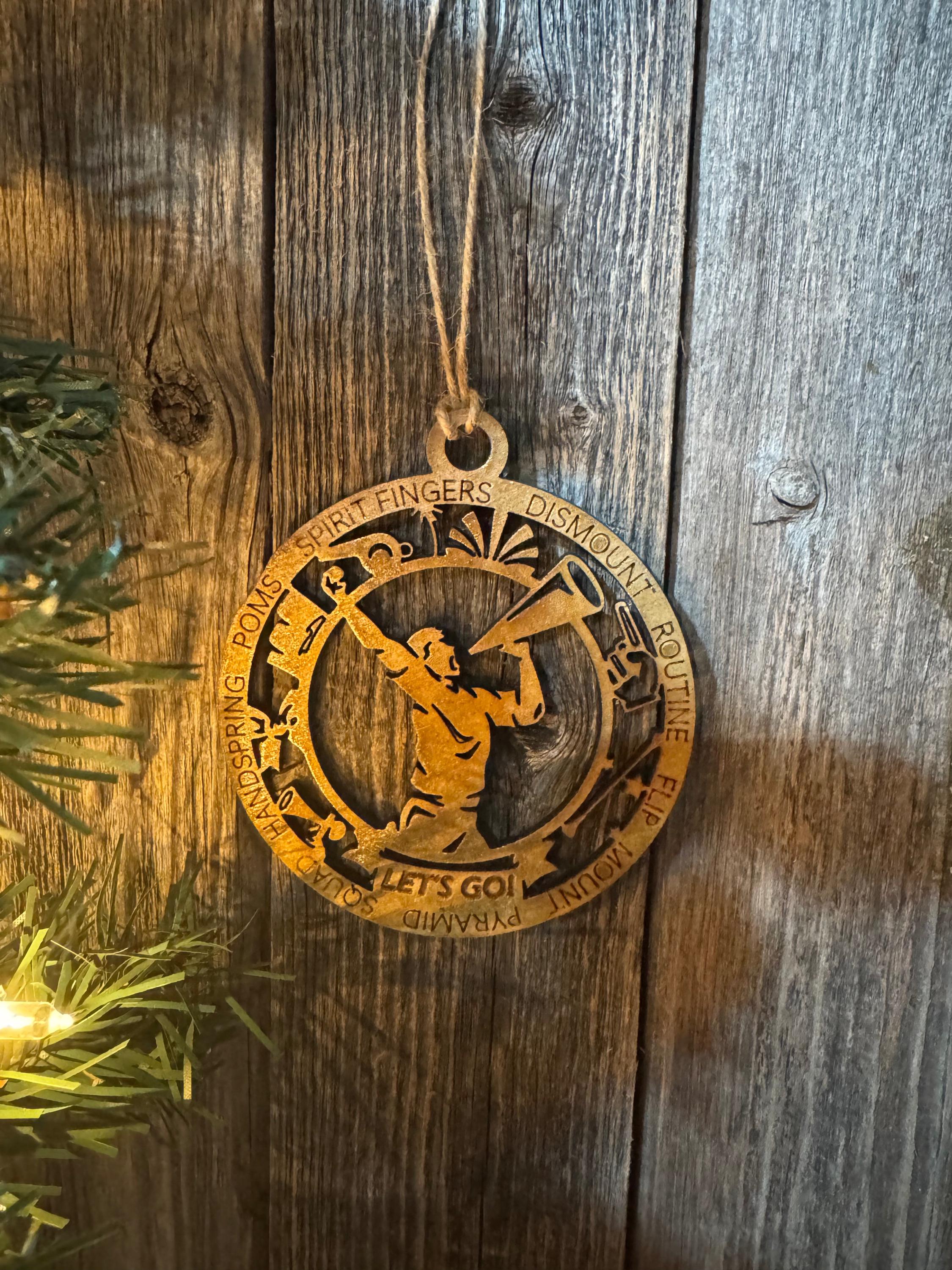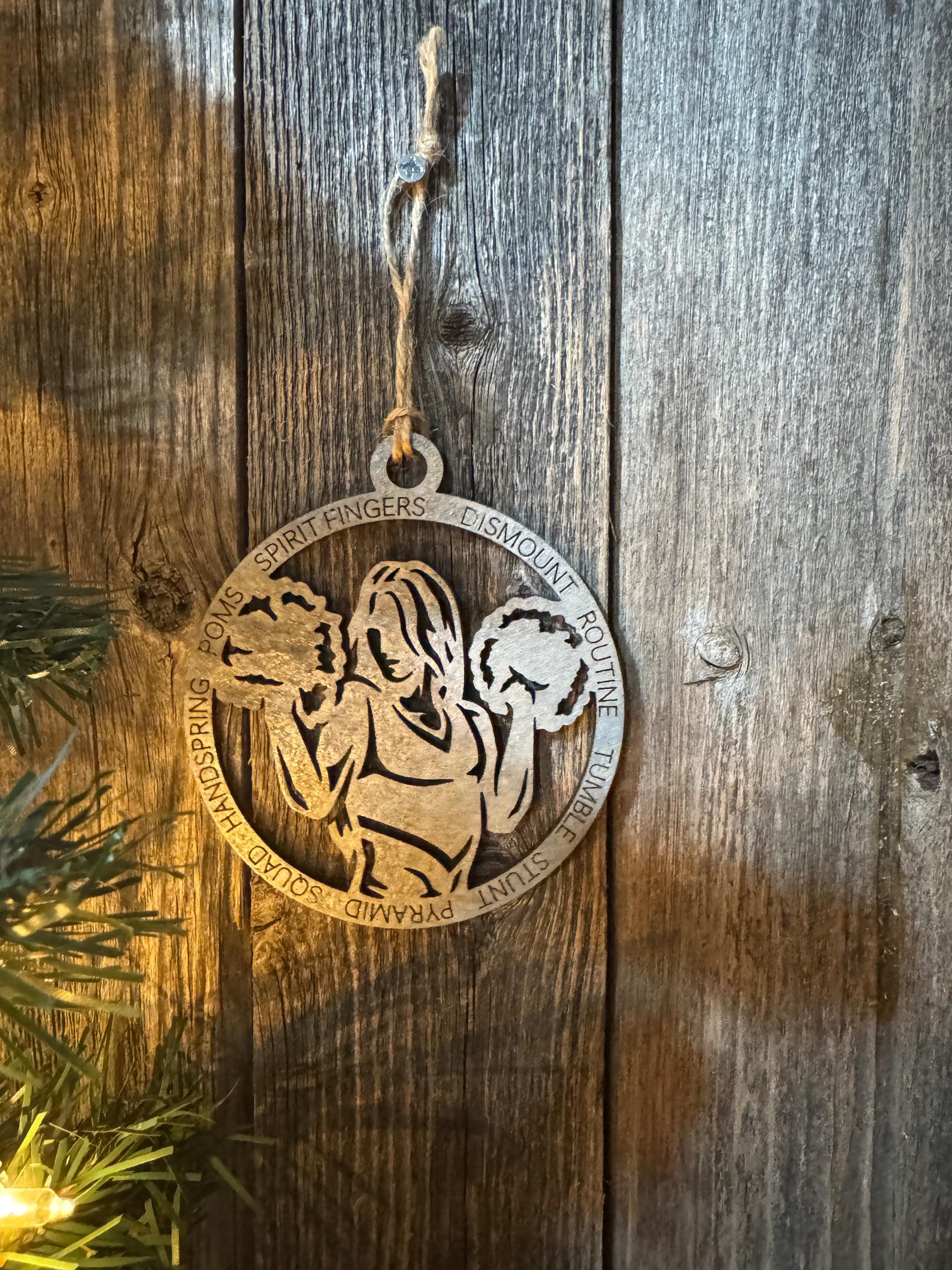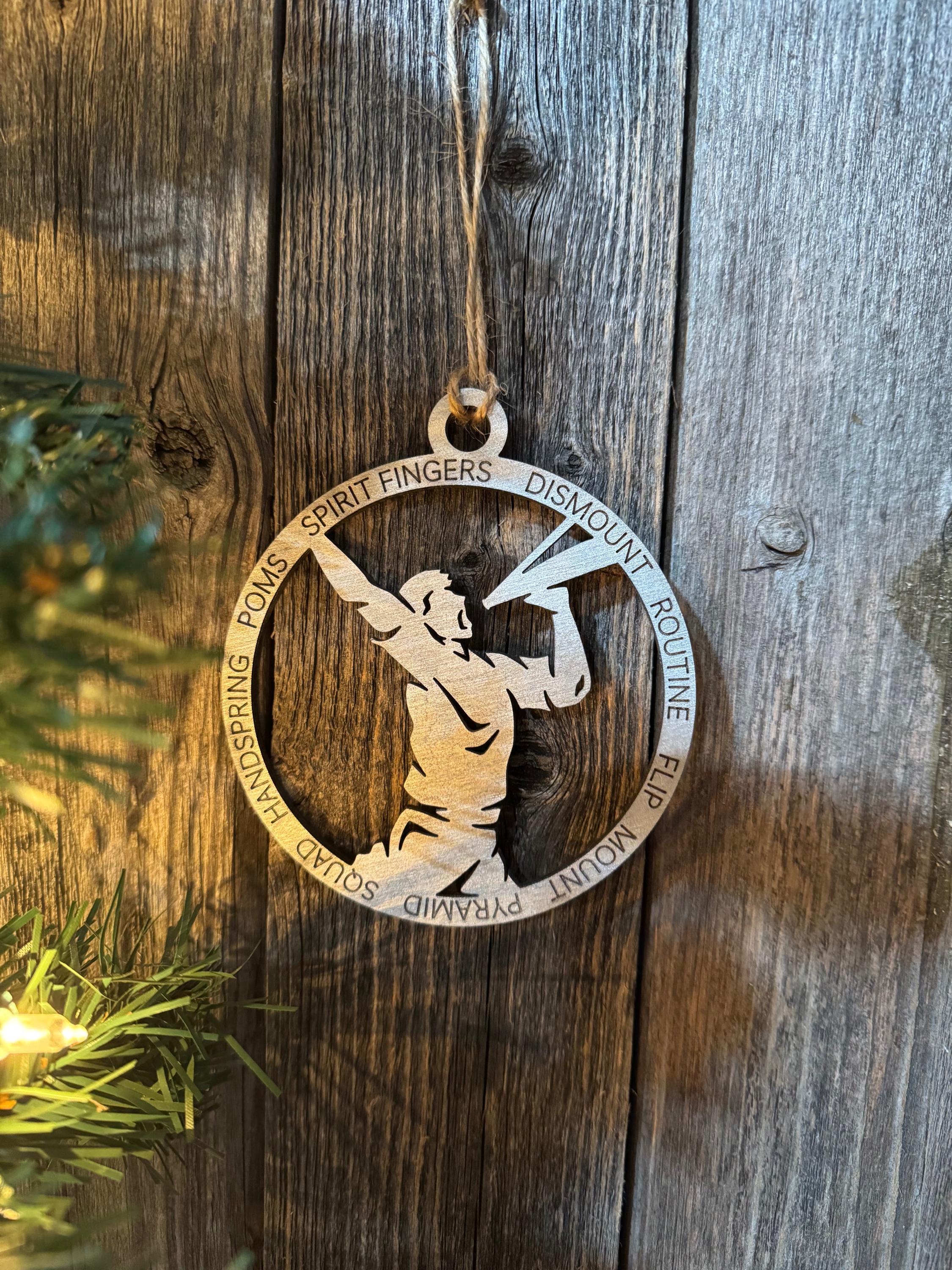 Celebrate your cheerleader's spirit with this custom ornament designed to honor their dedication and passion. Whether you're recognizing a season of hard work, cheering them on through competitions, or simply showing pride in their achievements, this ornament captures the energy and enthusiasm that defines the sport. Available in custom options to personalize with names, numbers, or team colors, or choose from our ready-made in-stock designs. A meaningful keepsake that belongs on the tree year after year, reminding them of the strength and teamwork they bring to every cheer.