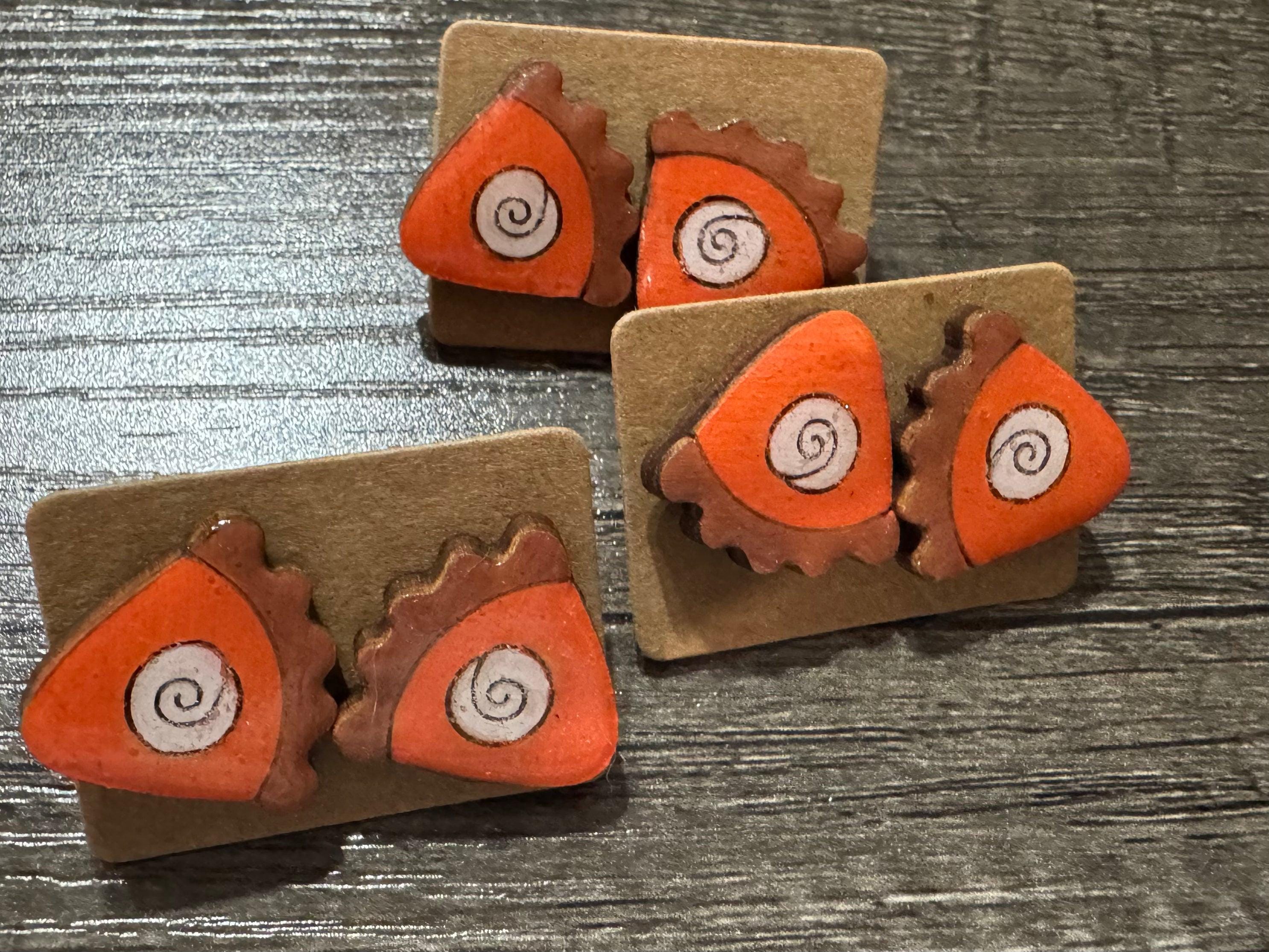 For custom orders, please provide all details (colors, earring findings, etc.) at checkout. Plastic findings and clip-ons are available.