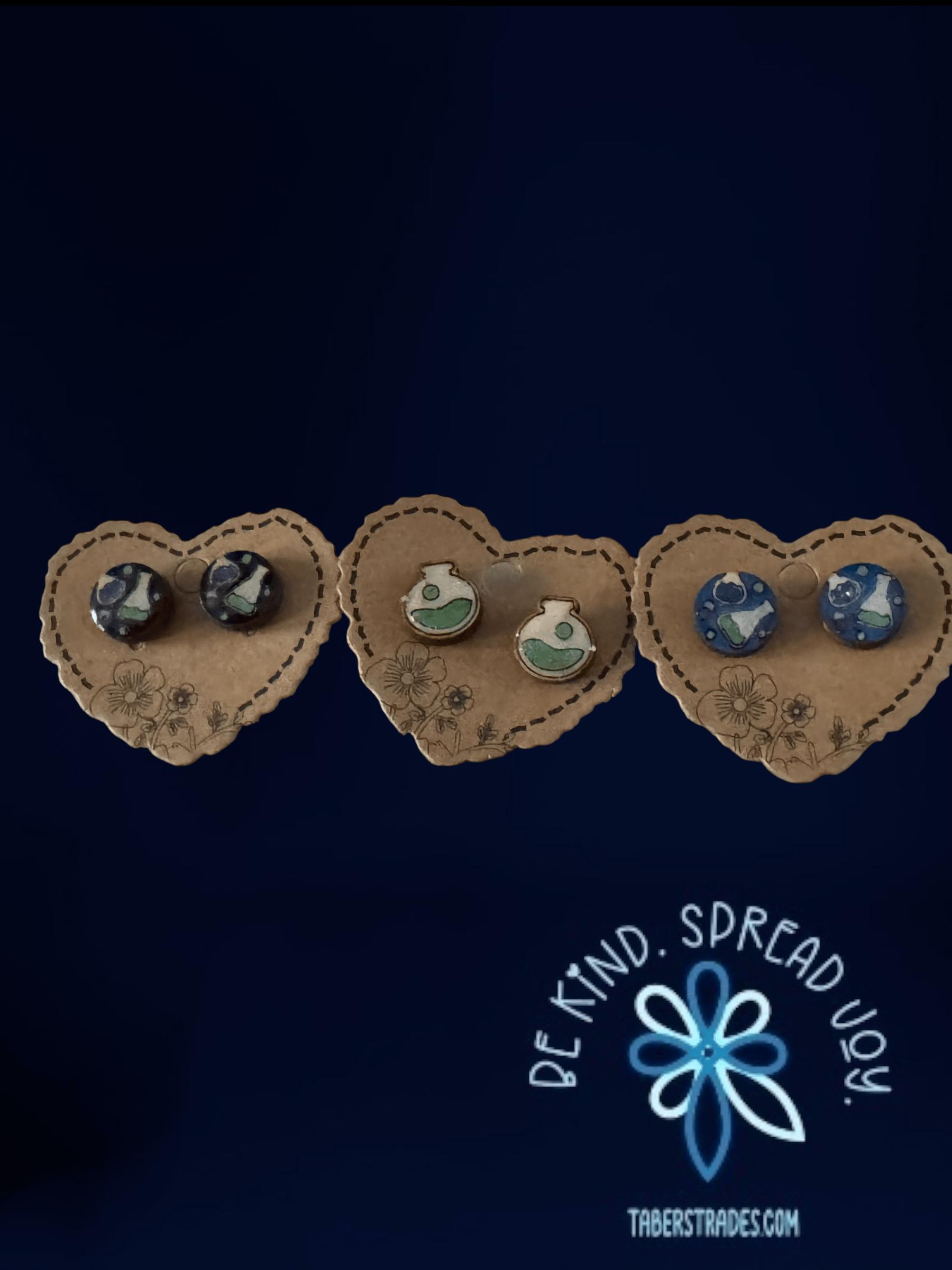 These Halloween Magic Potion stud earrings add a playful and mystical touch to your look. Perfect for embracing the spooky season, they feature charming potion bottle designs that complement any festive outfit. Lightweight and comfortable for all-day wear, these earrings also offer customization options to match your unique style. Celebrate Halloween with a subtle enchantment that’s easy to wear and share.