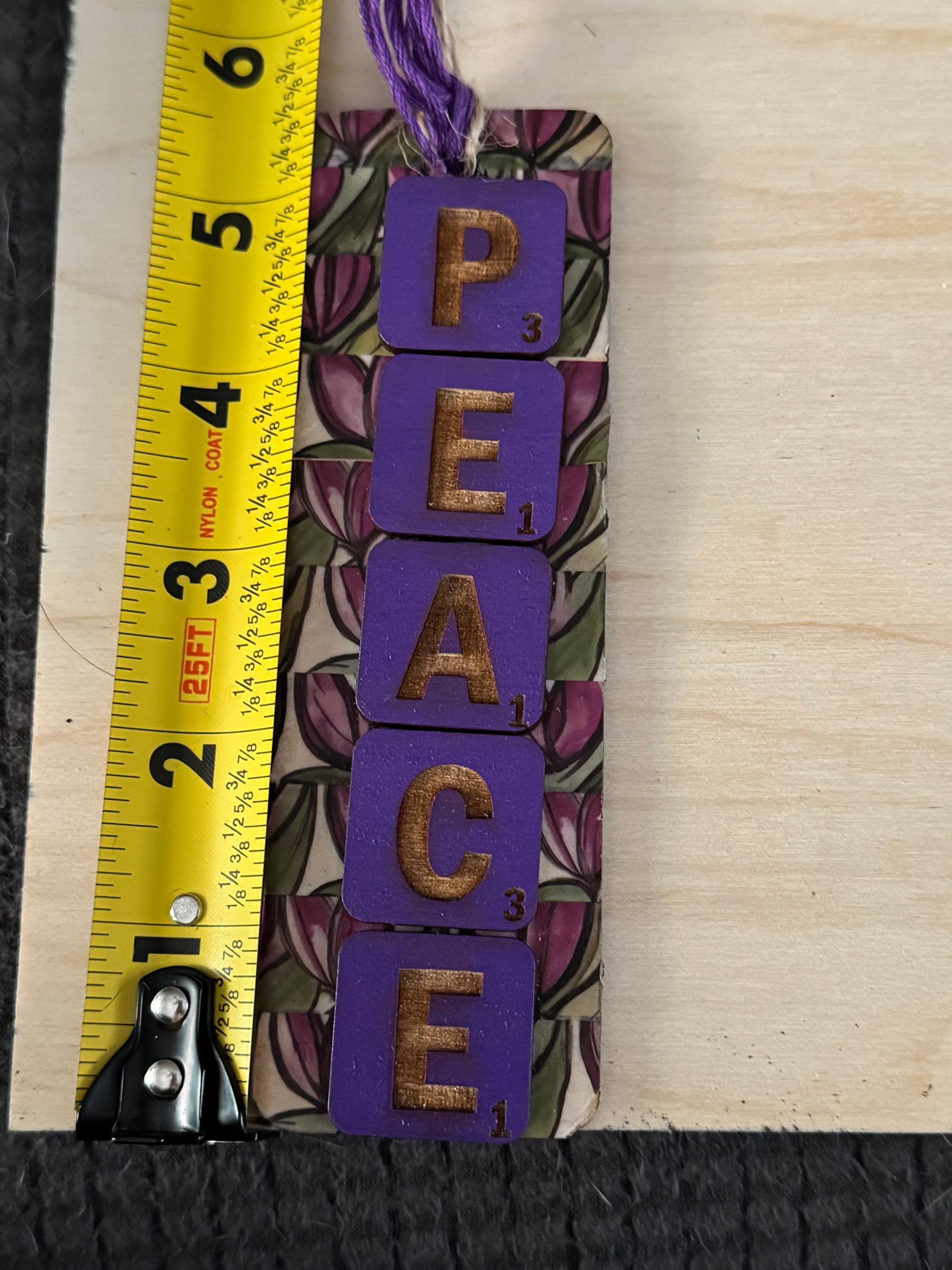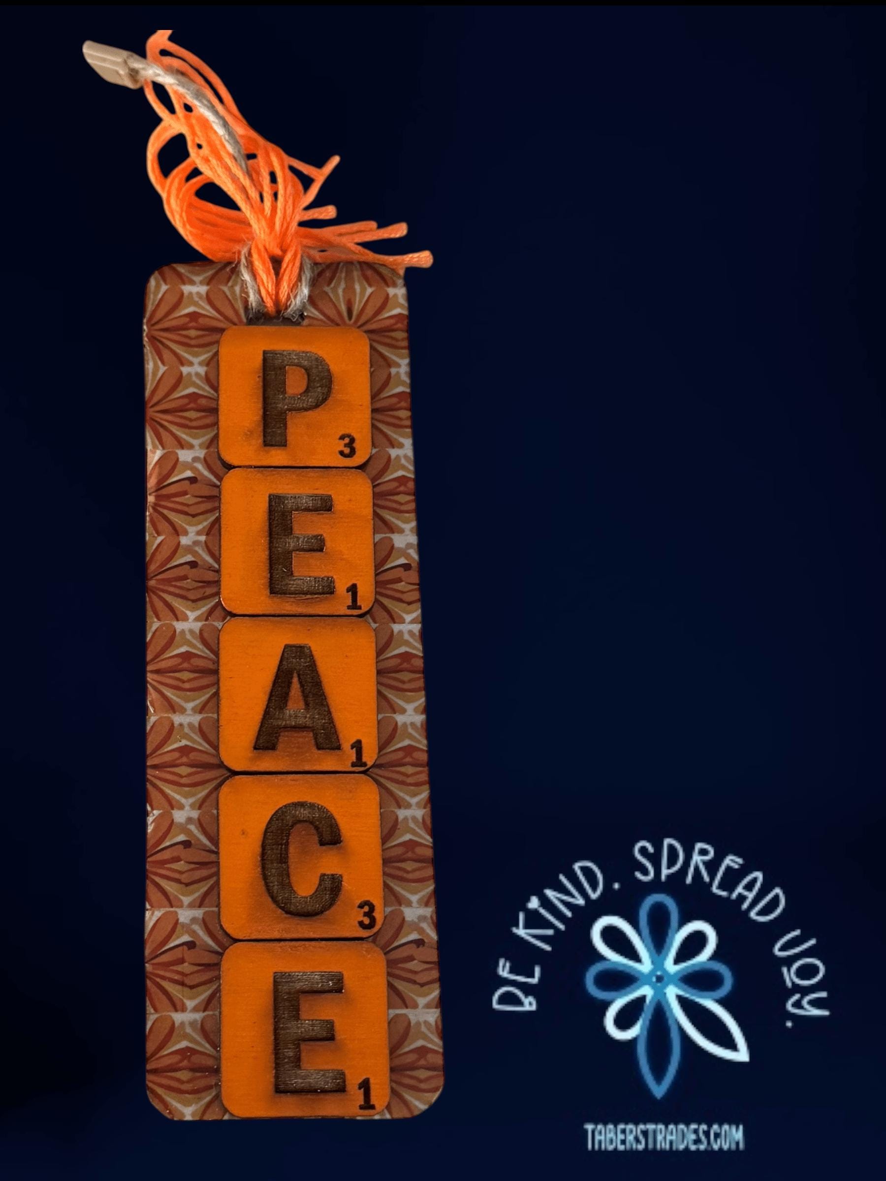 Add a heartfelt touch to your holiday decor with this Peace * Bookmark Style Ornament. It features the word "Peace" in a stylish, playful design that brings a warm, calming message to any space. Lightweight and easy to hang, it’s perfect for spreading goodwill and creating a peaceful atmosphere in your home or office.