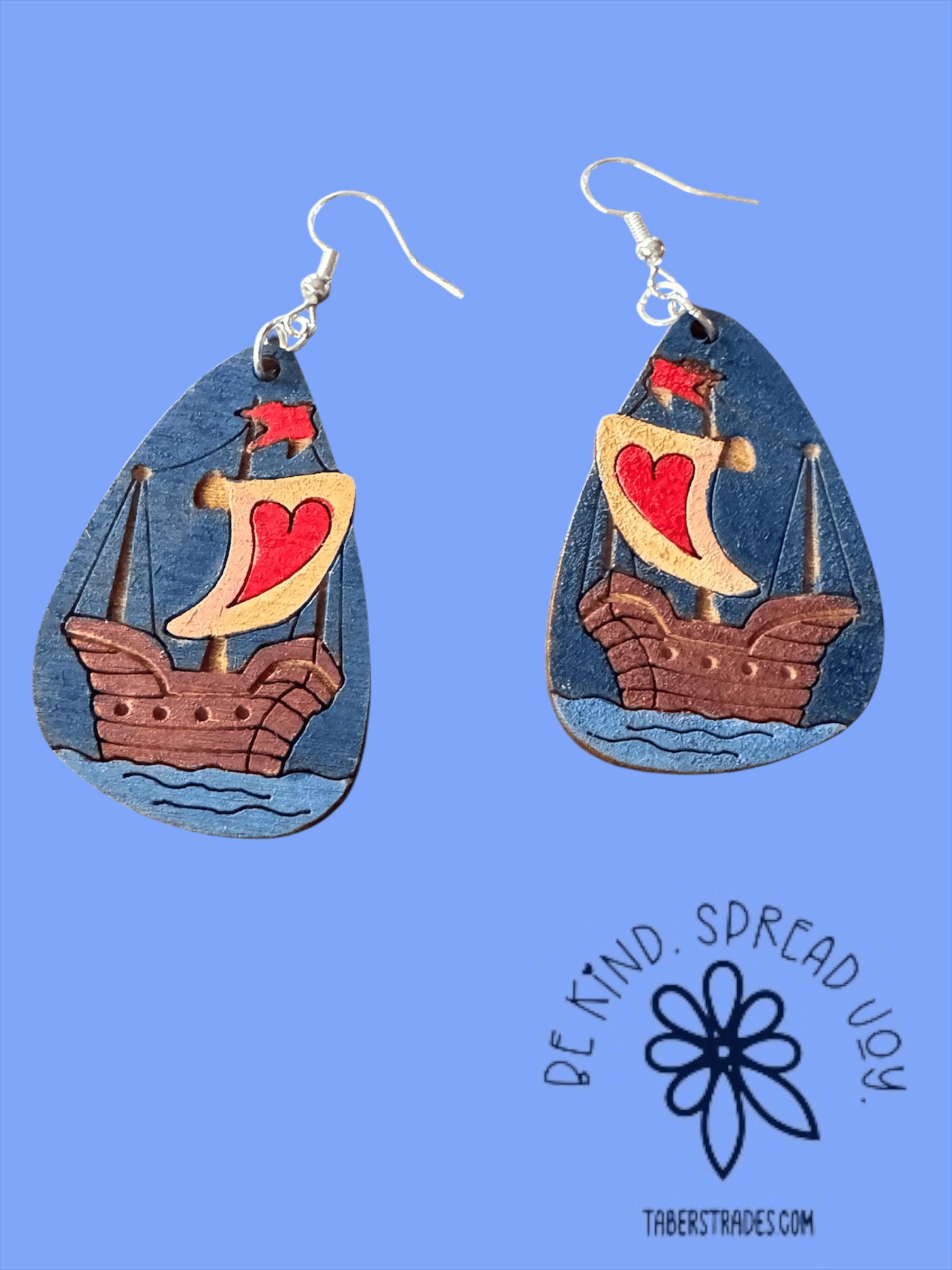 Set sail with these unique pirate ship earrings that add adventurous flair to your outfit. Crafted with care, they make a bold statement while remaining lightweight and comfortable for daily wear. Customize or personalize them to reflect your own style or to create a meaningful gift for someone special. Embrace your inner explorer with this distinctive accessory designed to inspire confidence and a sense of adventure.