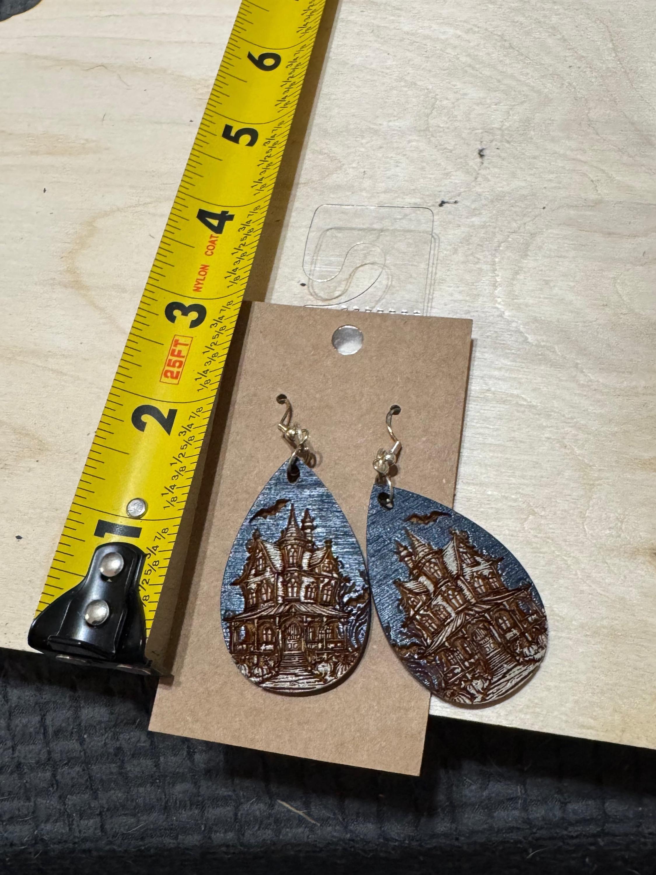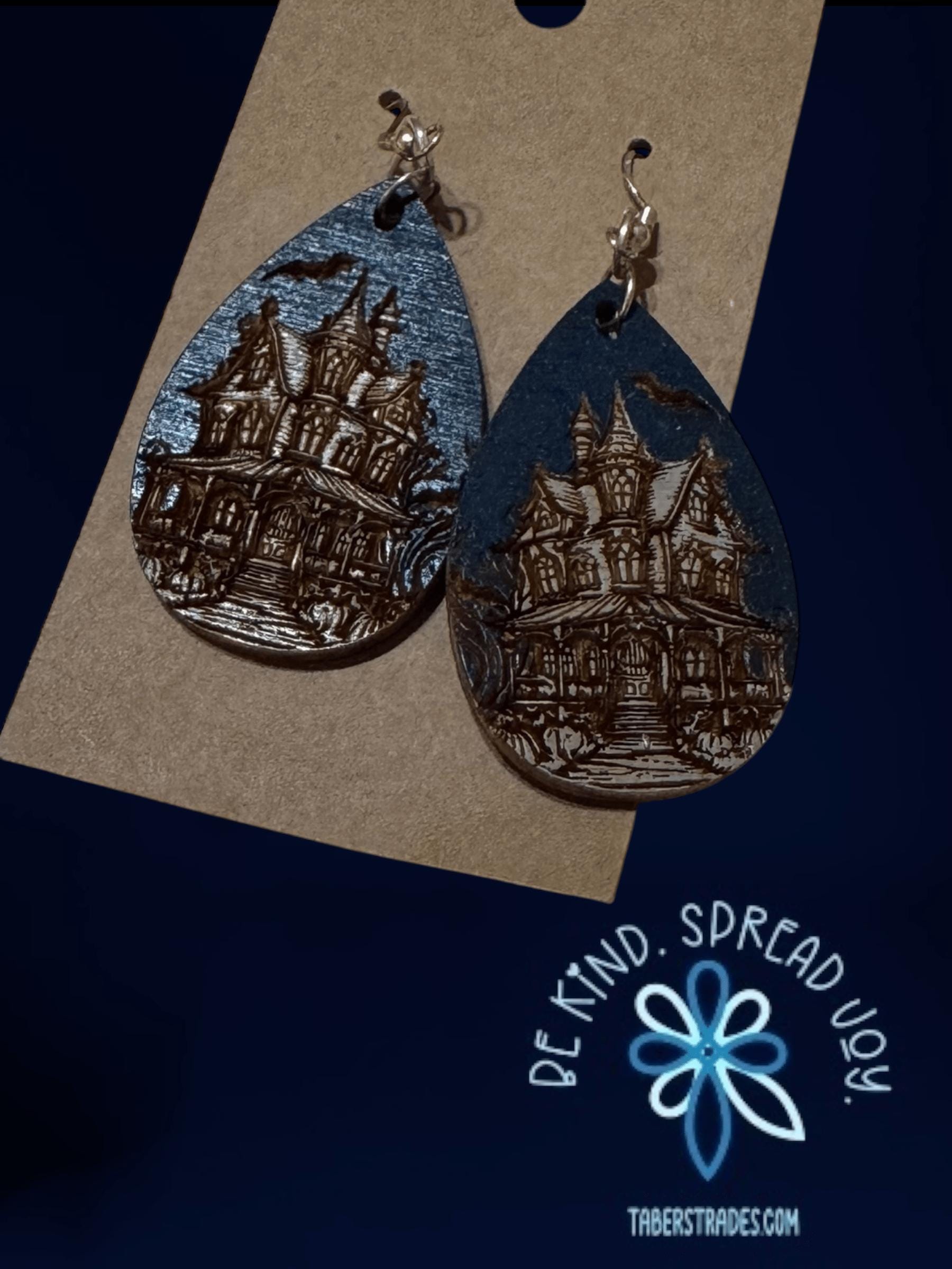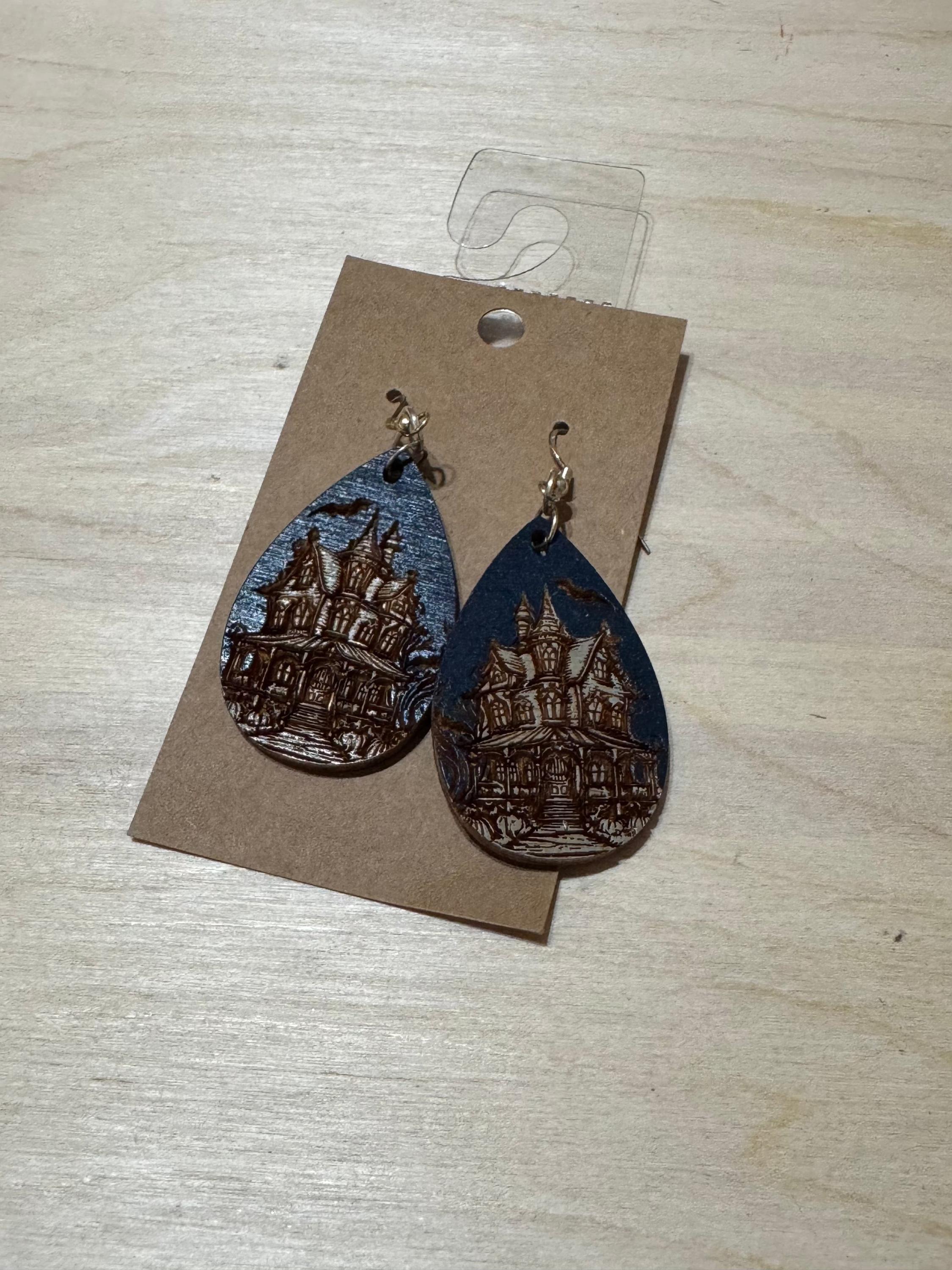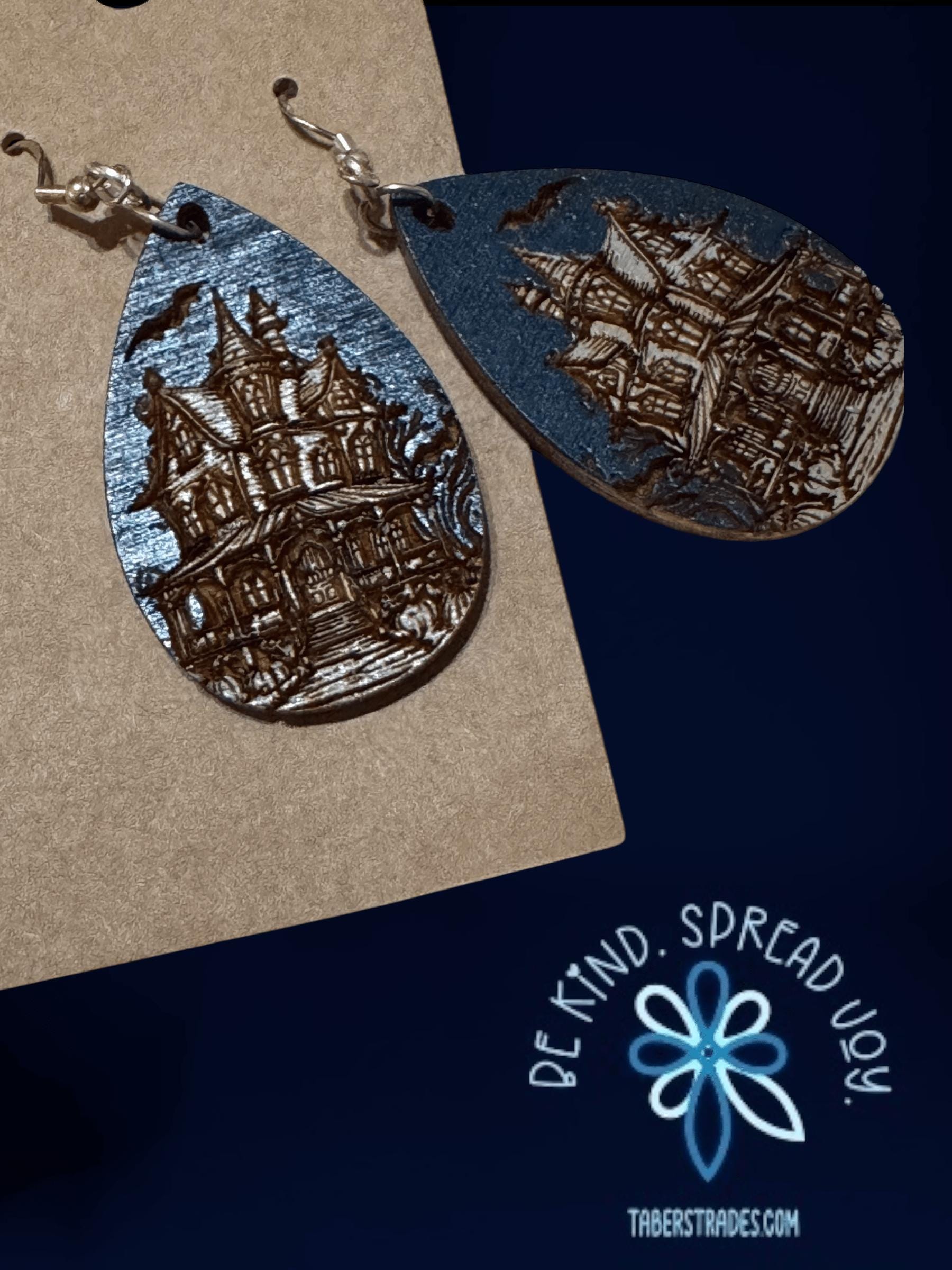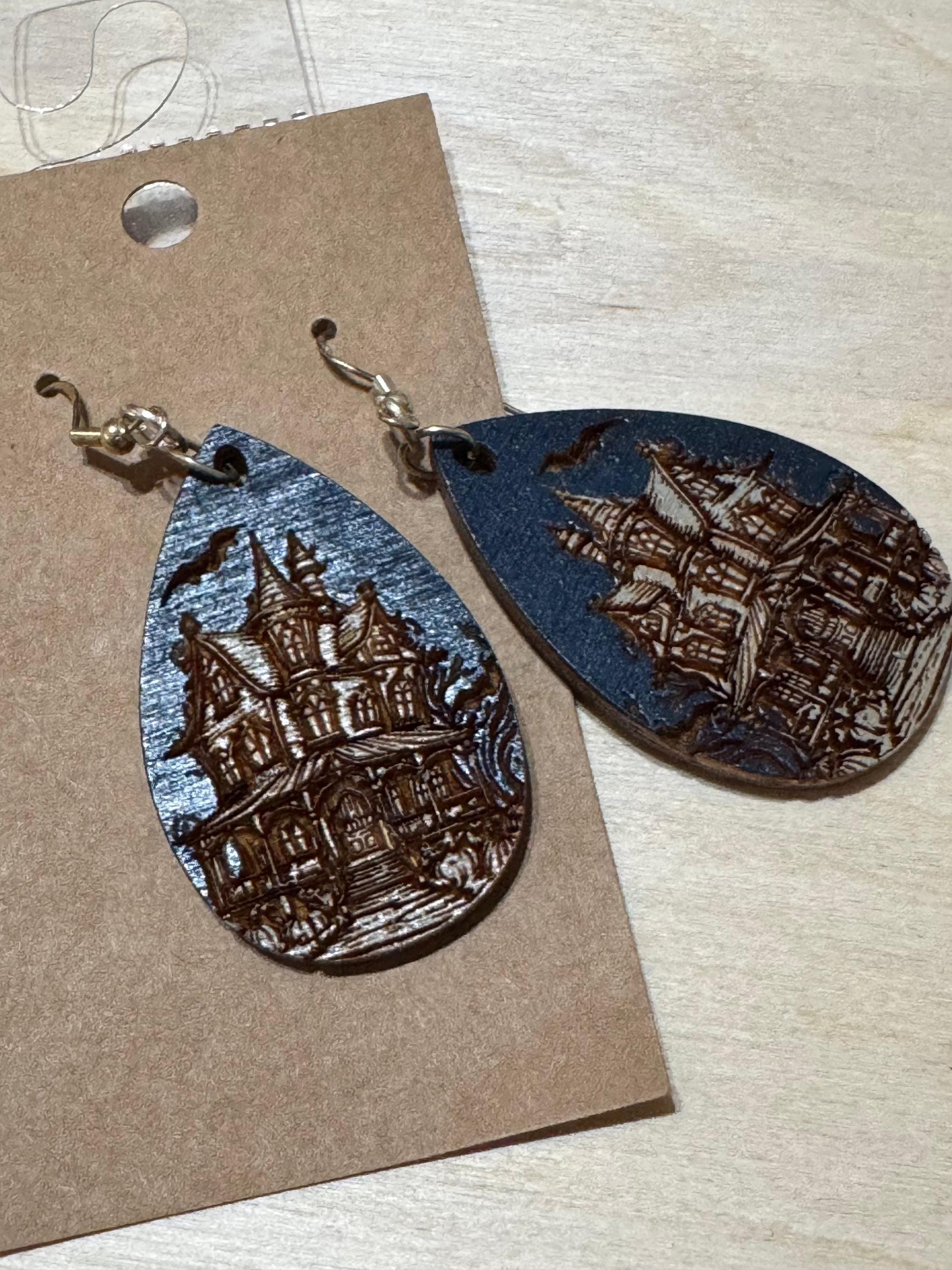 These Engraved Haunted House Earrings add a unique touch to any outfit with their detailed spooky design. Crafted to showcase an intricate haunted house engraving, they are perfect for those who love Halloween or gothic-inspired accessories. Lightweight and comfortable, these earrings bring a subtle statement that can be worn year-round, offering both style and a hint of eerie charm.