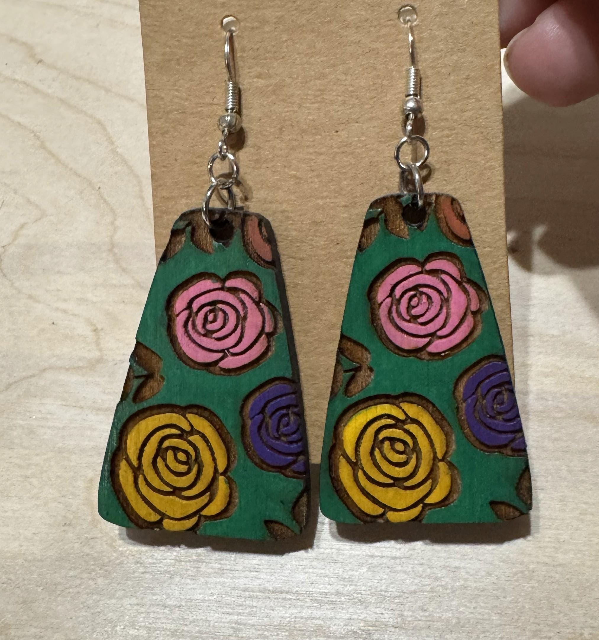 These rose-themed earrings showcase a delicate rose print that adds a touch of classic beauty to your style. Available in multiple options, they offer versatile choices to suit your personal taste. Lightweight and comfortable, they provide a gentle, supportive accent perfect for everyday wear or special occasions. Celebrate elegance and grace with these charming earrings.