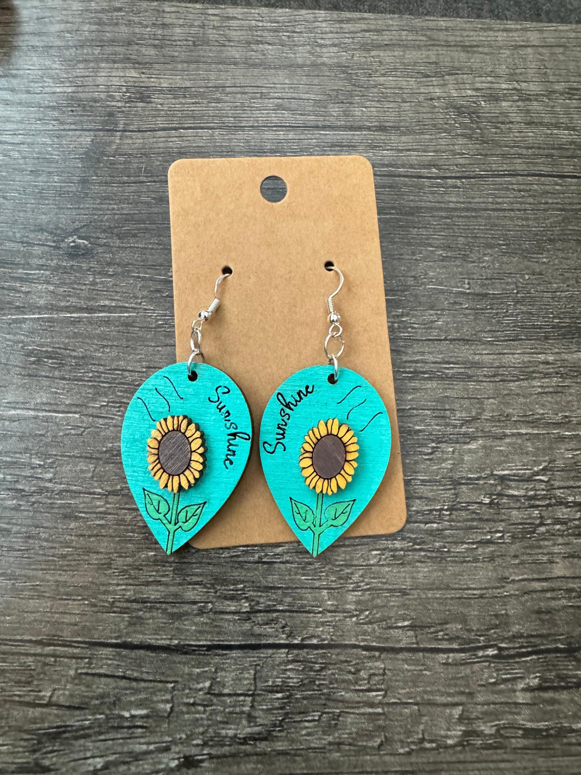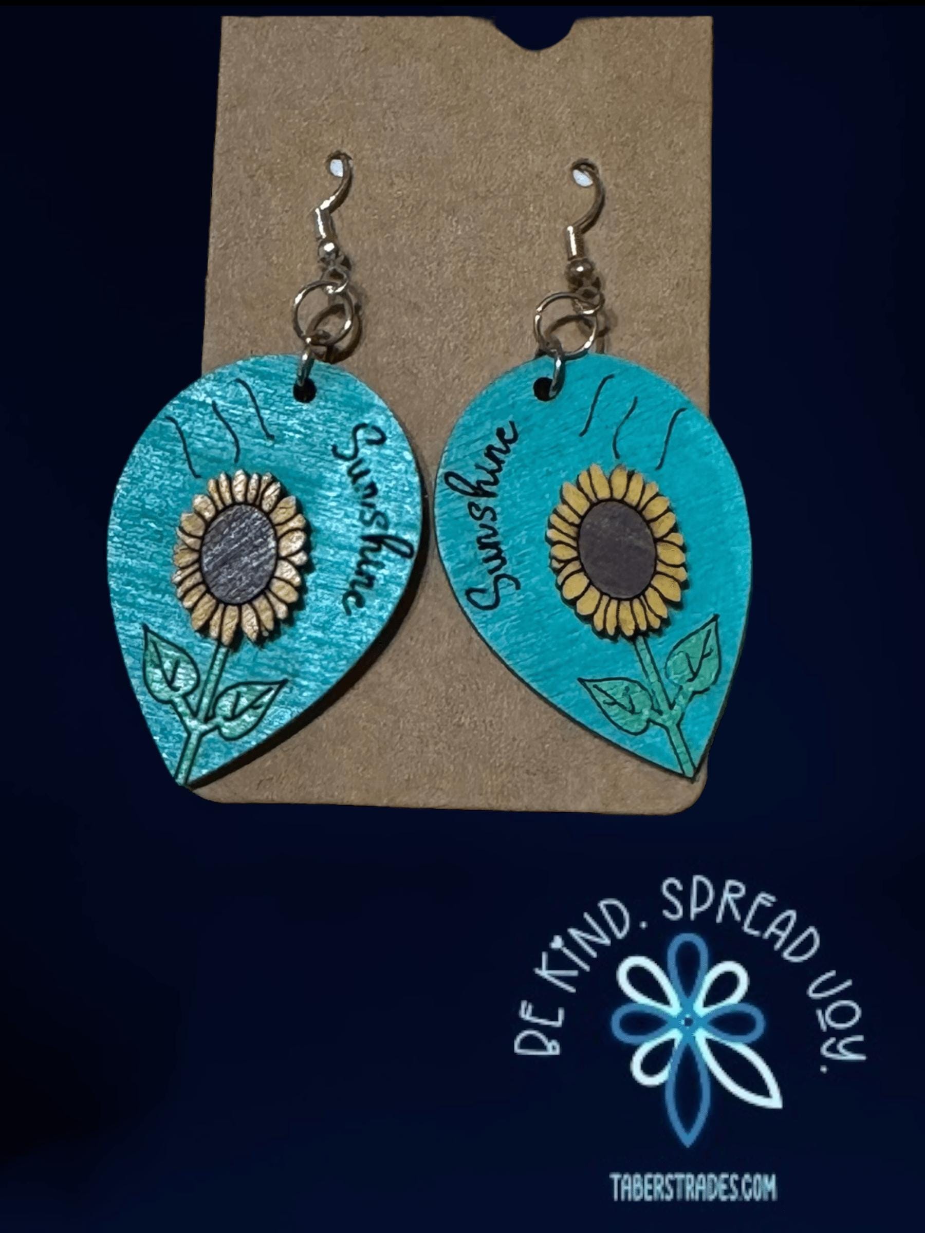 These sunflower earrings, engraved with the word "Sunshine," bring warmth and positivity to any outfit. Their bright floral design paired with the uplifting engraving serves as a daily reminder of light and joy. Lightweight and comfortable, they make a meaningful gift or a personal symbol of encouragement. Wear them to carry a bit of sunshine with you wherever you go.