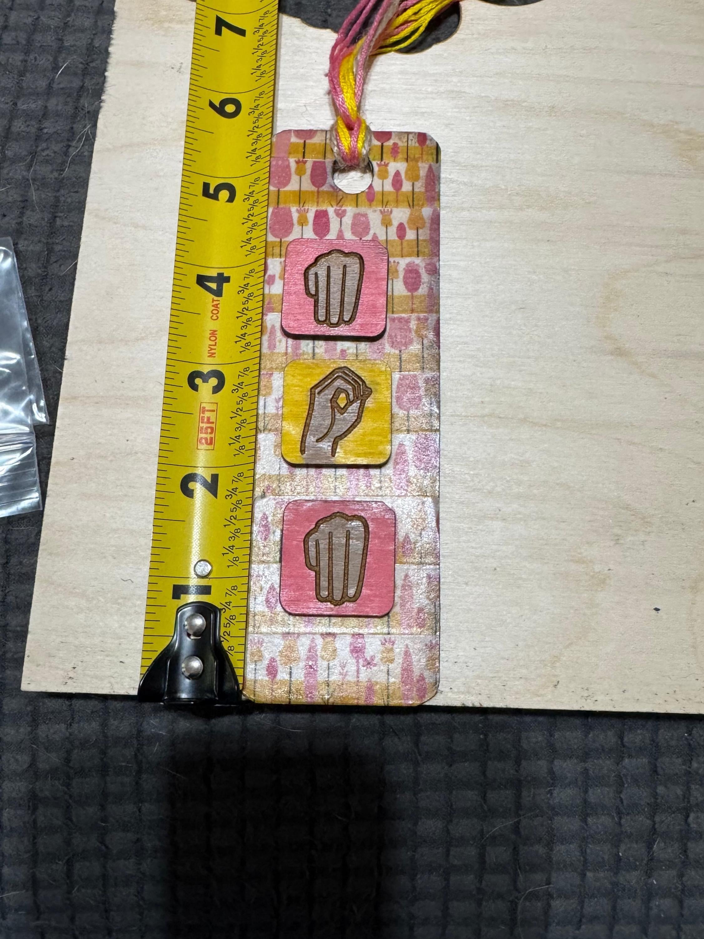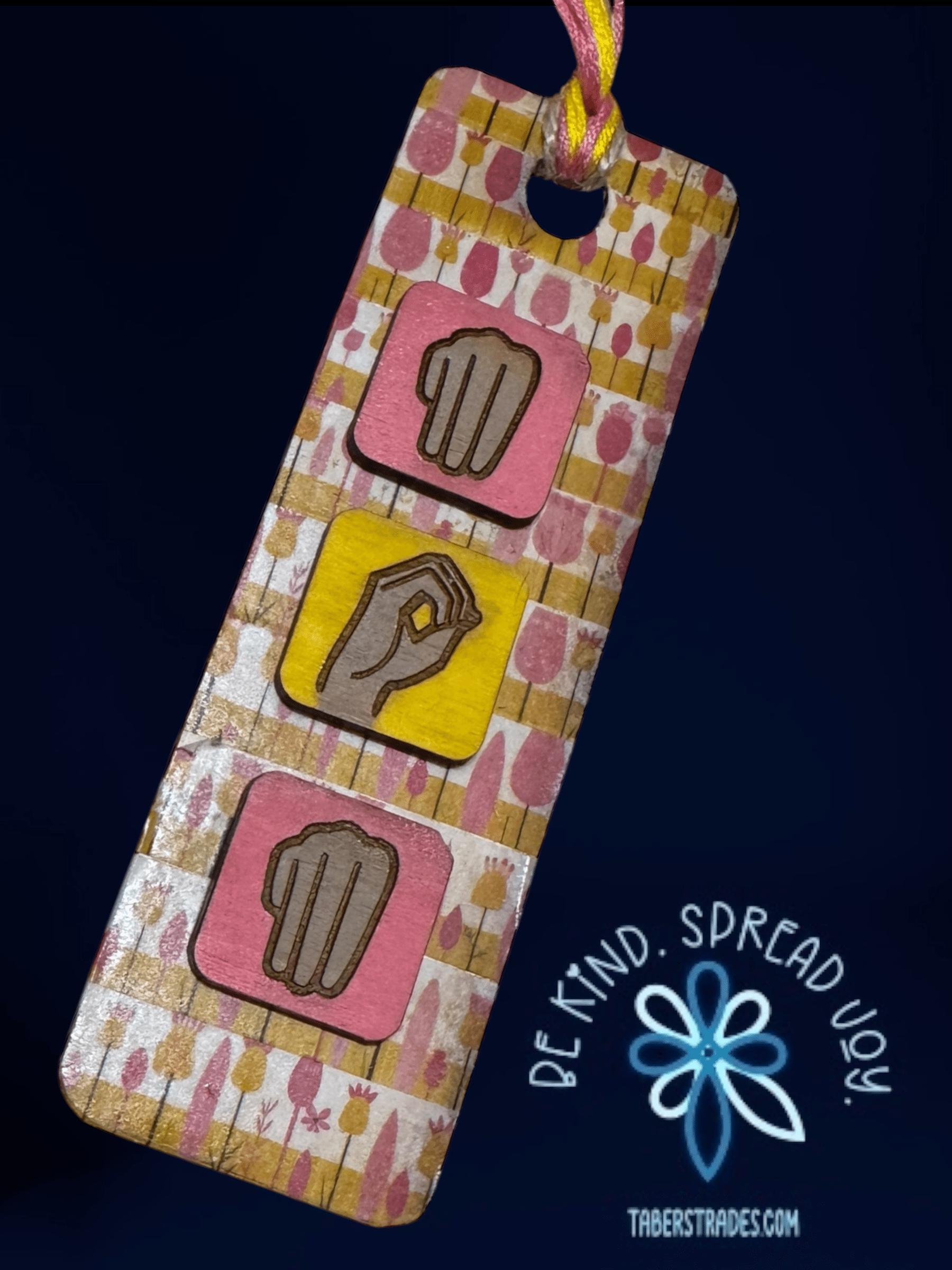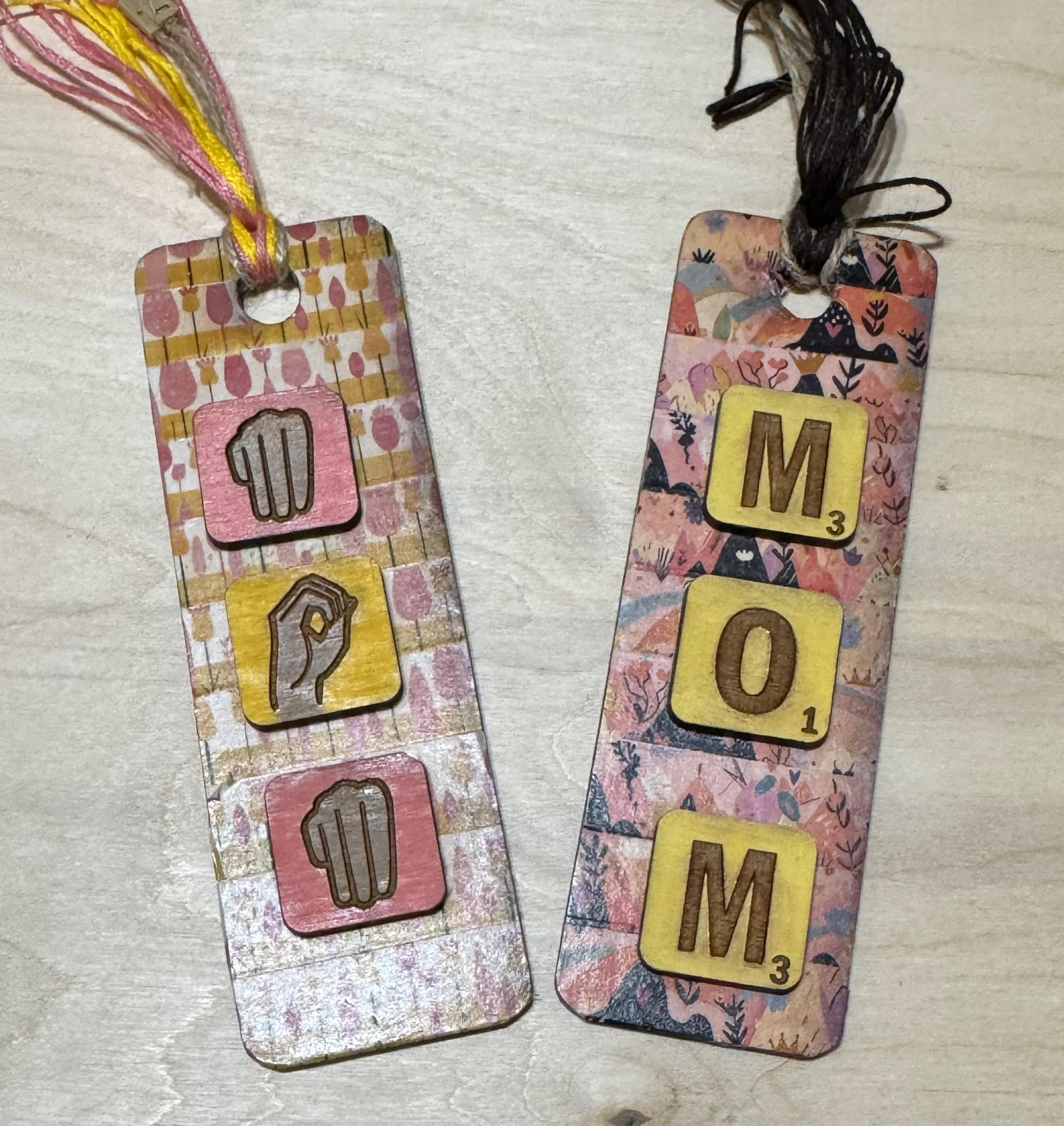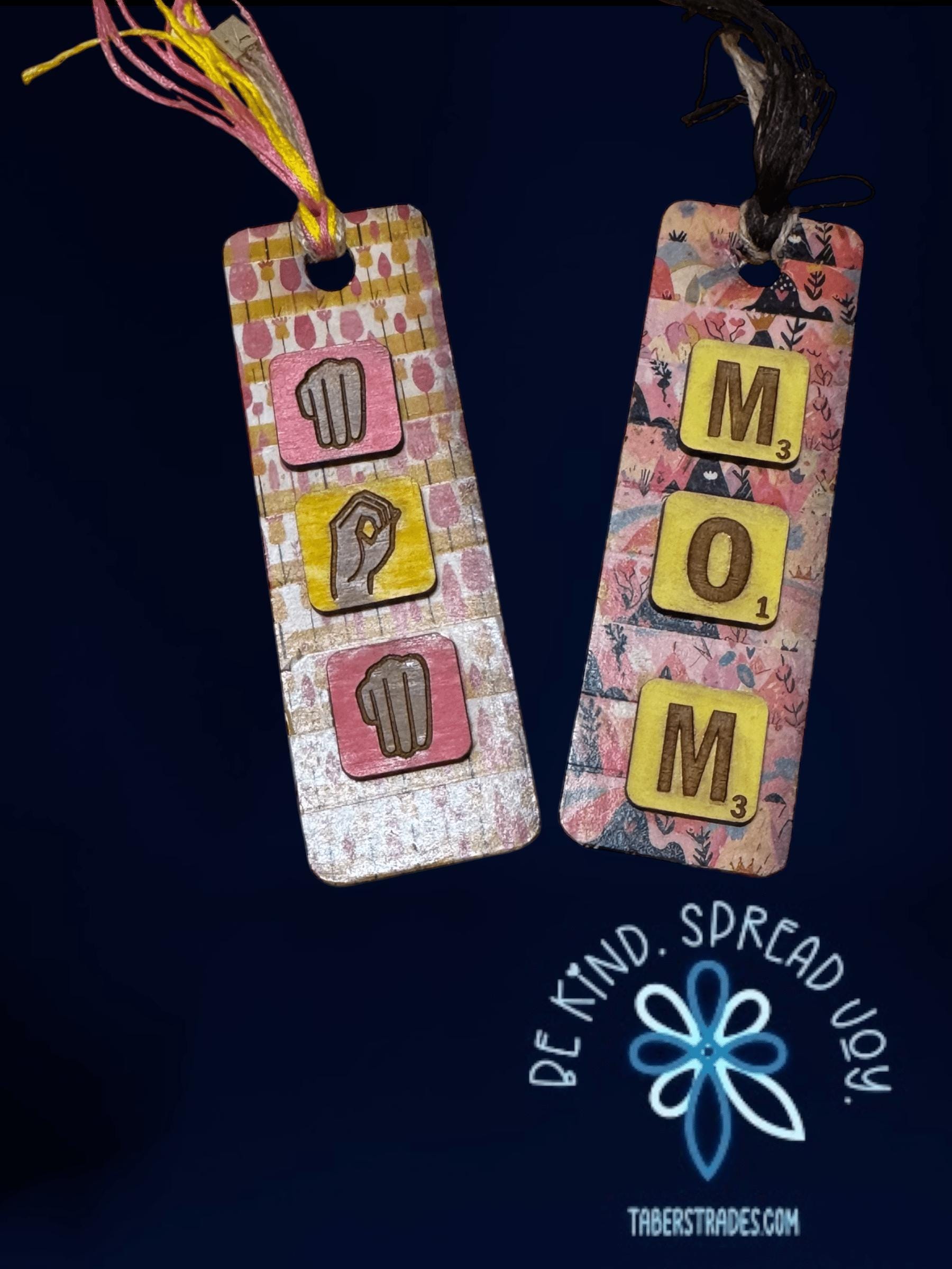 Celebrate mom with this unique bookmark-style ornament featuring "Mom" spelled out in letter tiles alongside American Sign Language (ASL) elements. Perfect as a thoughtful gift, it honors both the love and communication shared with mom in a creative, heartfelt way. Its compact design makes it a charming keepsake to display or use, reminding her daily of your appreciation.