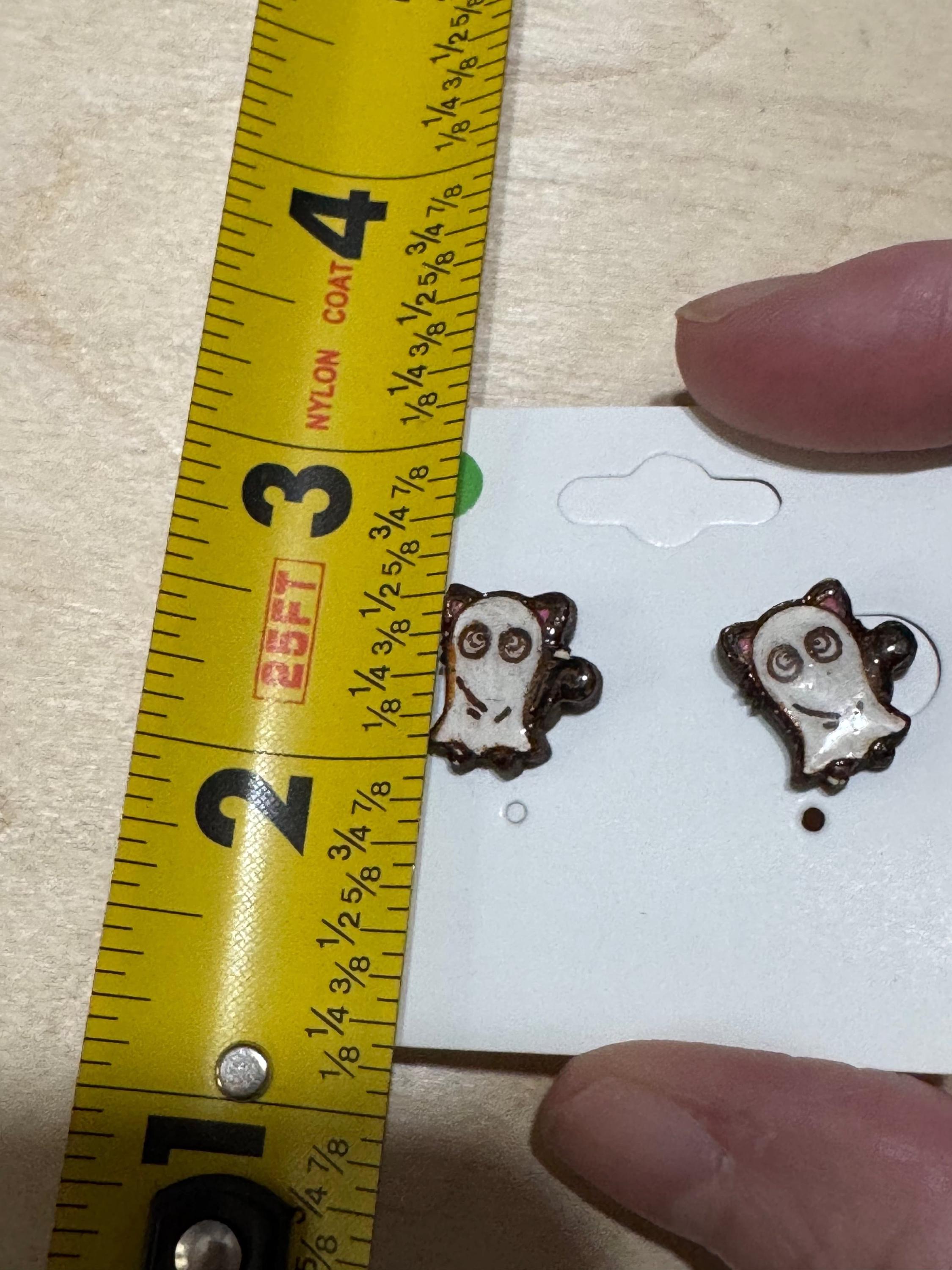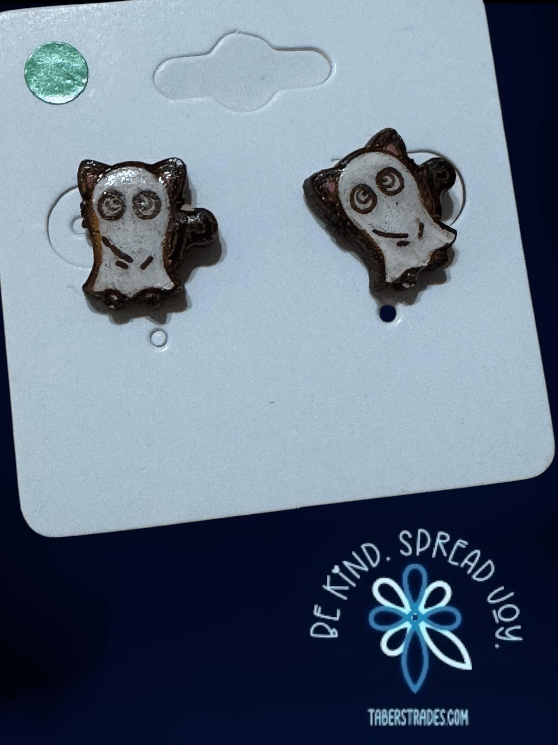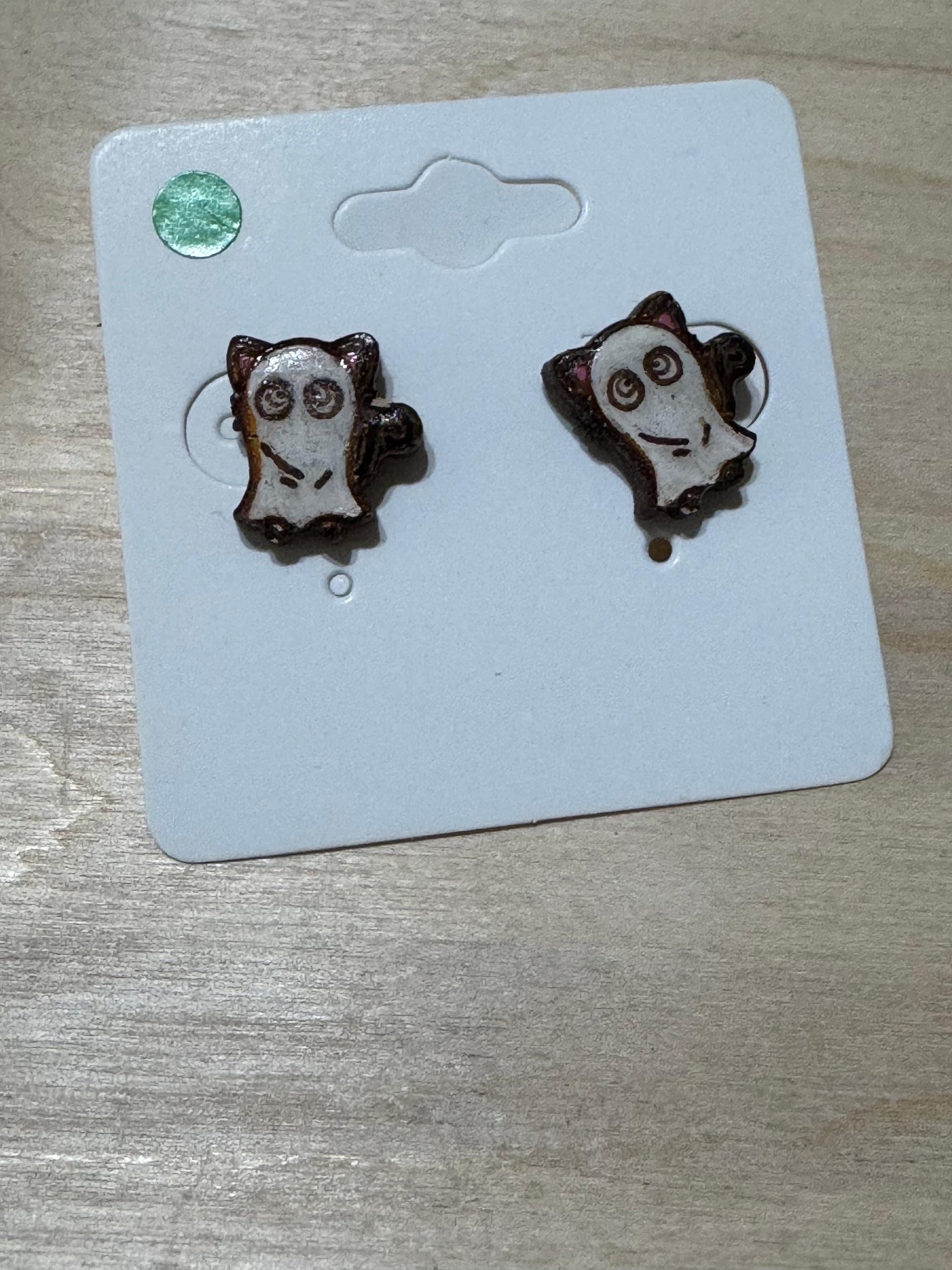 Celebrate the fun of Halloween with these Cat with Ghost Costume Stud Earrings. Featuring adorable cats dressed in ghost costumes, these earrings add a cute and festive detail to any outfit. Comfortable and lightweight, they’re perfect for everyday wear or special seasonal occasions, helping you embrace the spooky spirit with a playful charm.