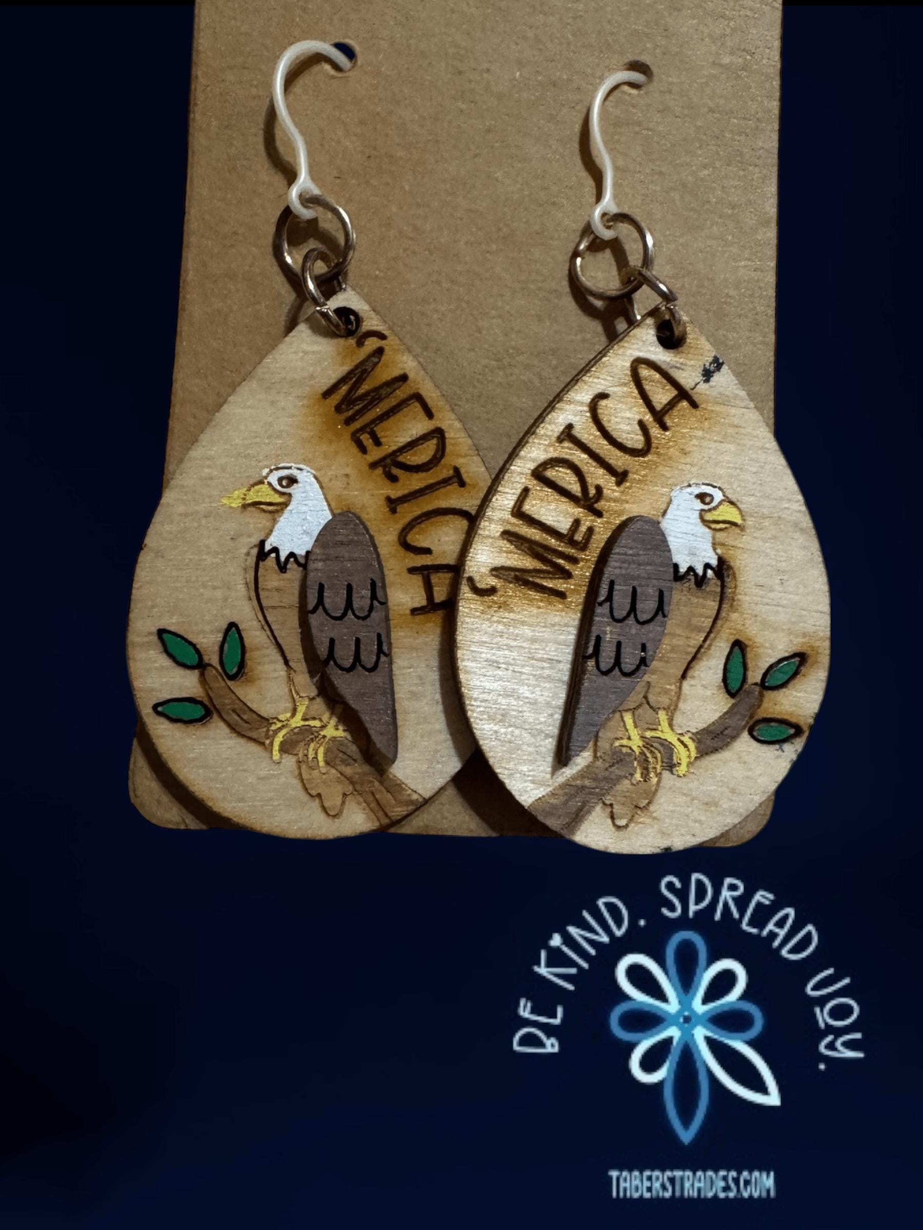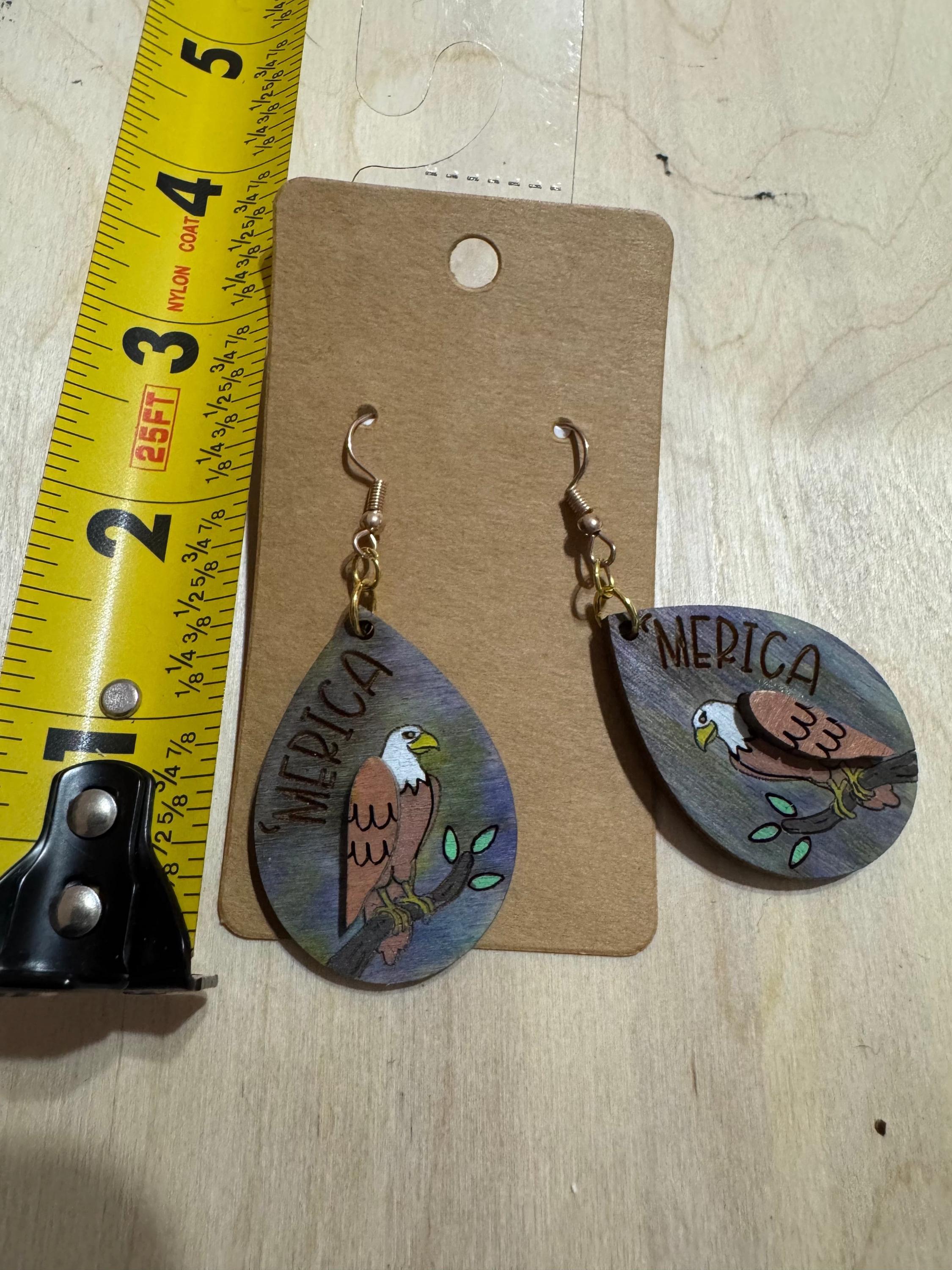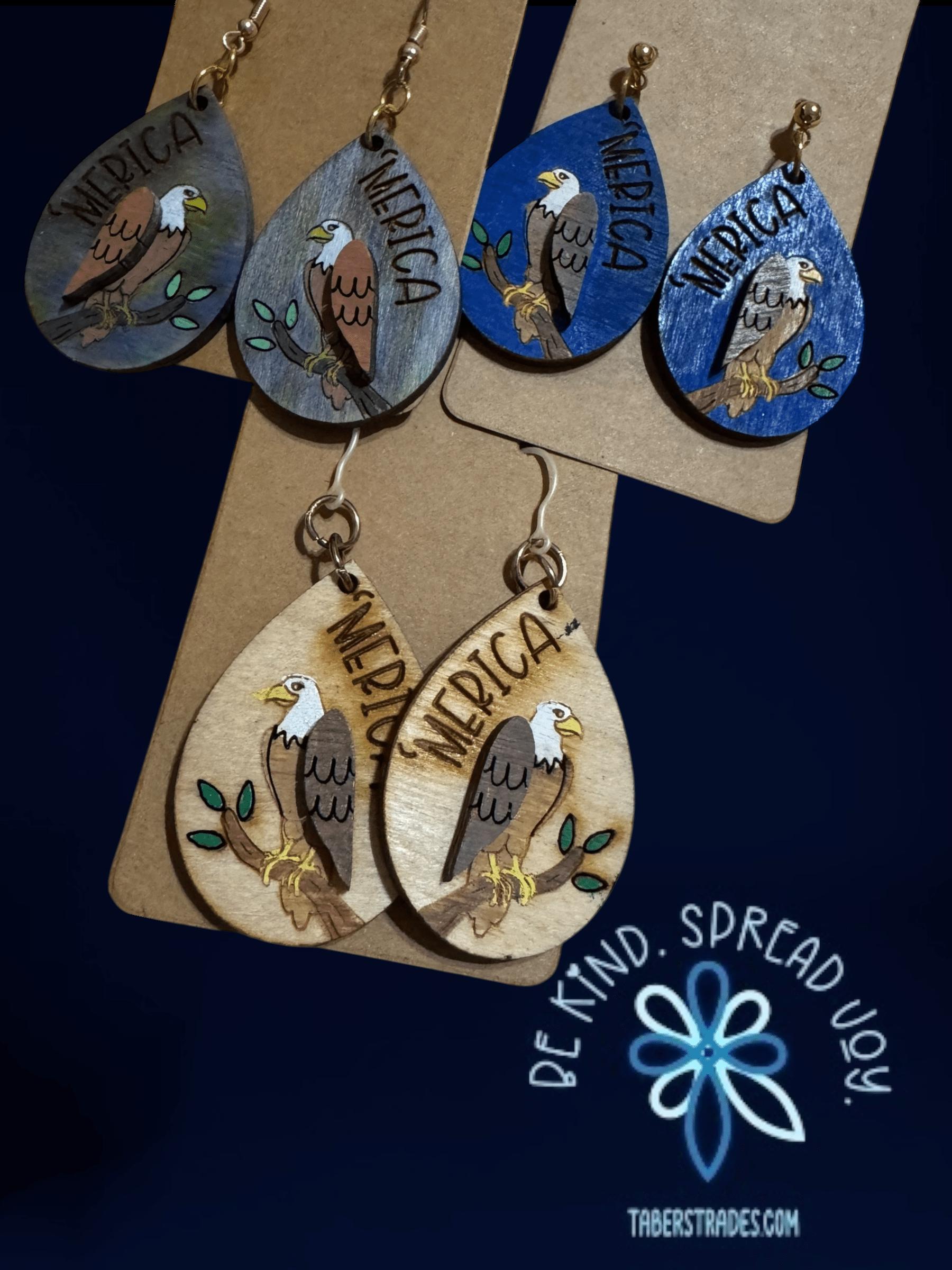 Celebrate your patriotic spirit with these Eagle * Merica * America * Independence Day Earrings. Featuring a bold eagle design paired with an engraved "merica," these earrings capture the essence of American pride. Perfect for Independence Day or whenever you want to showcase your love for the USA, they offer a stylish way to honor freedom and heritage. Lightweight and easy to wear, these earrings make a meaningful accessory for any occasion that calls for a touch of patriotism.