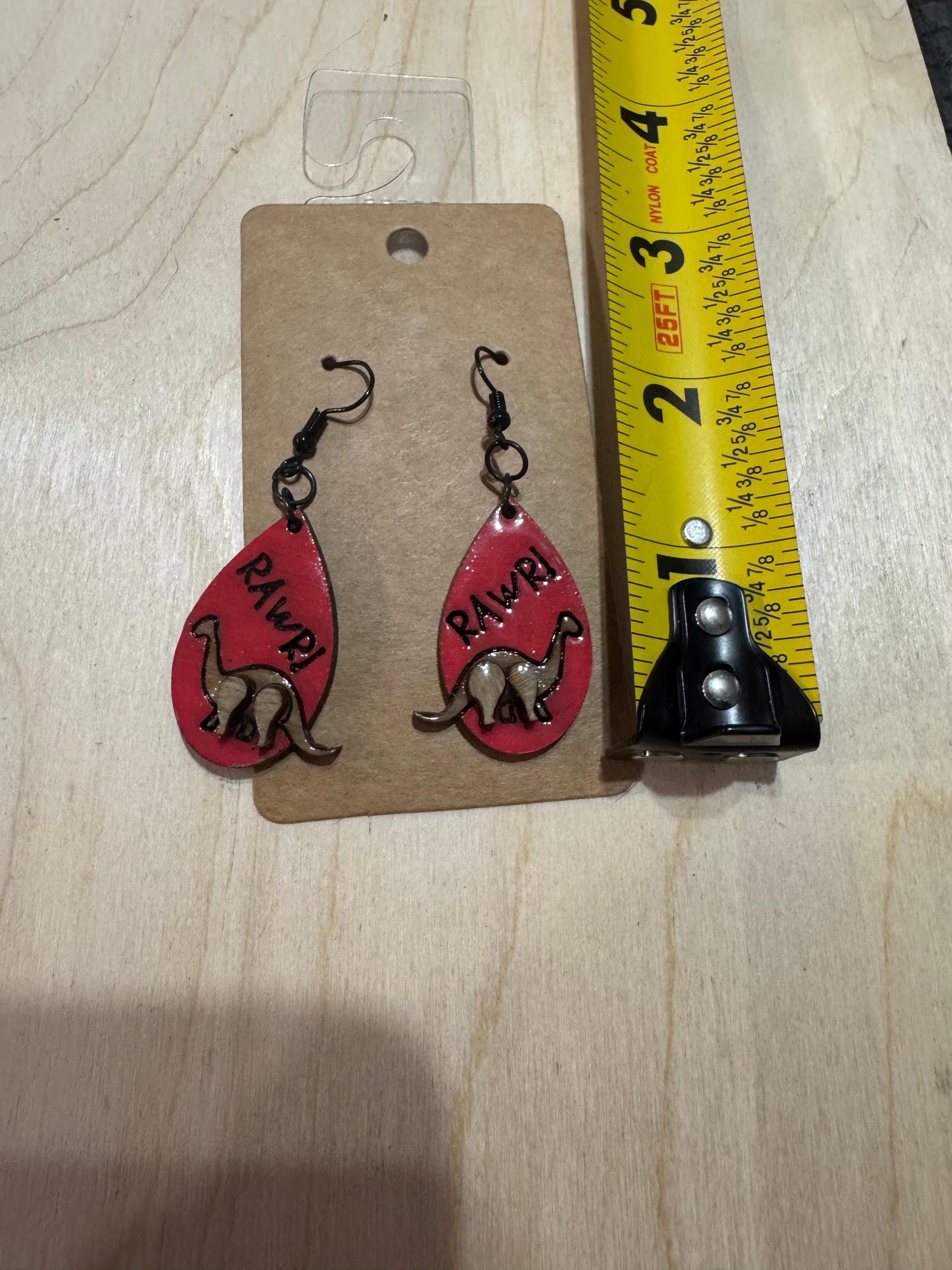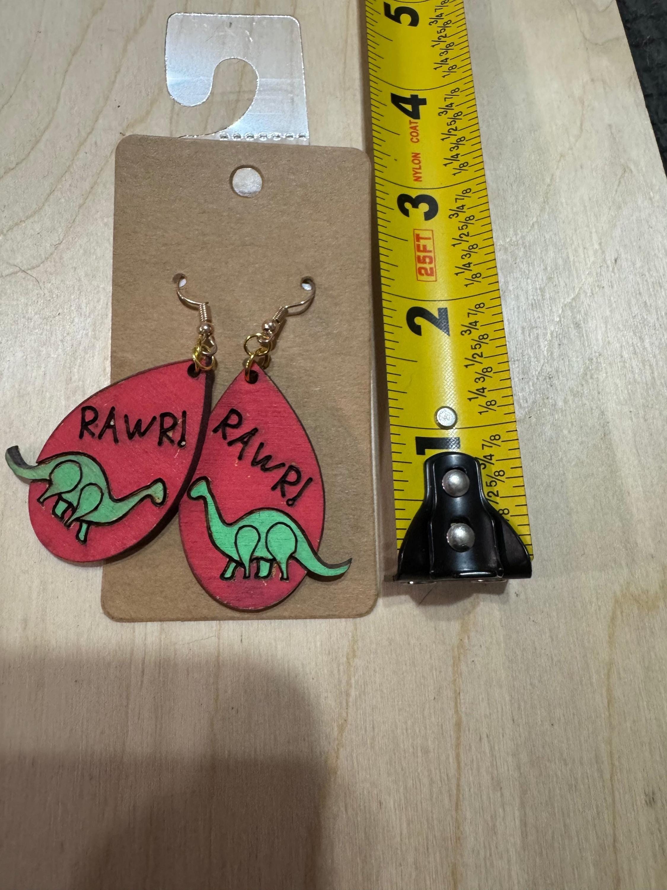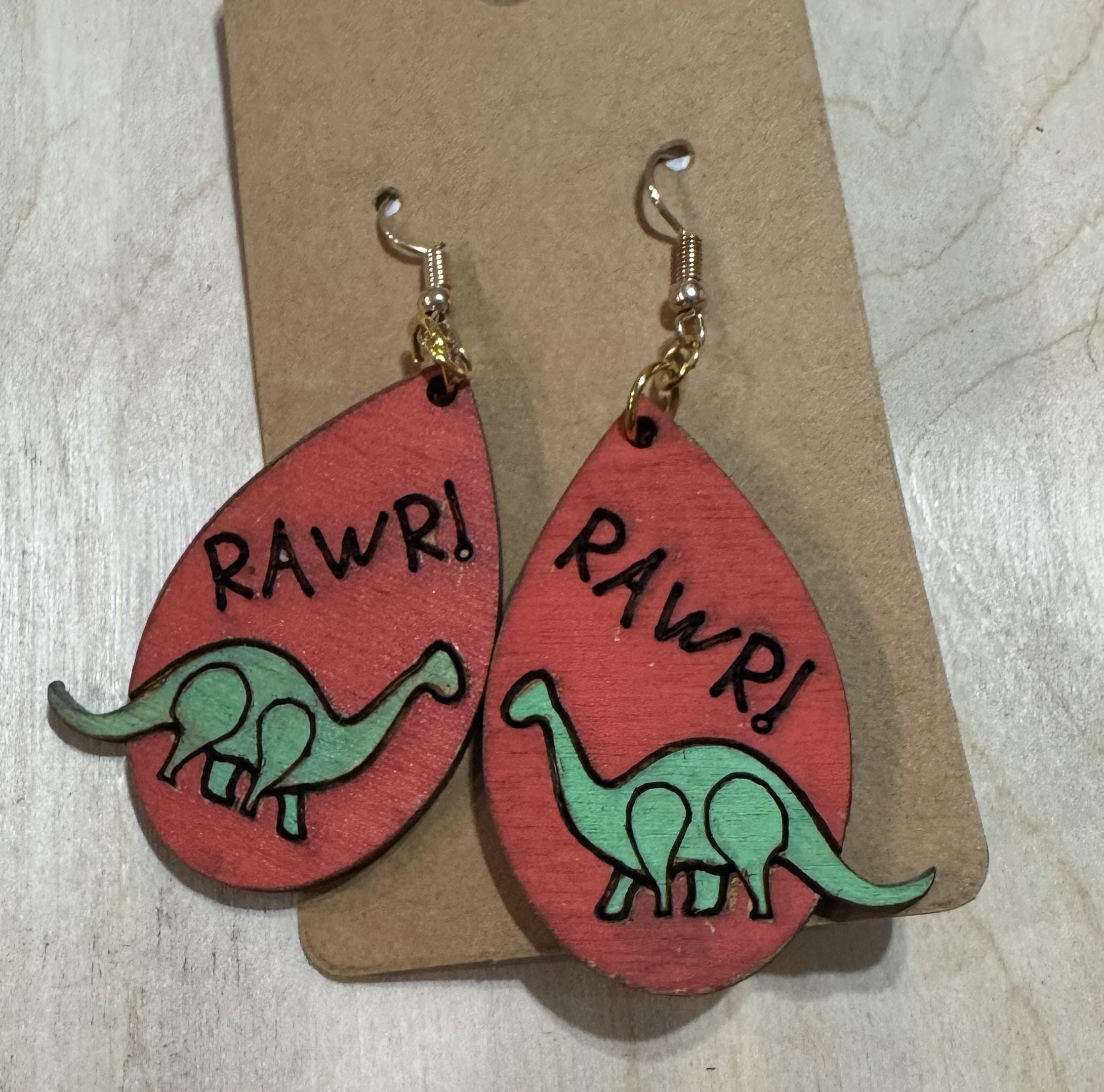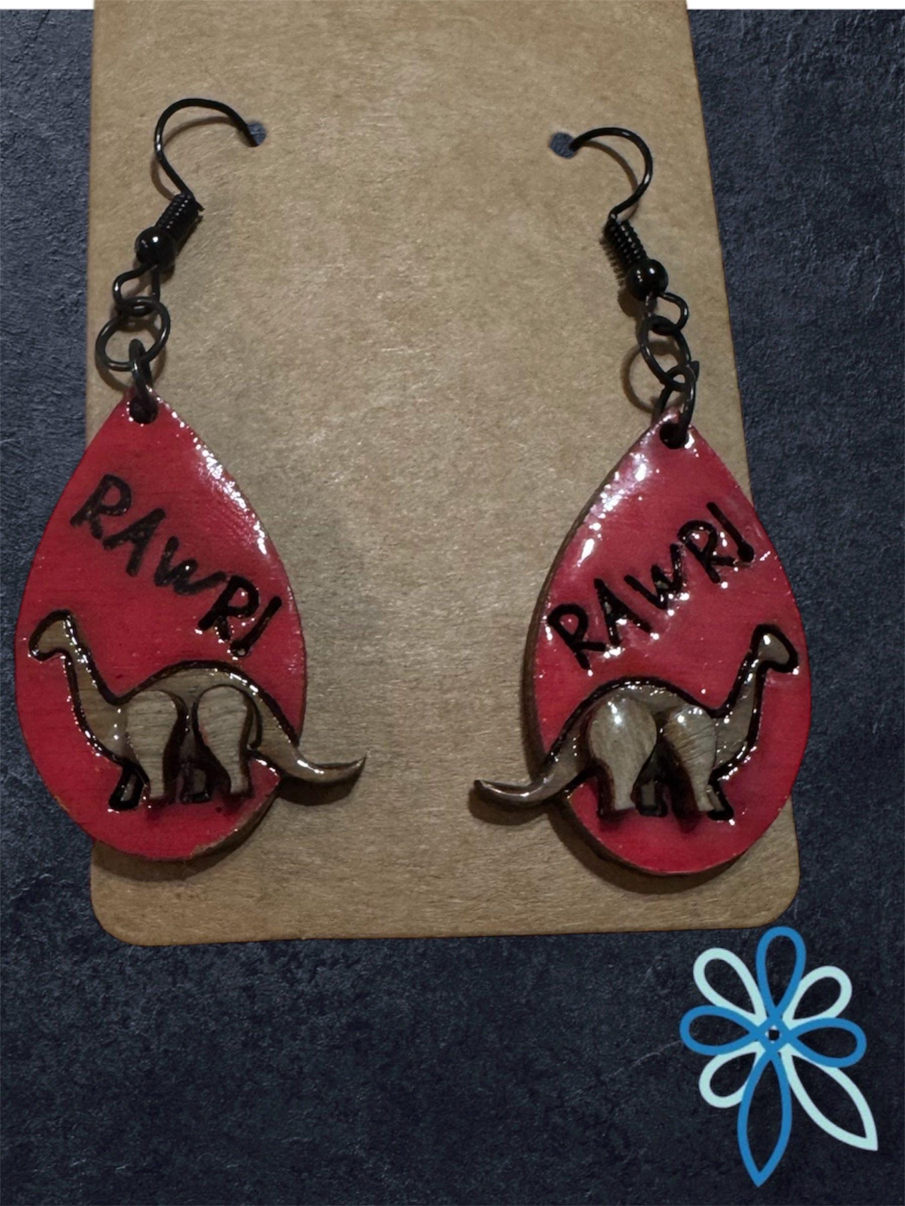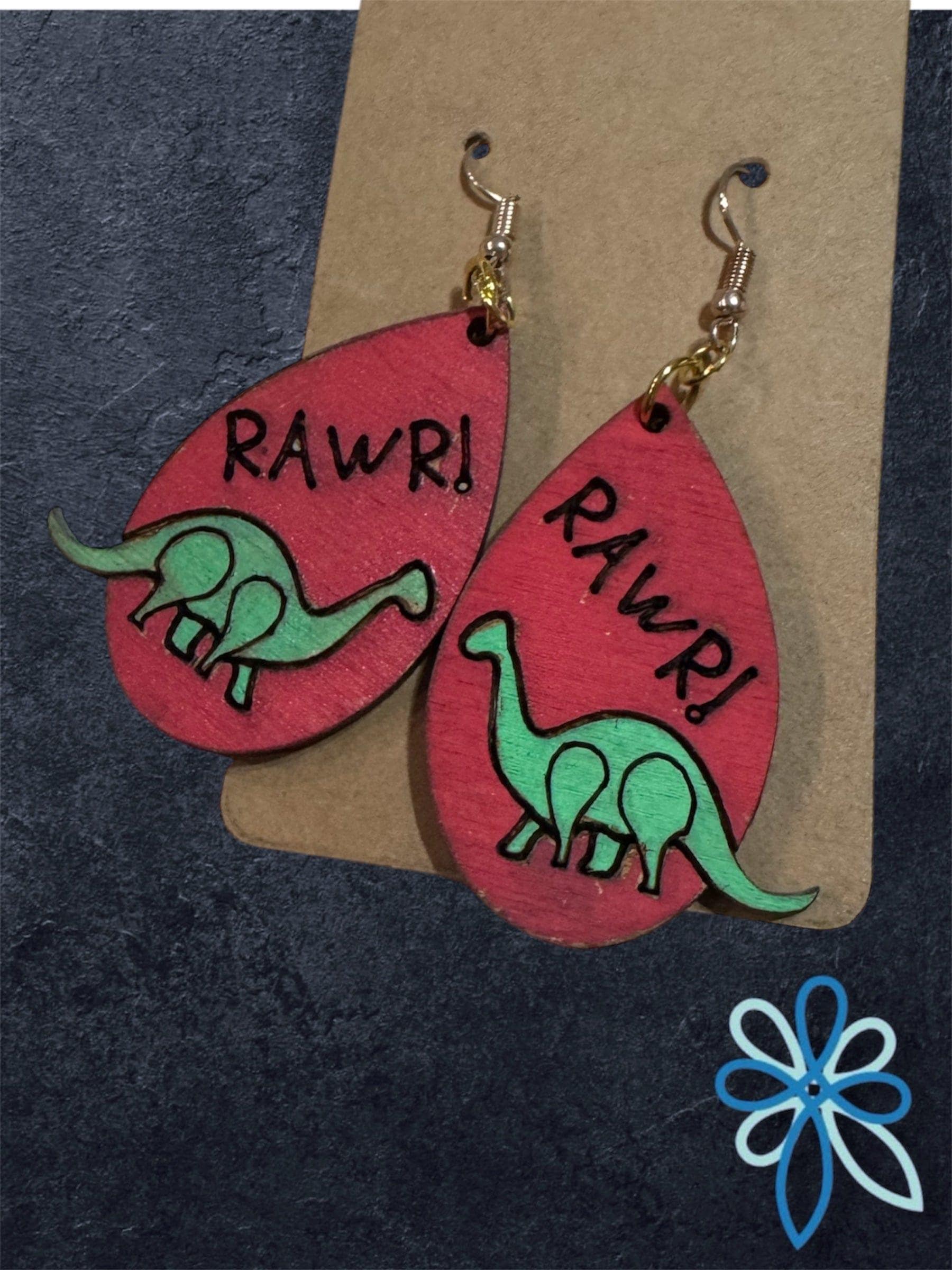 Celebrate your love for dinosaurs with these charming Dinosaur RAWR Earrings. Featuring a playful dinosaur design paired with the fun "rawr" text, they add a quirky touch to any outfit. Lightweight and comfortable, these earrings are perfect for expressing your unique style while keeping things fun and lively. Ideal for dino enthusiasts of all ages who want to wear a bit of prehistoric personality every day.