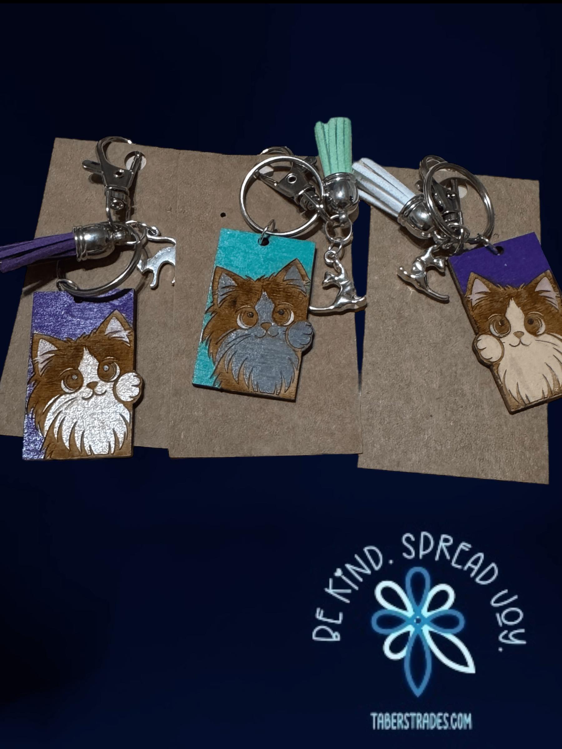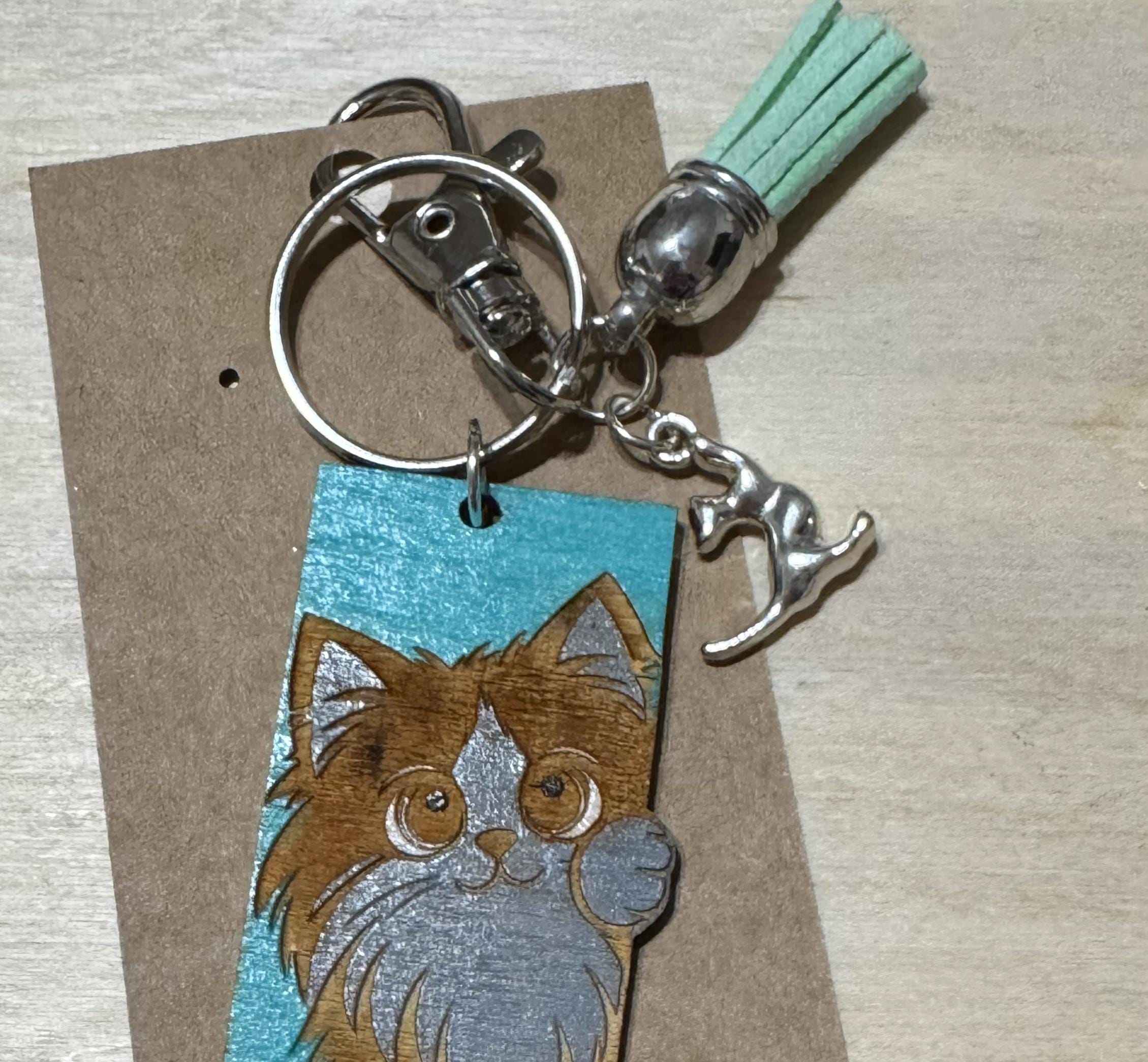 Celebrate your love for cats with our charming collection of cat-themed keychains, bag tags, and bag charms. Each option is designed to add a playful and personal touch to your belongings while keeping your keys or bags easily identifiable. Durable and stylish, these accessories make thoughtful gifts for cat lovers or delightful additions to your own collection. Explore the variety to find the perfect cat-inspired accent that suits your style and keeps your essentials close at hand.