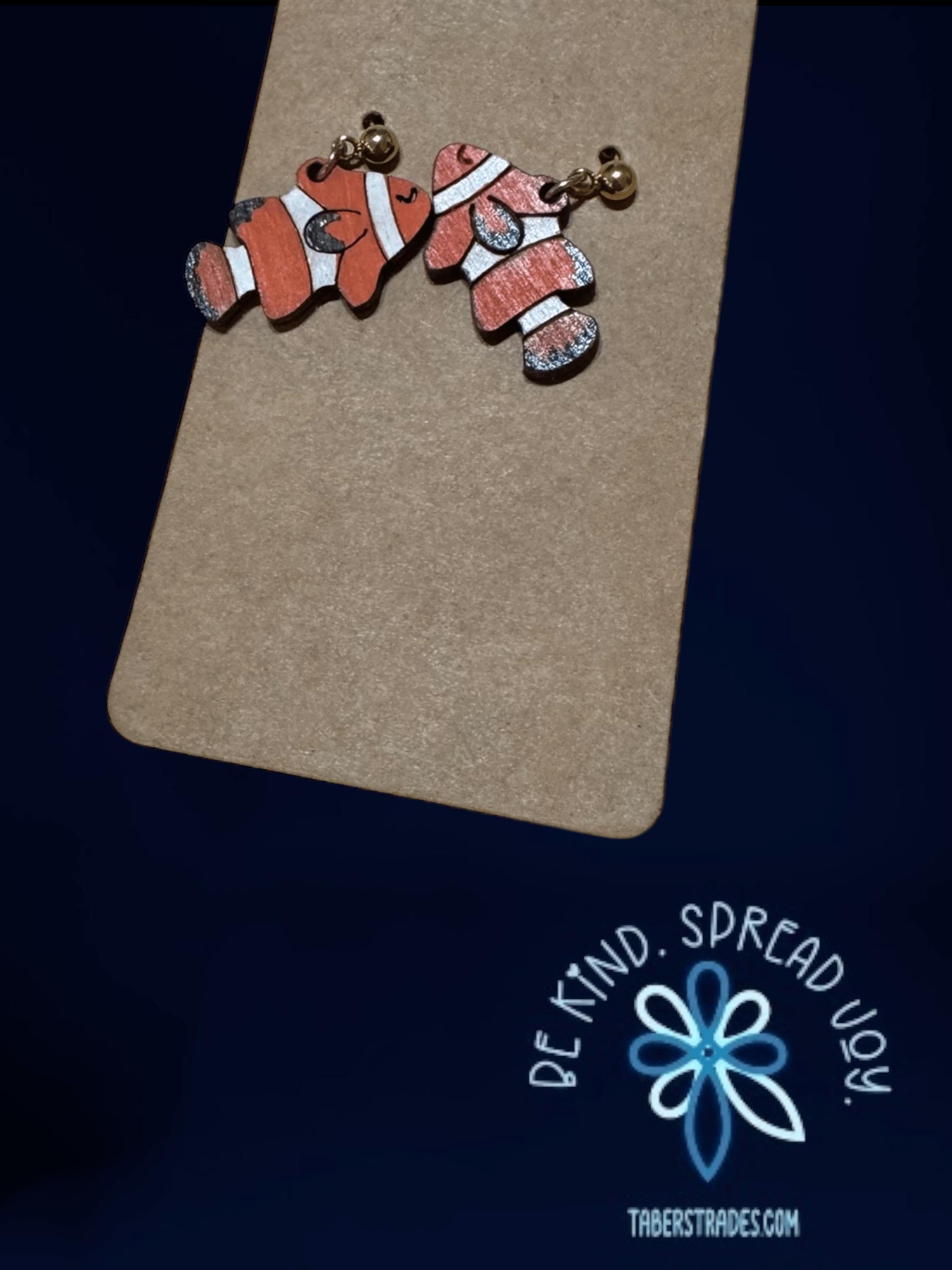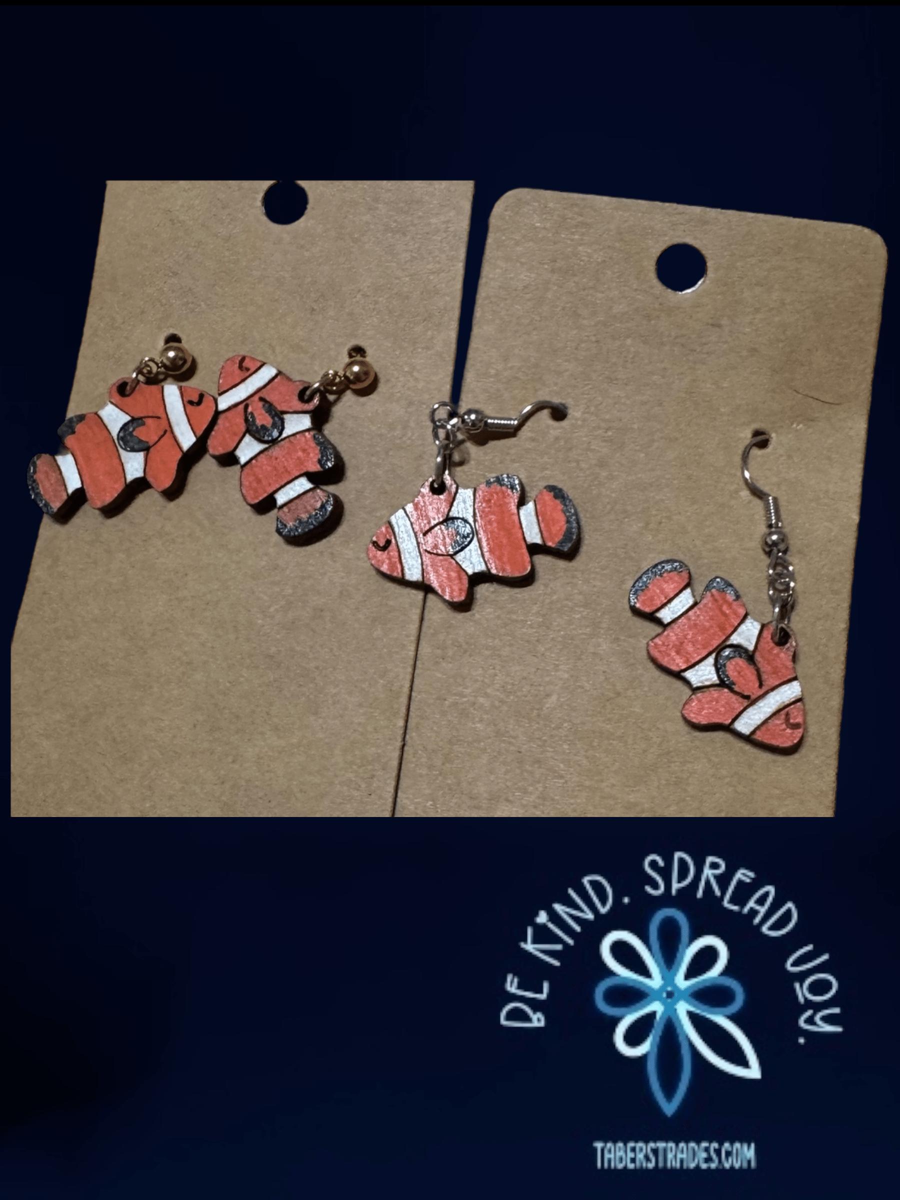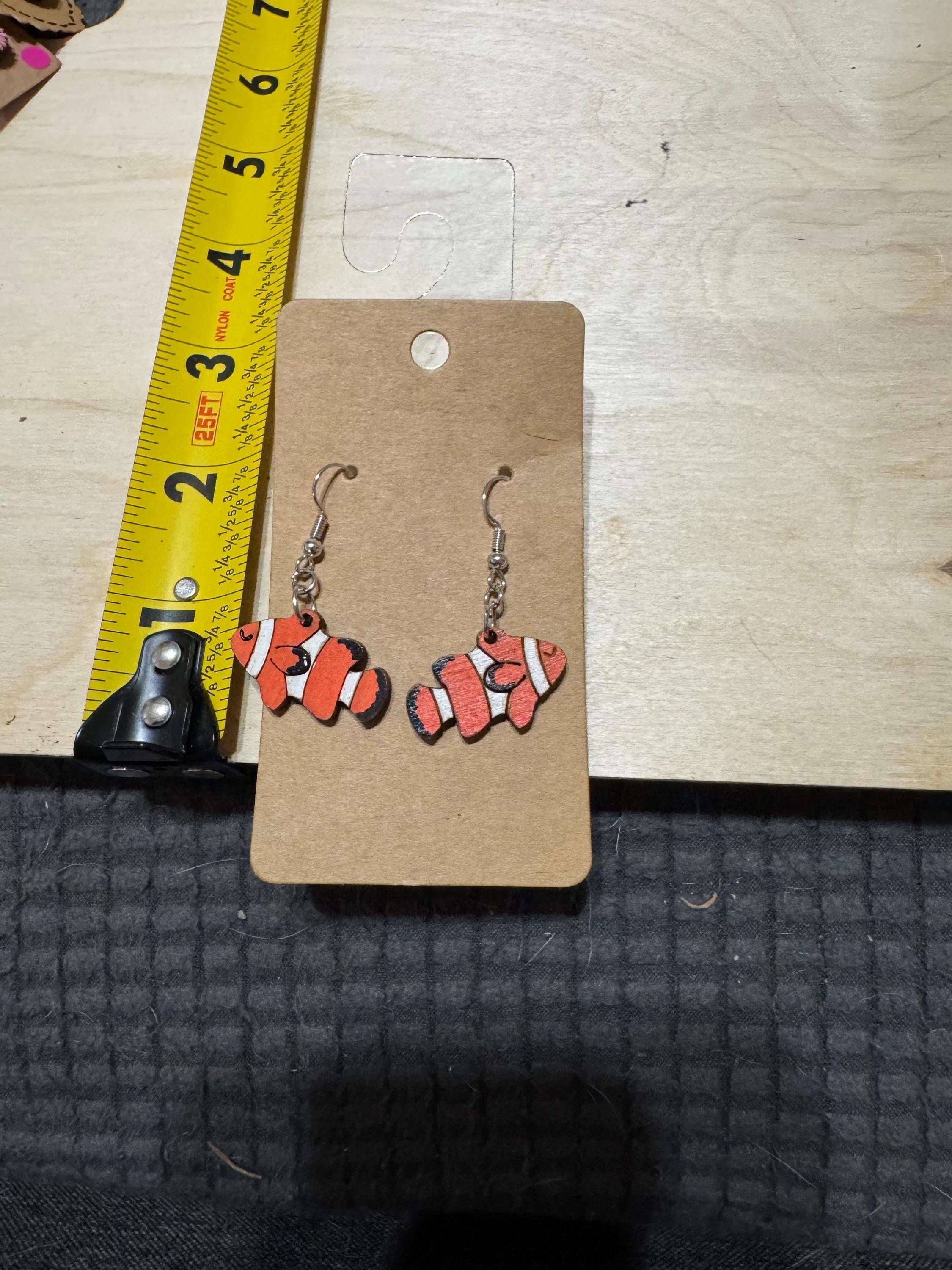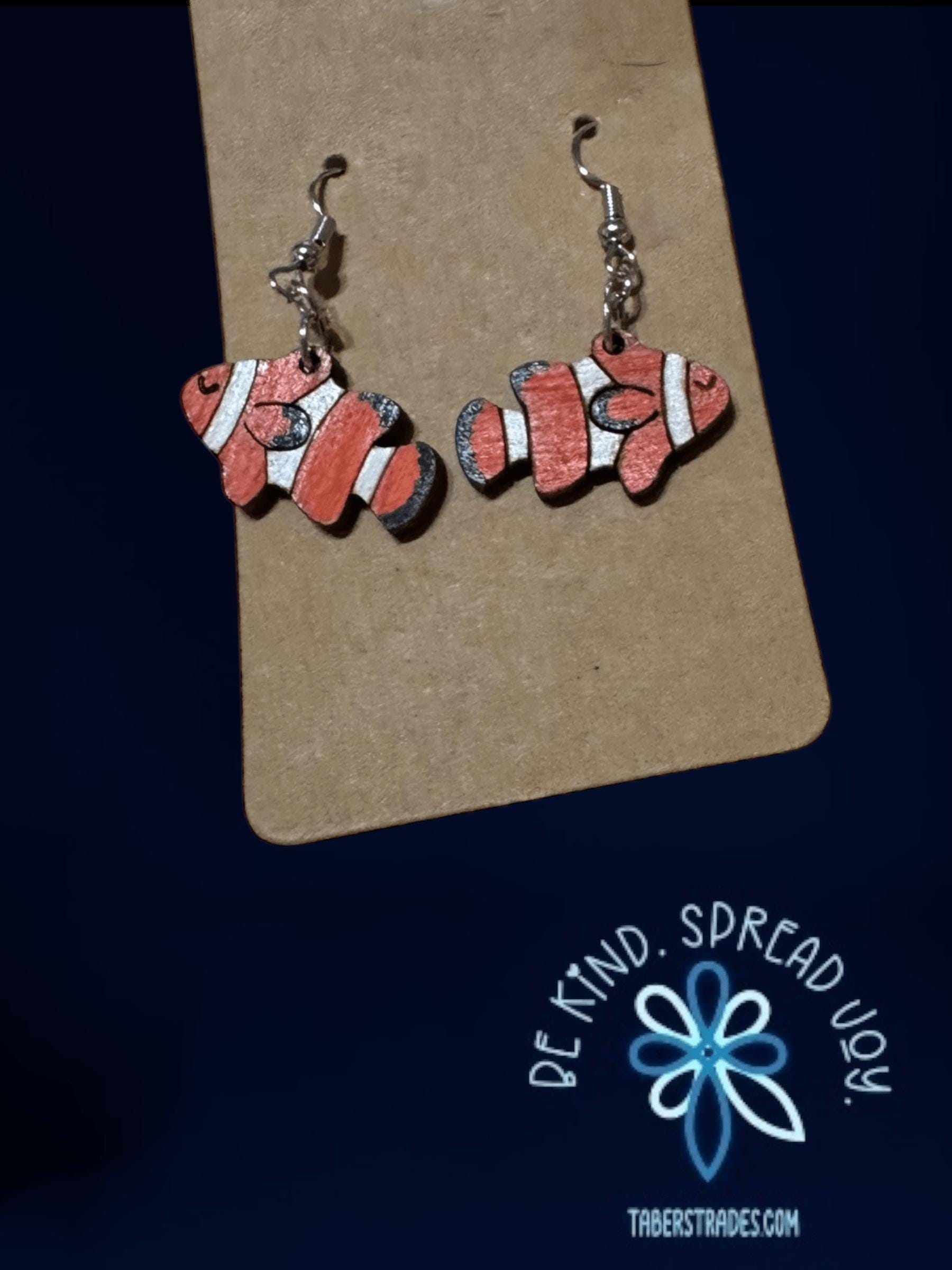 These earrings showcase the vibrant orange and white stripes of a clownfish, capturing the charm of this beloved tropical fish. Lightweight and colorful, they make a delightful accessory for anyone who appreciates marine life or wants to add a splash of ocean-inspired style to their look. Perfect for showing support for ocean conservation and aquatic beauty.