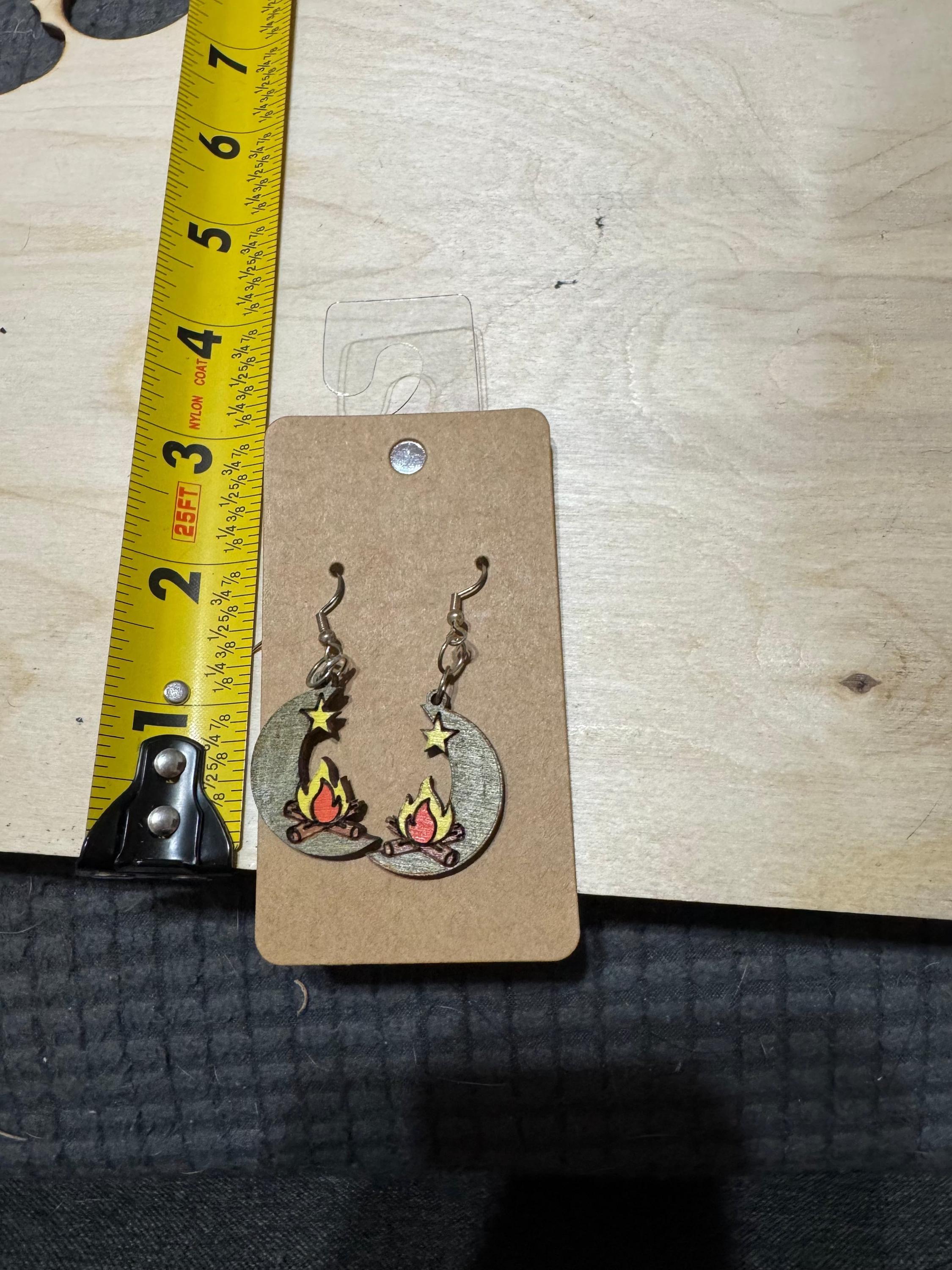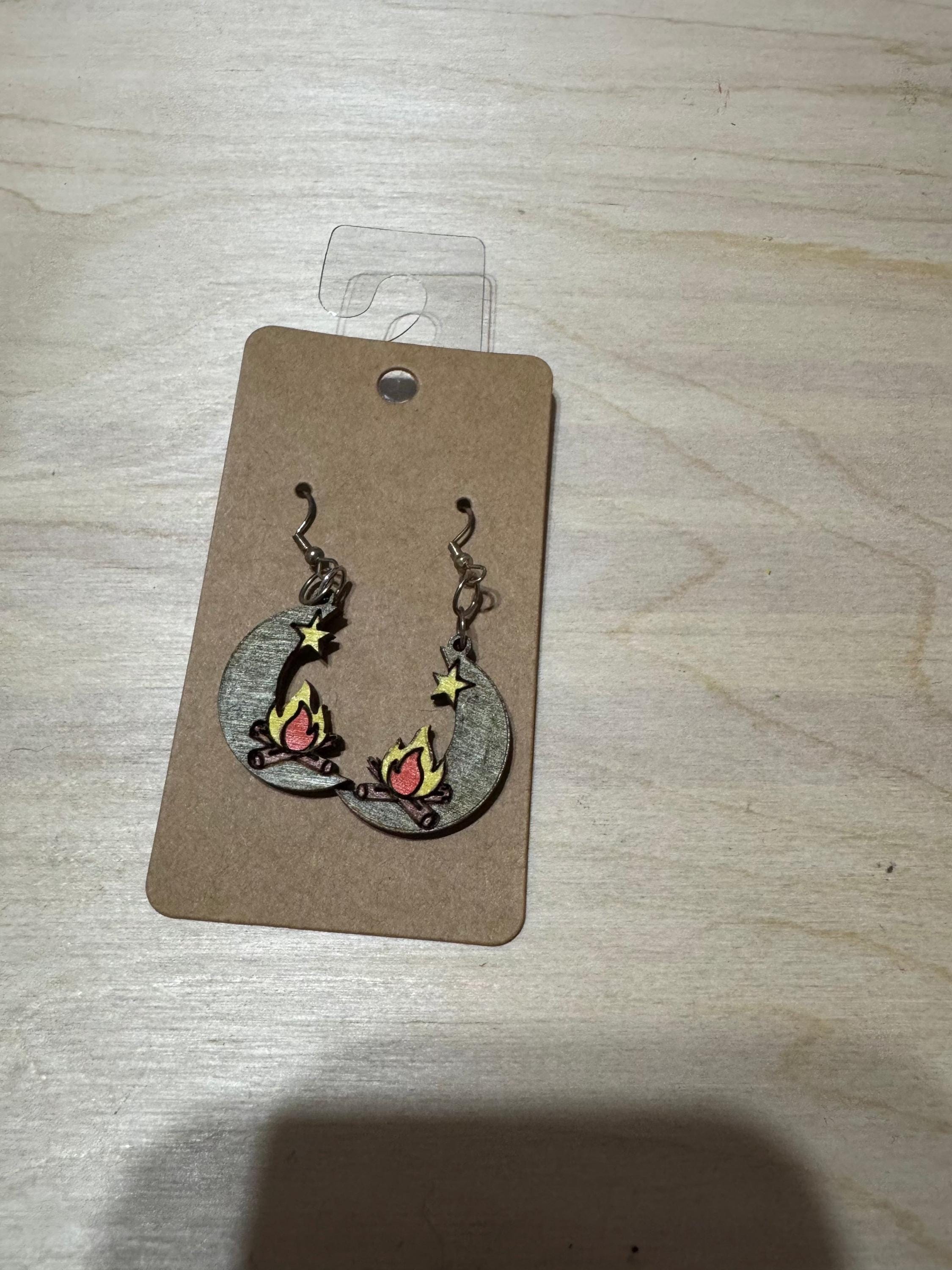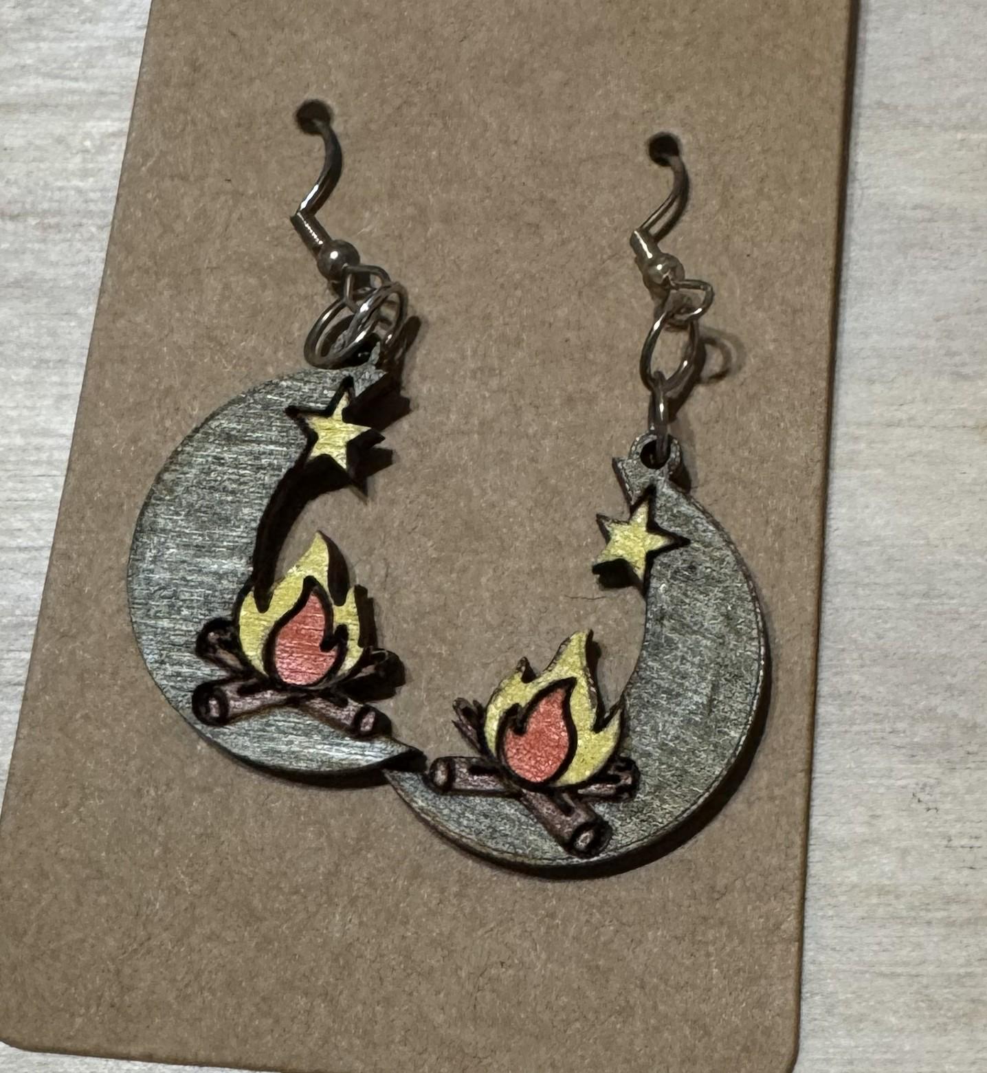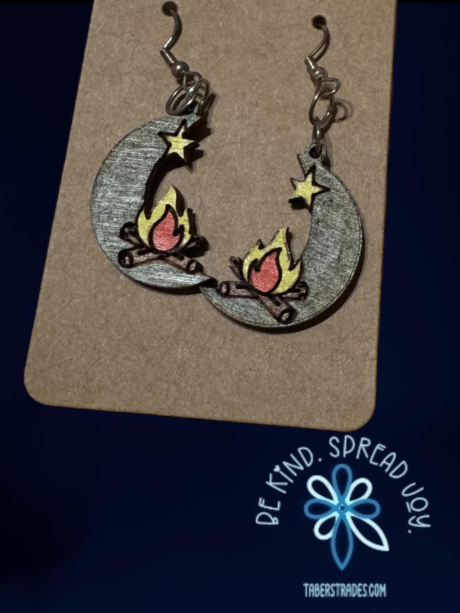 Celebrate celestial charm with the Campfire on the Moon Earrings. These unique earrings blend the cozy warmth of a campfire with the magic of the moon, creating a wearable piece of art. Perfect for those who love stargazing or storytelling under the night sky. Customizable to suit your style, they make a thoughtful gift or a special treat for yourself. Embrace your love for the cosmos with these charming and meaningful earrings.