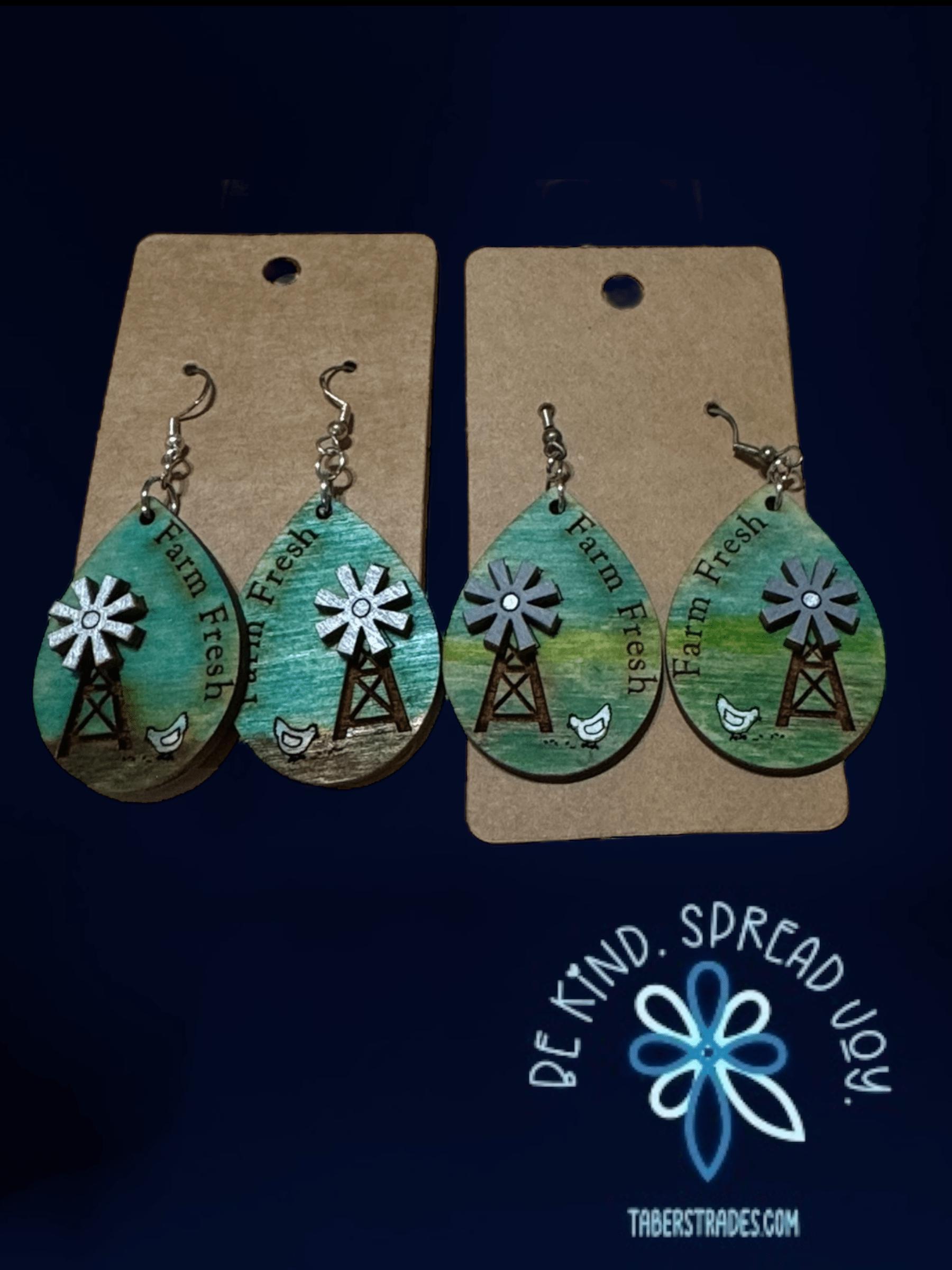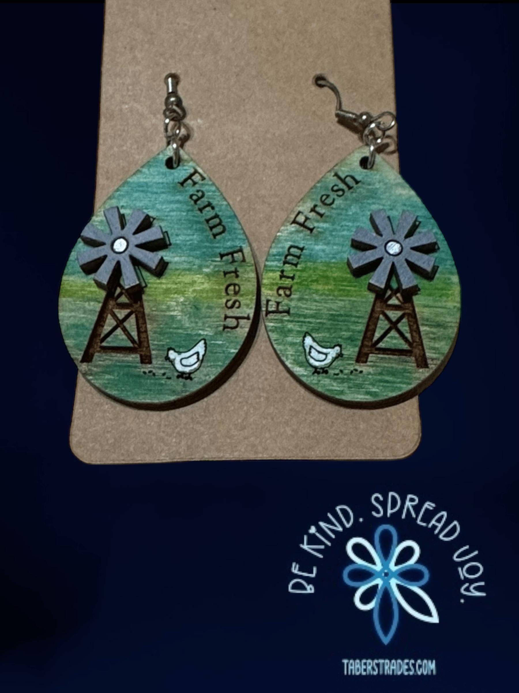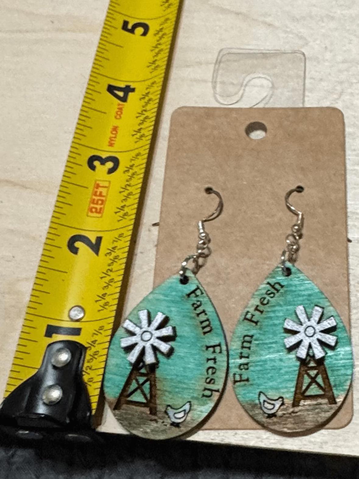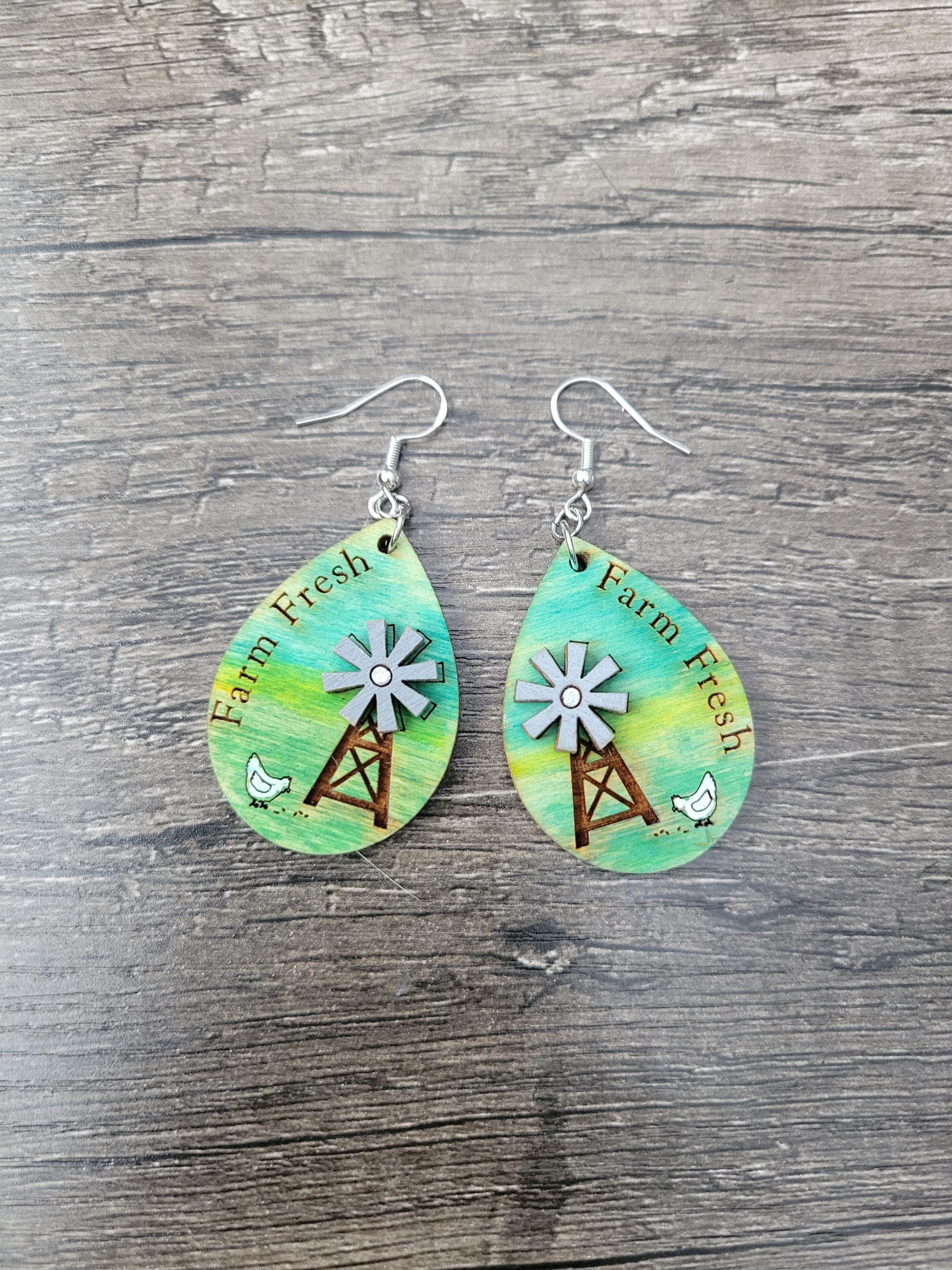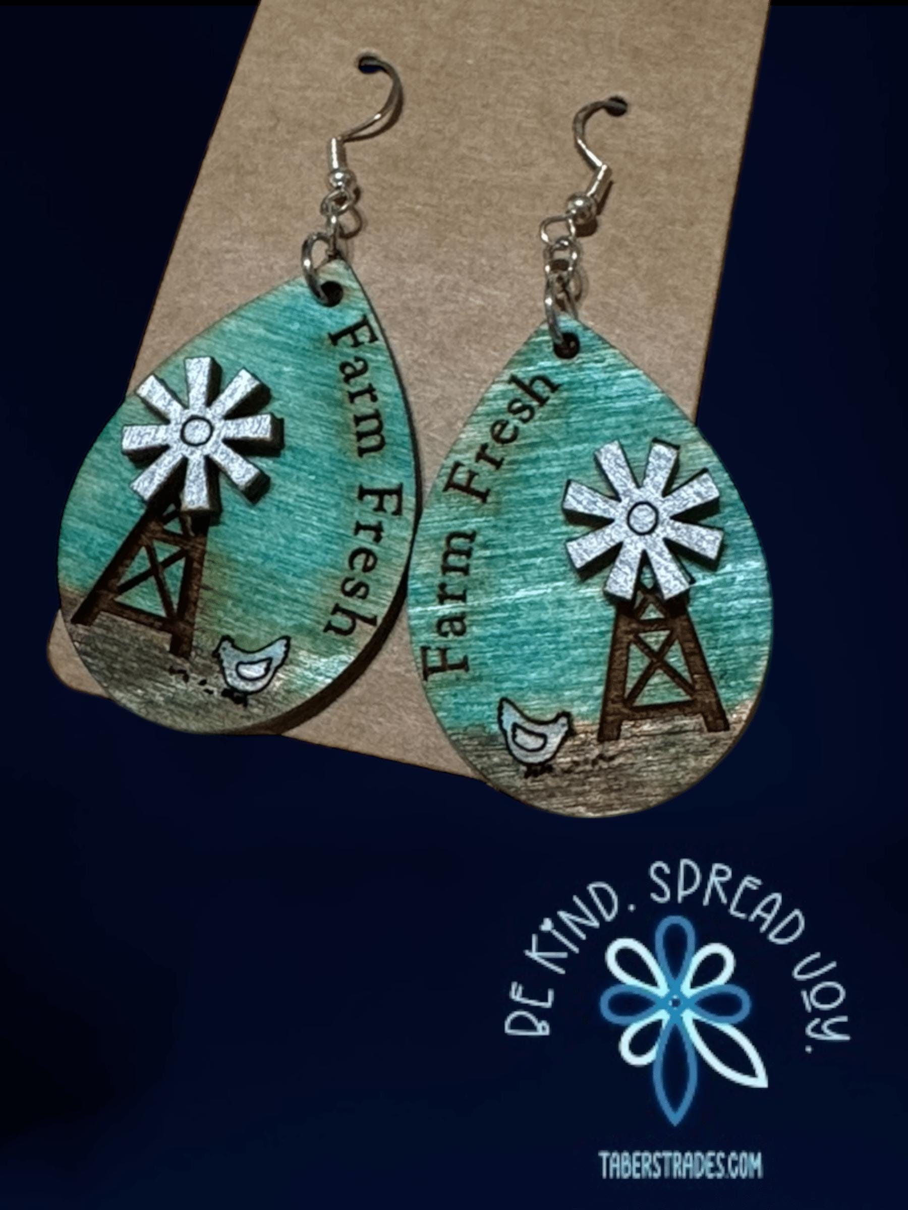 Celebrate rustic charm with these Farm Fresh Earrings featuring a delightful chicken and windmill design. Lightweight and comfortable, they add a touch of countryside warmth to any outfit. Perfect for those who appreciate farm life or unique, handcrafted-inspired accessories.