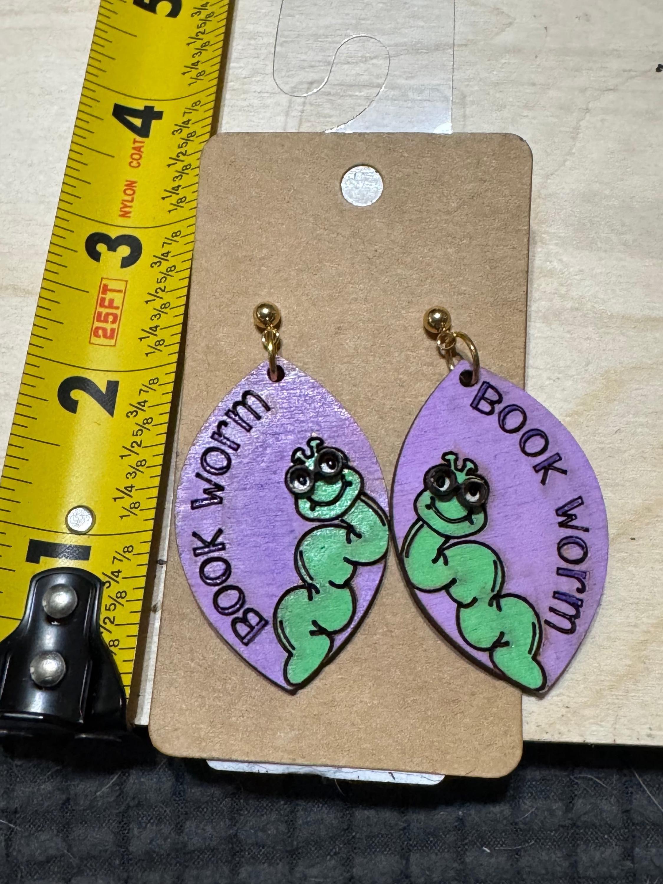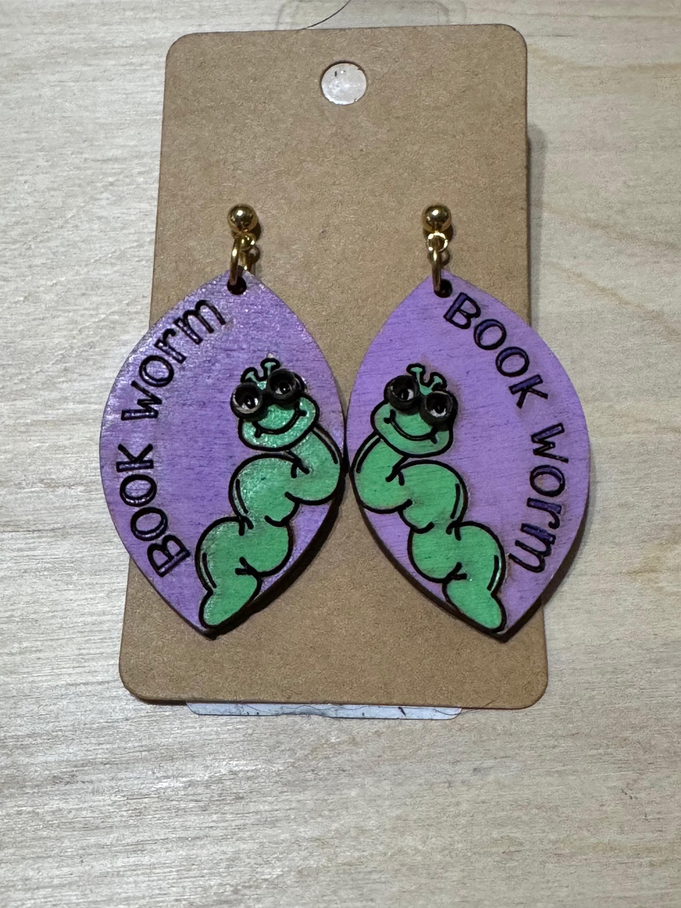 Celebrate your love of reading with these charming Bookworm Caterpillar Worm Dangle Earrings. Featuring a whimsical worm wearing glasses, each earring is engraved with "bookworm" to showcase your literary passion. Lightweight and playful, they add a unique touch to any outfit while expressing your identity as an avid reader. Perfect for daily wear or gifting to fellow book lovers who appreciate a blend of fun and personality in their accessories.