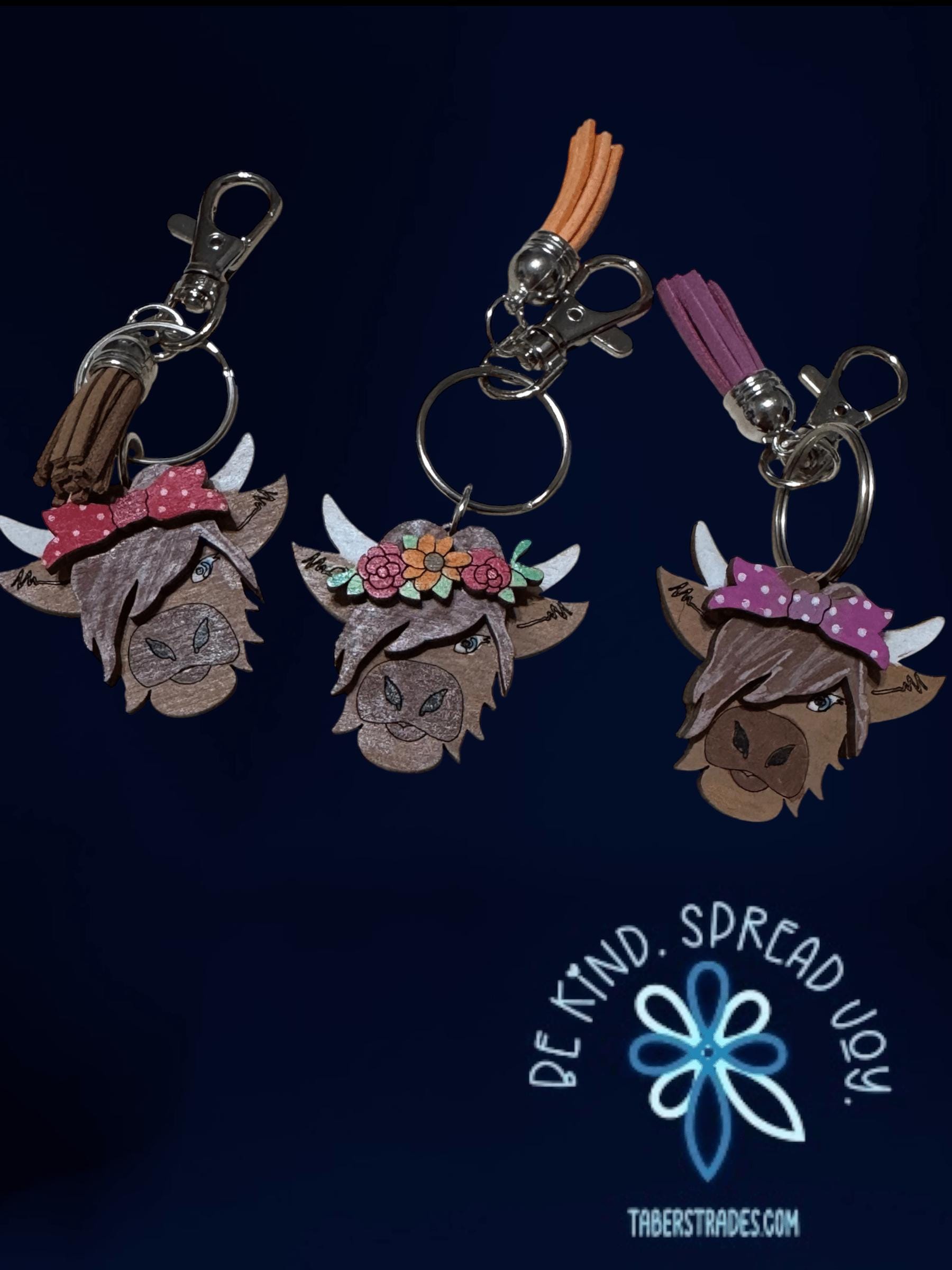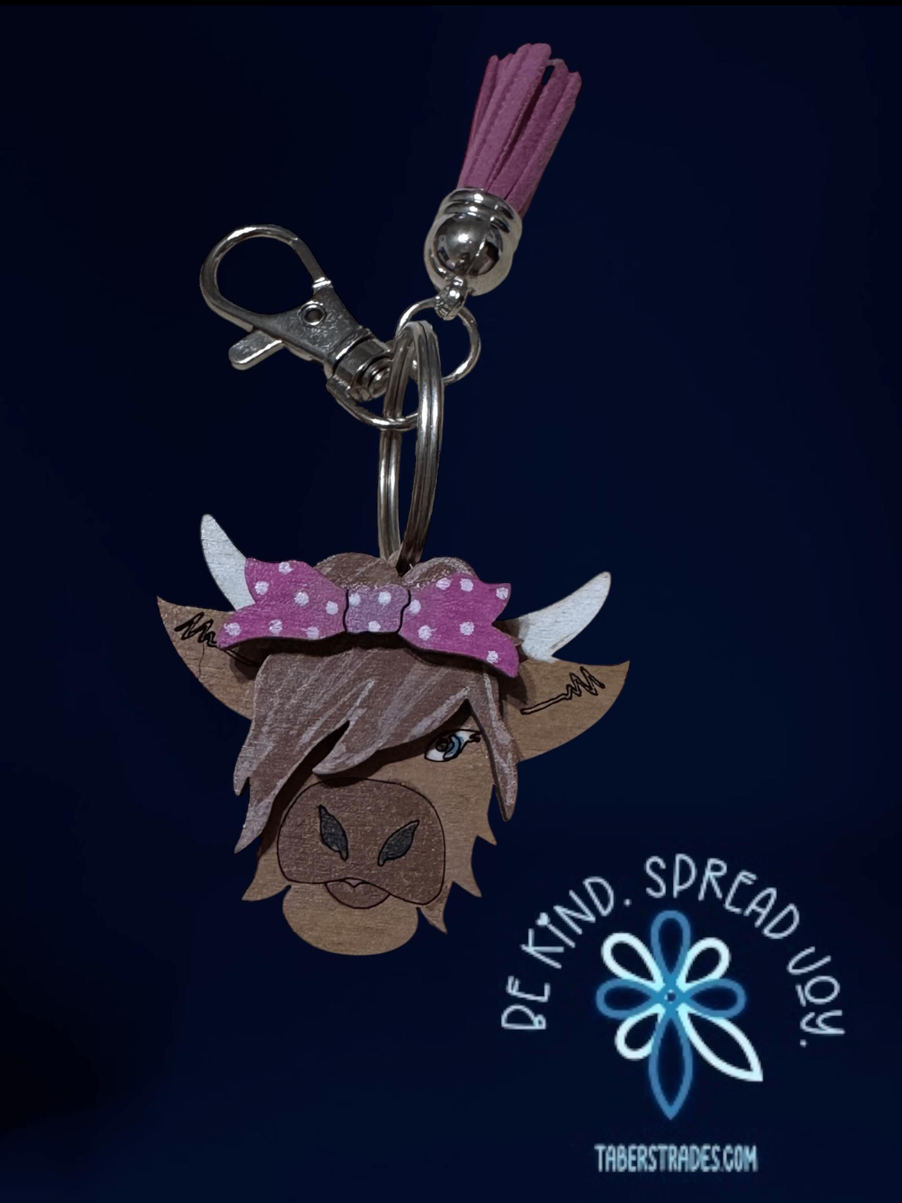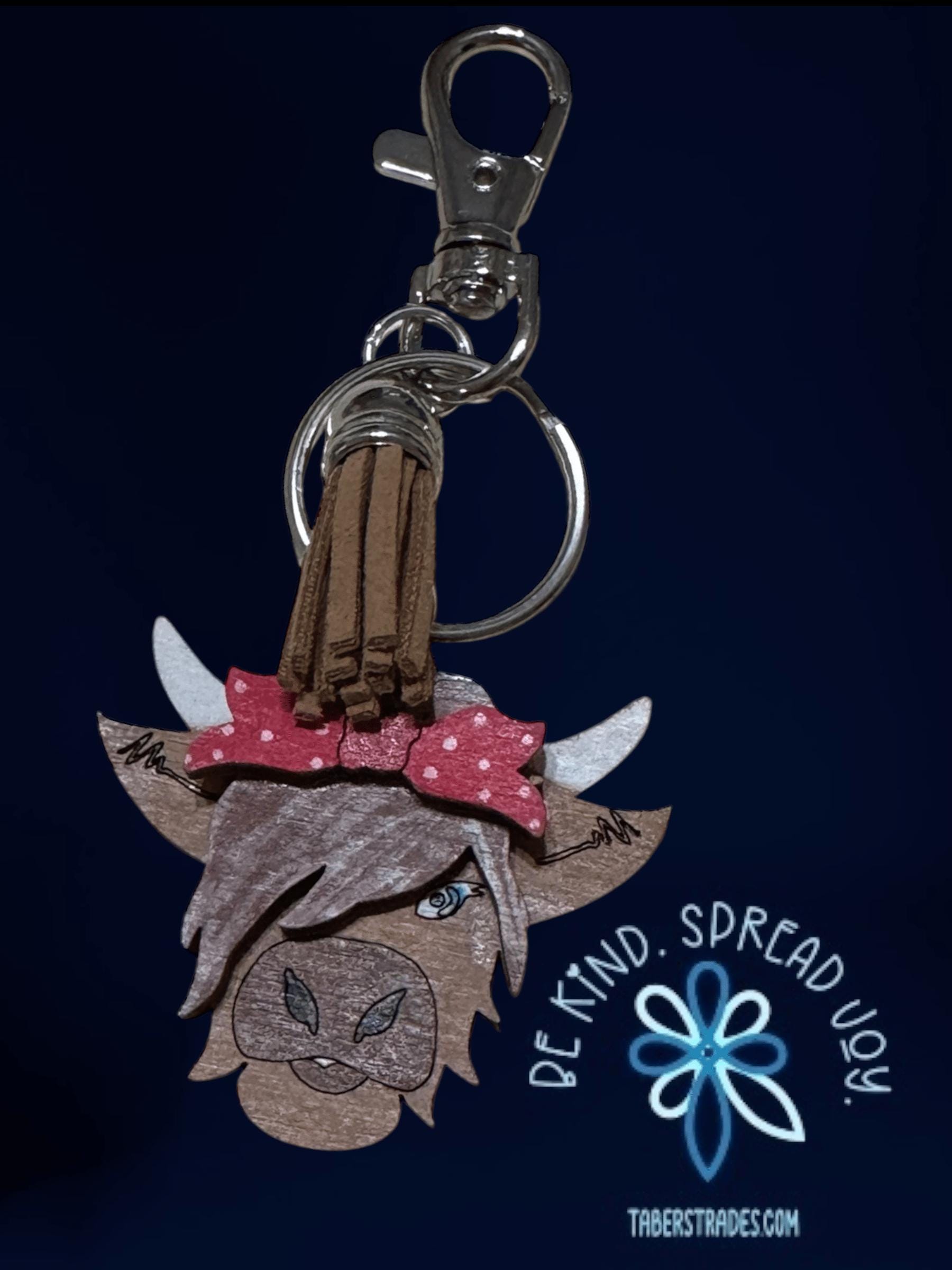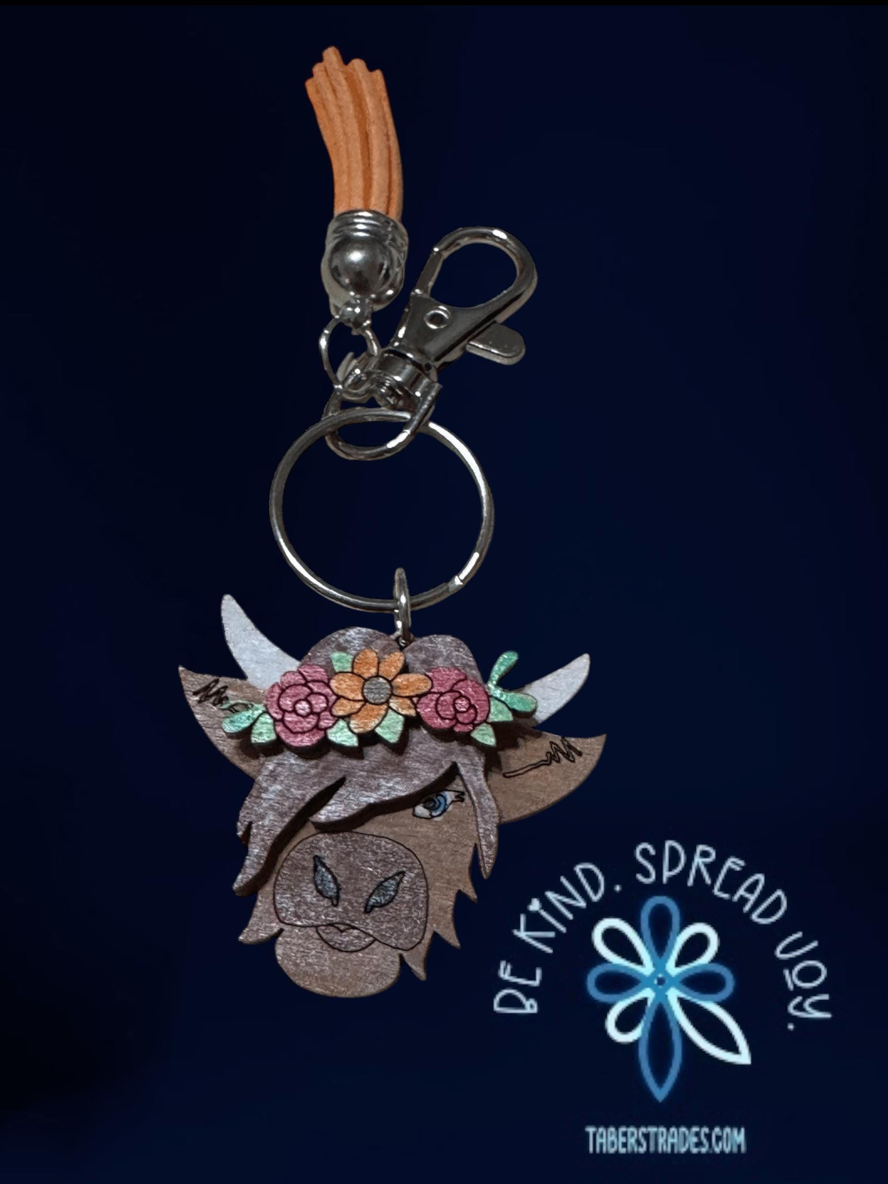 Carry a touch of rustic charm wherever you go with this Highland Cow Keychain. Crafted with attention to detail, it serves as a sturdy and stylish way to keep your keys organized. Its unique design makes it easy to find and a delightful conversation starter, perfect for showing your love for these iconic Scottish animals.
