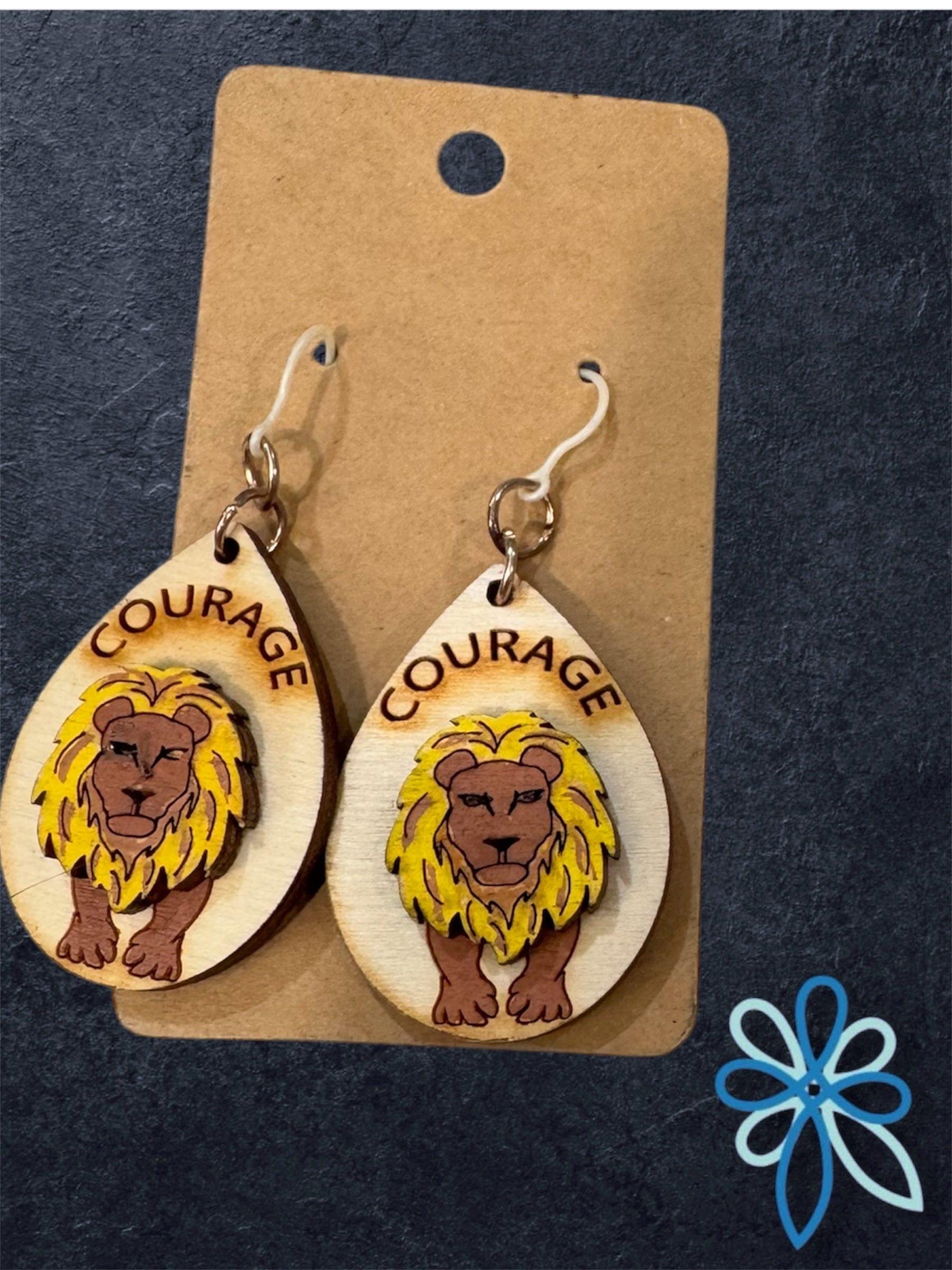 These lion earrings, engraved with the word "courage," serve as a powerful reminder to embrace strength and bravery every day. Crafted with attention to detail, they combine bold design with meaningful symbolism, making them a thoughtful gift or personal talisman to inspire confidence and resilience. Available in multiple options to suit your style.