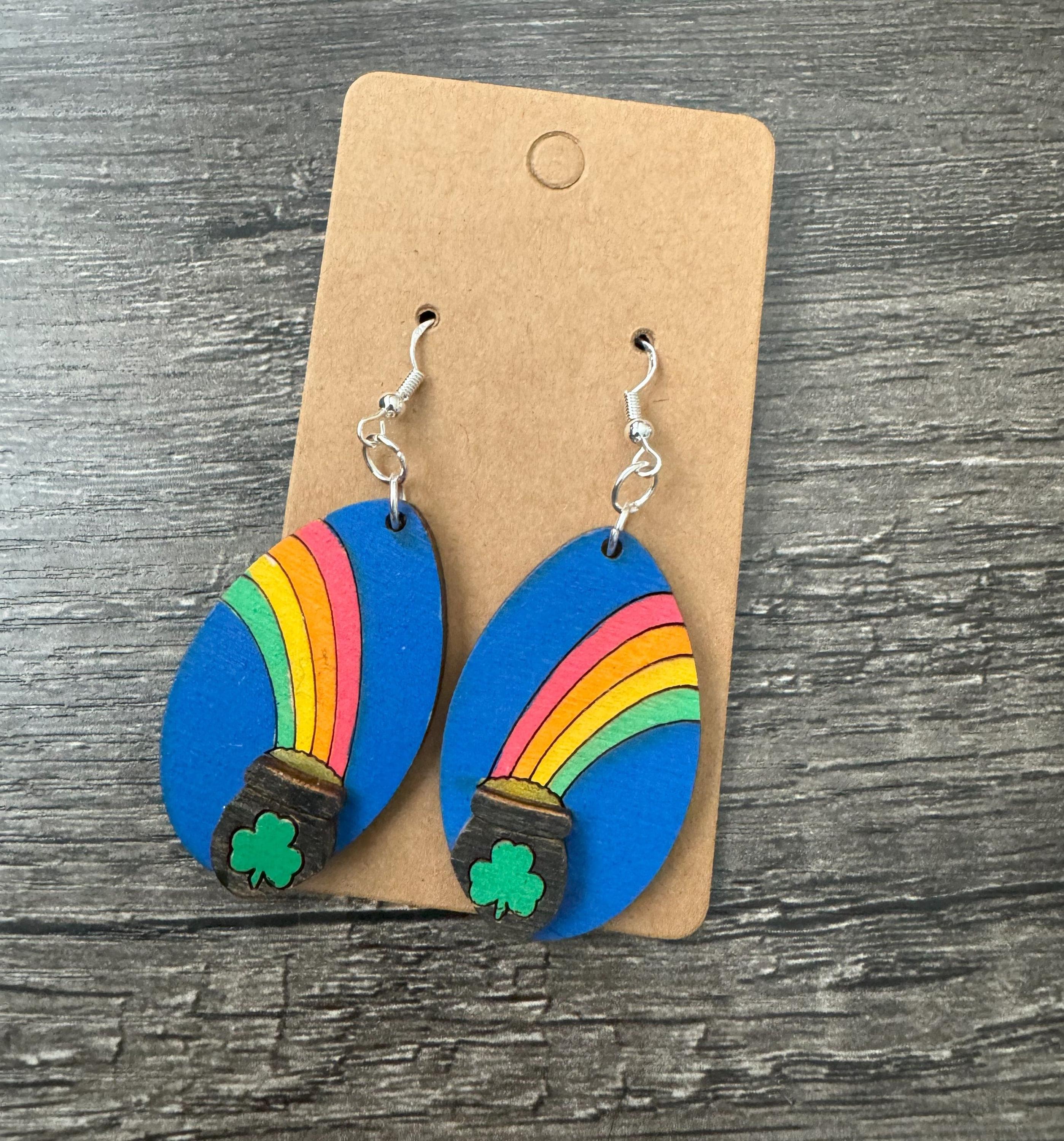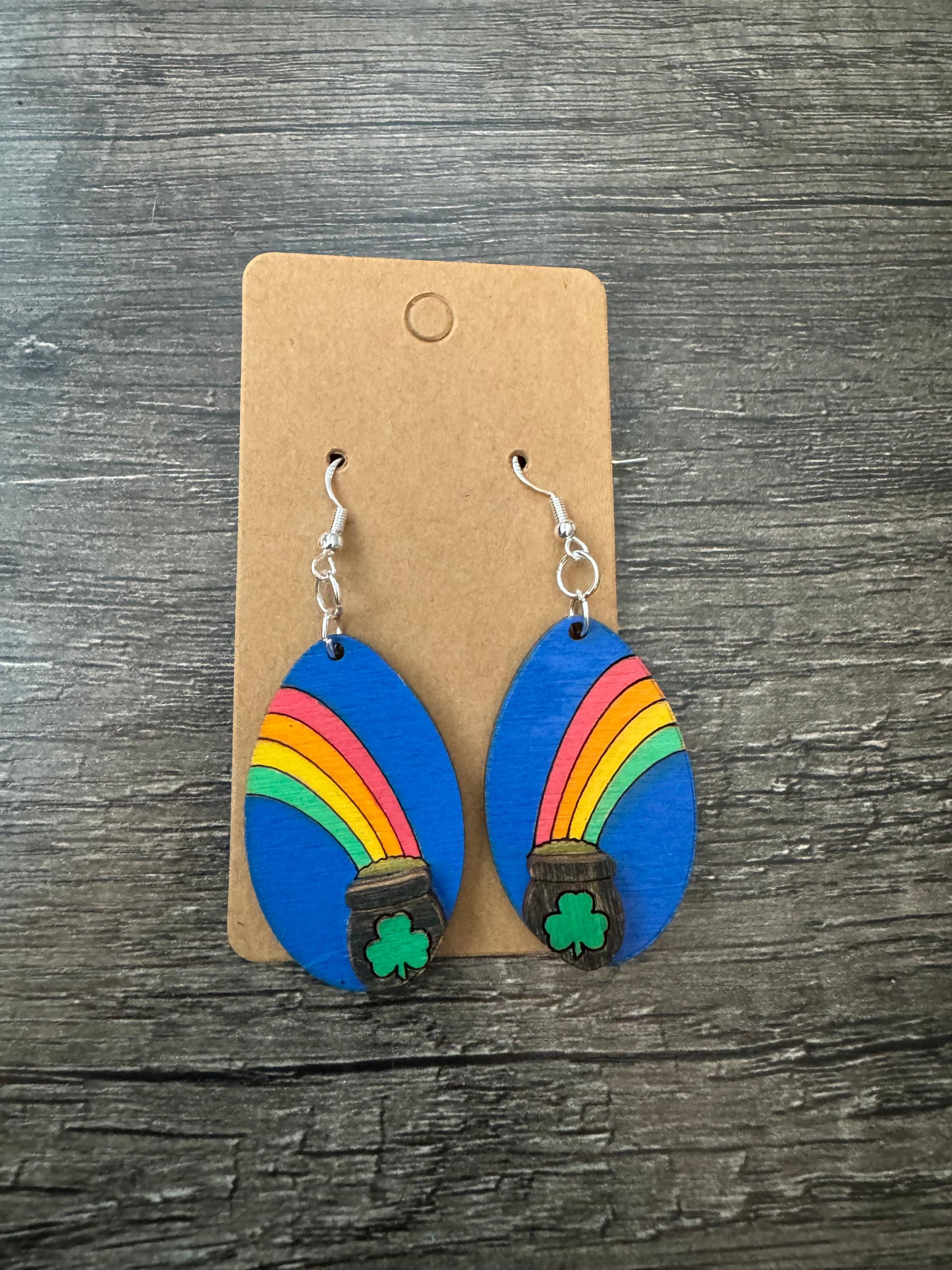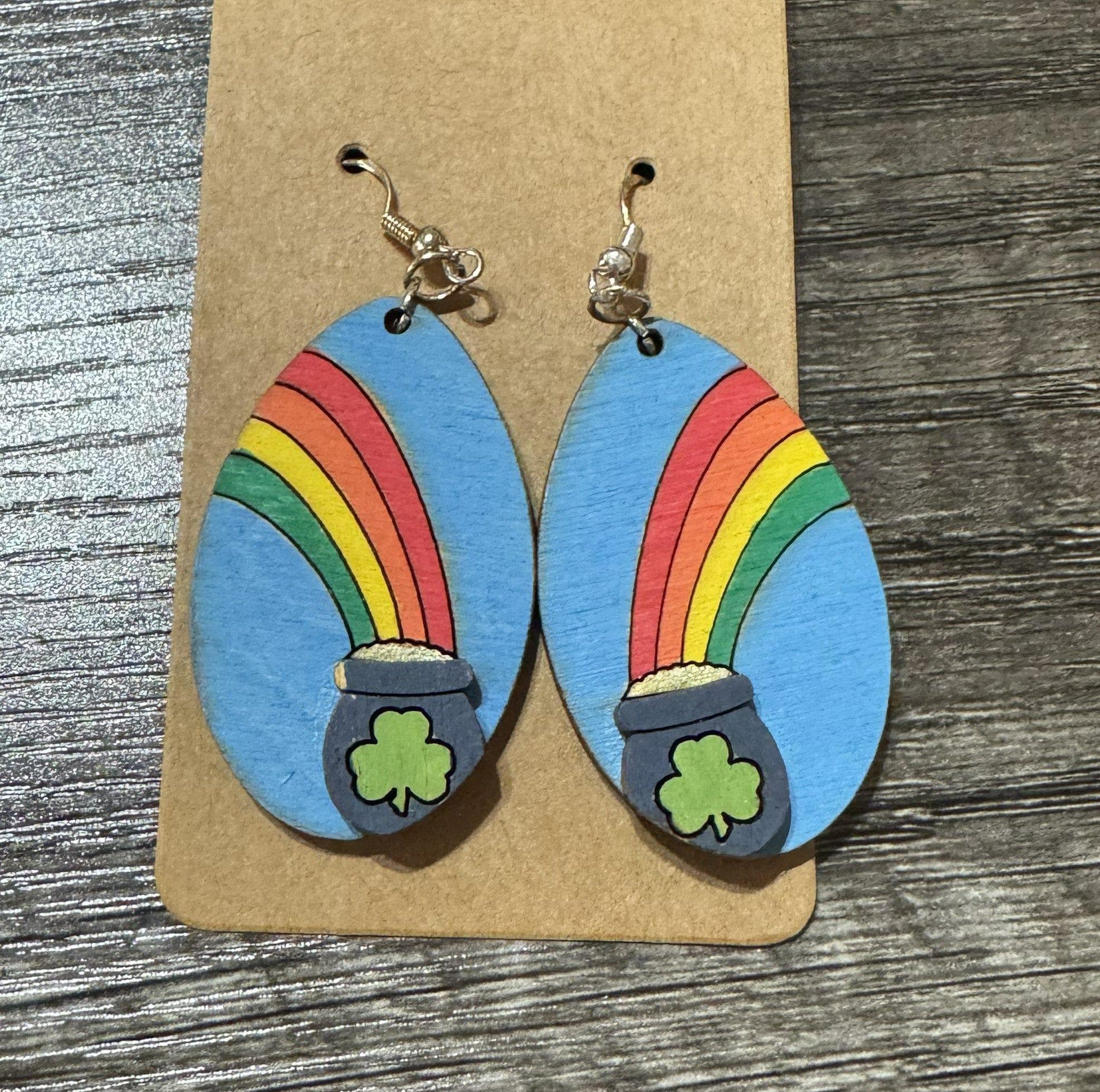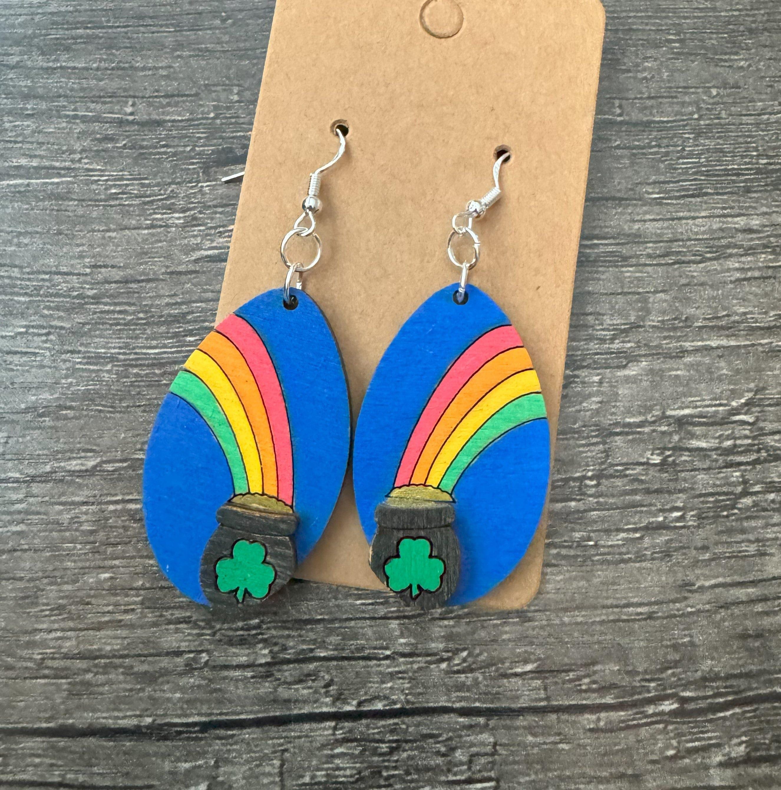 These oval-shaped earrings capture the magic of St. Patrick’s Day with a colorful rainbow design that arches gracefully into a charming pot of gold. Lightweight and vibrant, they add a festive and joyful touch to your outfit, perfect for celebrating Irish heritage or brightening any day with a bit of luck and color.