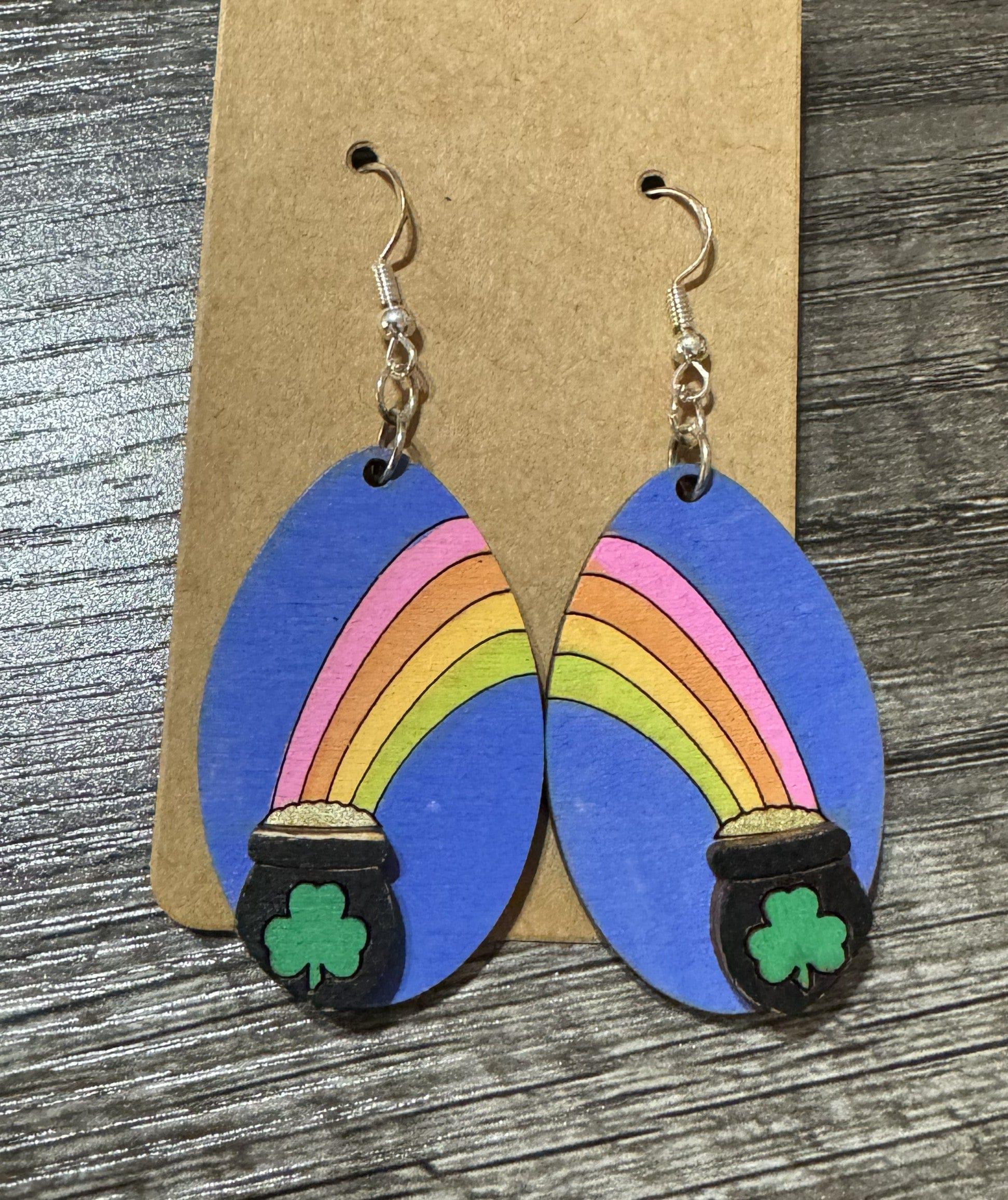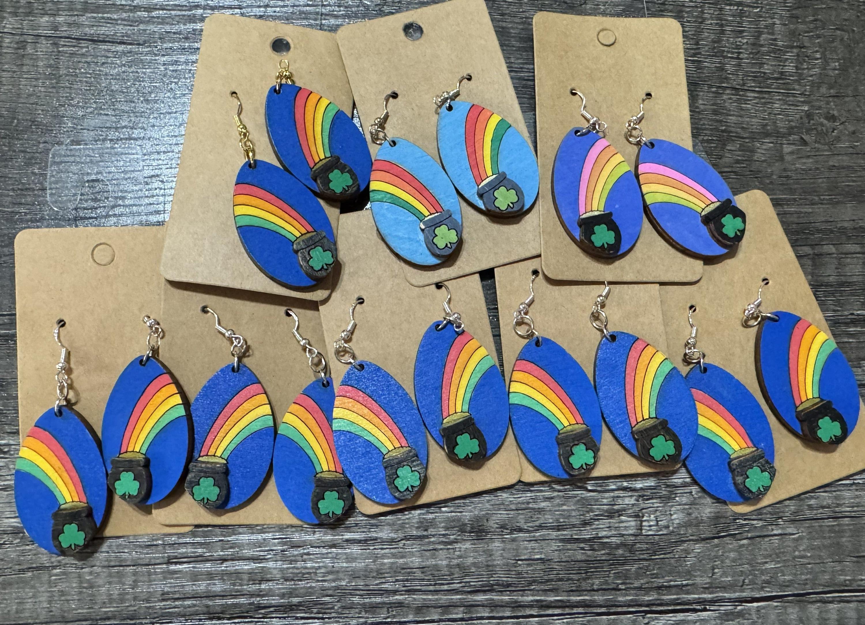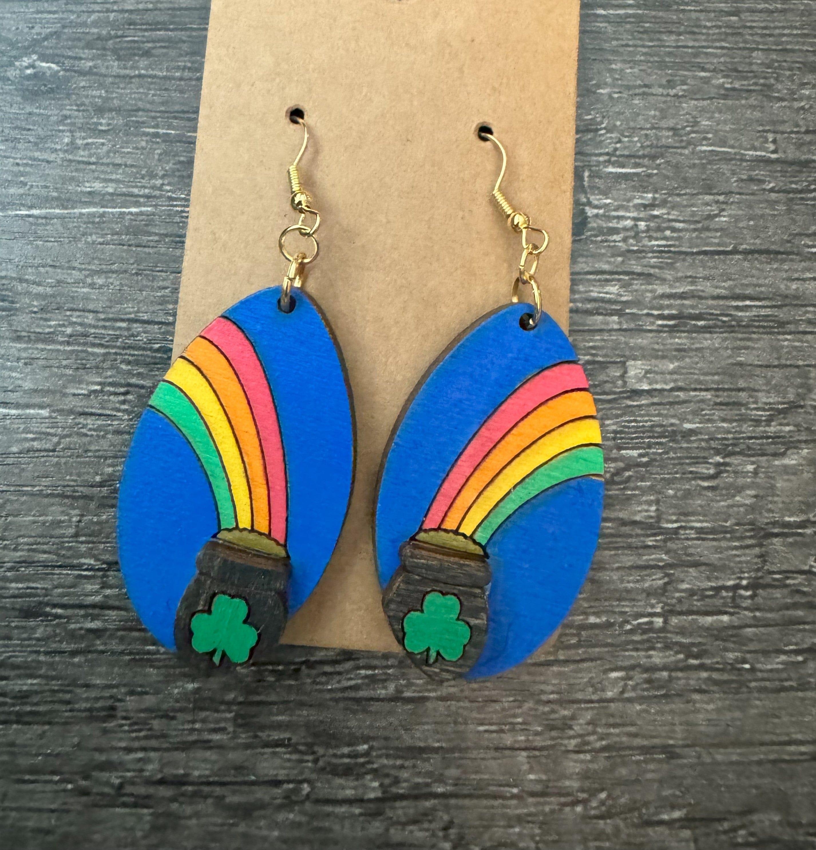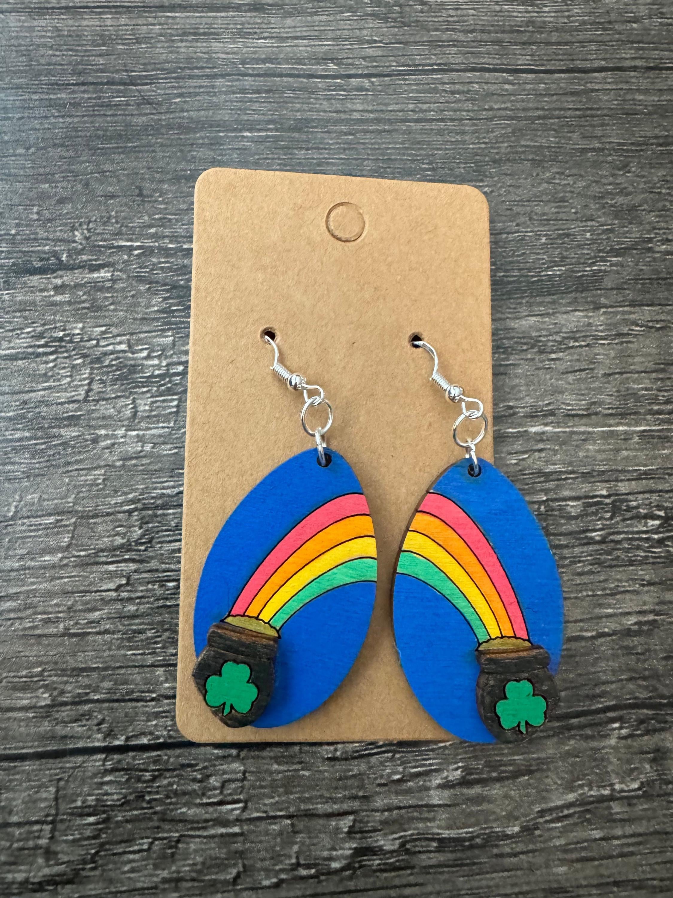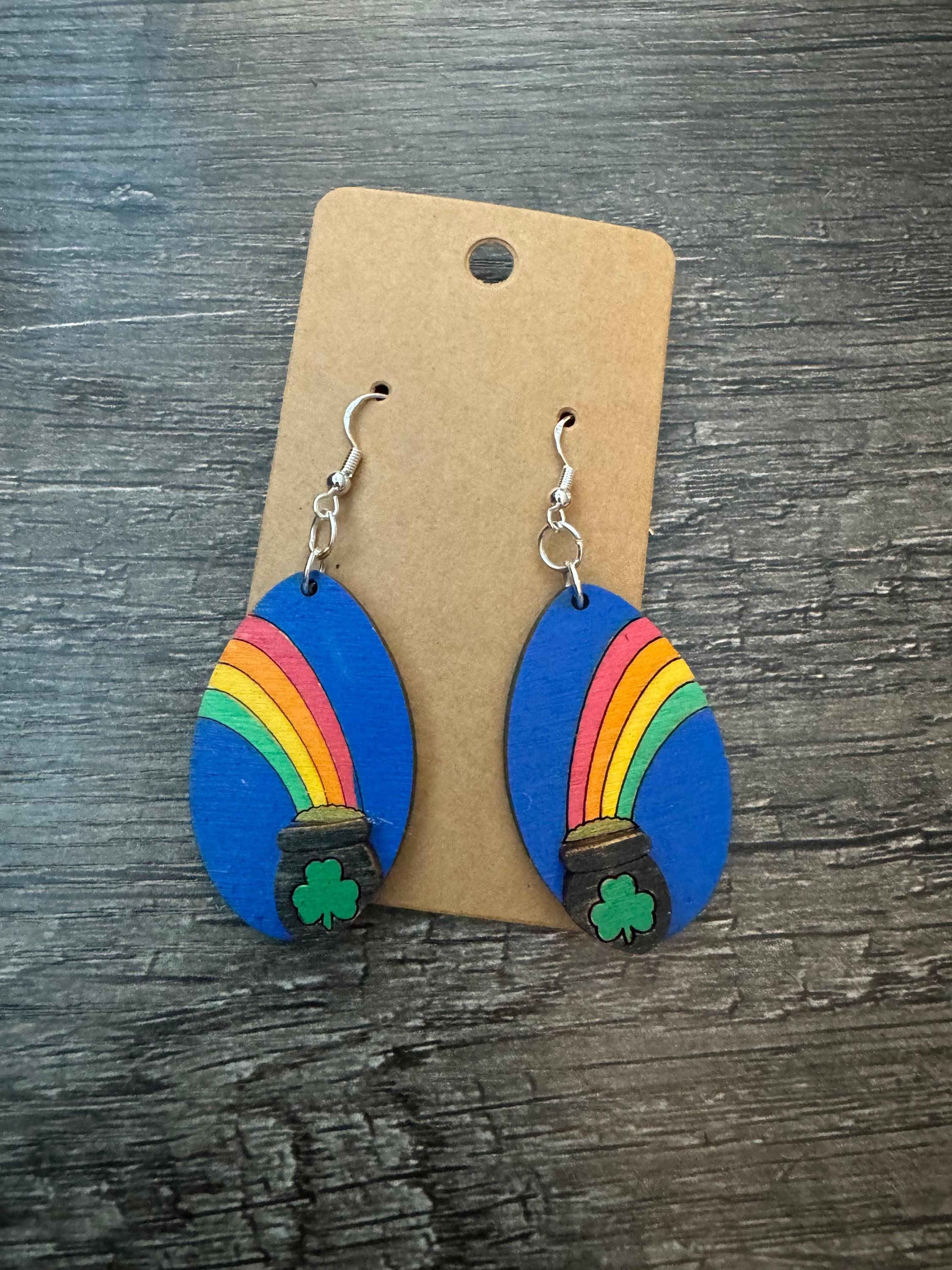 These oval-shaped earrings capture the magic of St. Patrick’s Day with a colorful rainbow design that arches gracefully into a charming pot of gold. Lightweight and vibrant, they add a festive and joyful touch to your outfit, perfect for celebrating Irish heritage or brightening any day with a bit of luck and color.