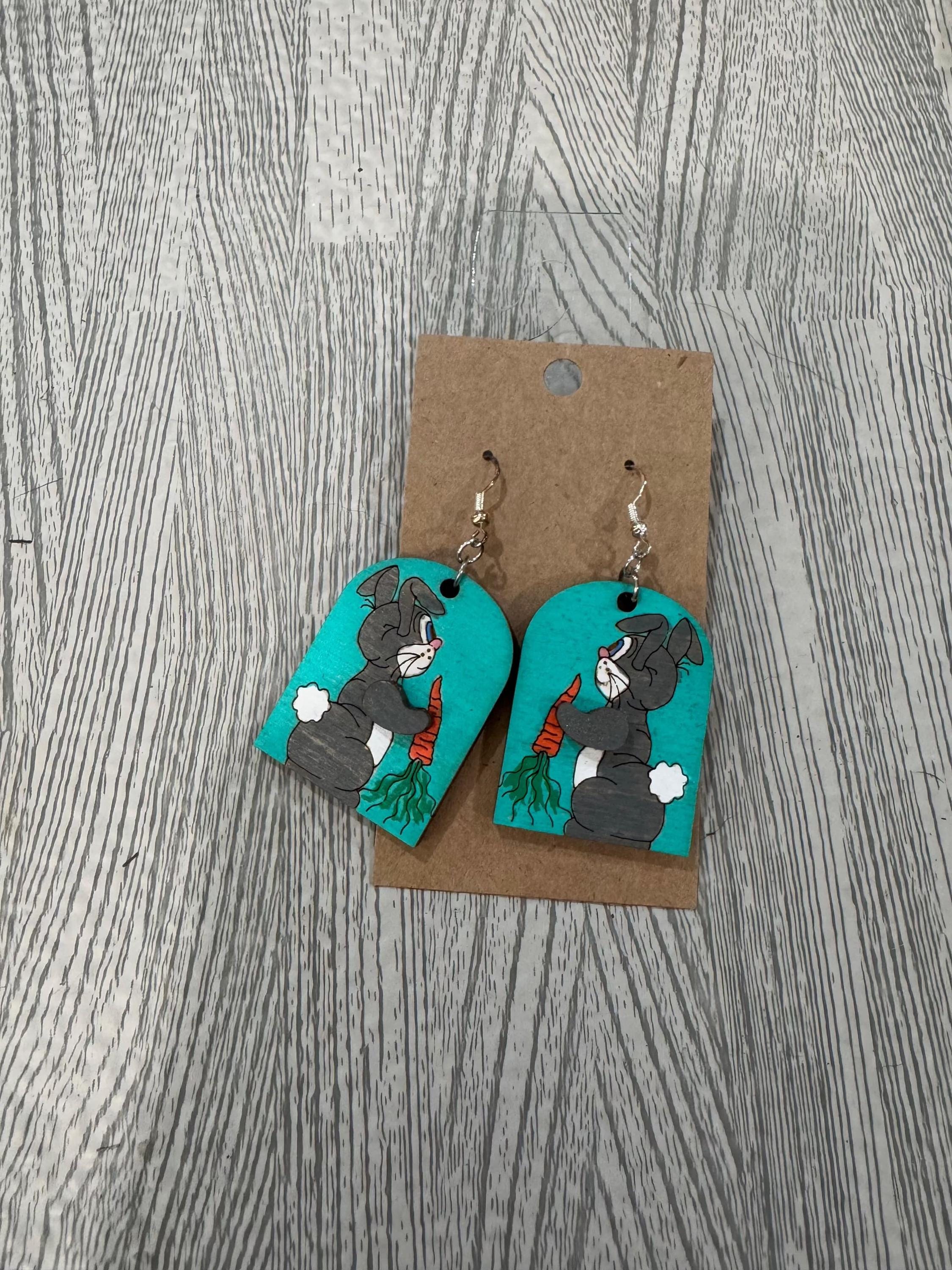 These hand-painted wood earrings showcase a charming rabbit design, adding a delicate and natural touch to your style. Lightweight and carefully crafted, they provide comfortable wear while highlighting your unique personality. Perfect for those who appreciate artisanal accessories with a gentle, whimsical feel.
