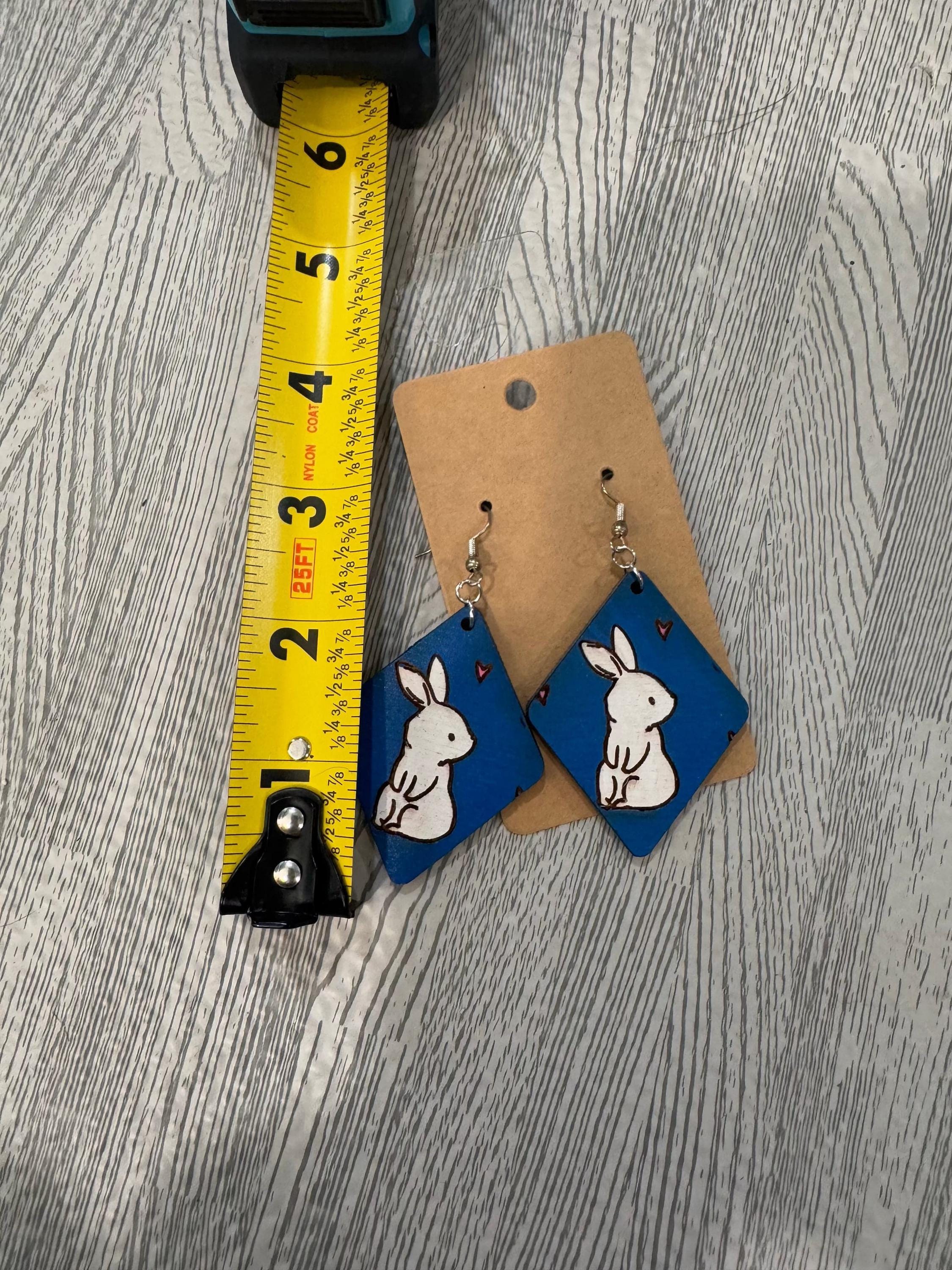 These hand-painted wood earrings showcase a charming white rabbit design, adding a delicate and natural touch to your style. Lightweight and carefully crafted, they provide comfortable wear while highlighting your unique personality. Perfect for those who appreciate artisanal accessories with a gentle, whimsical feel.