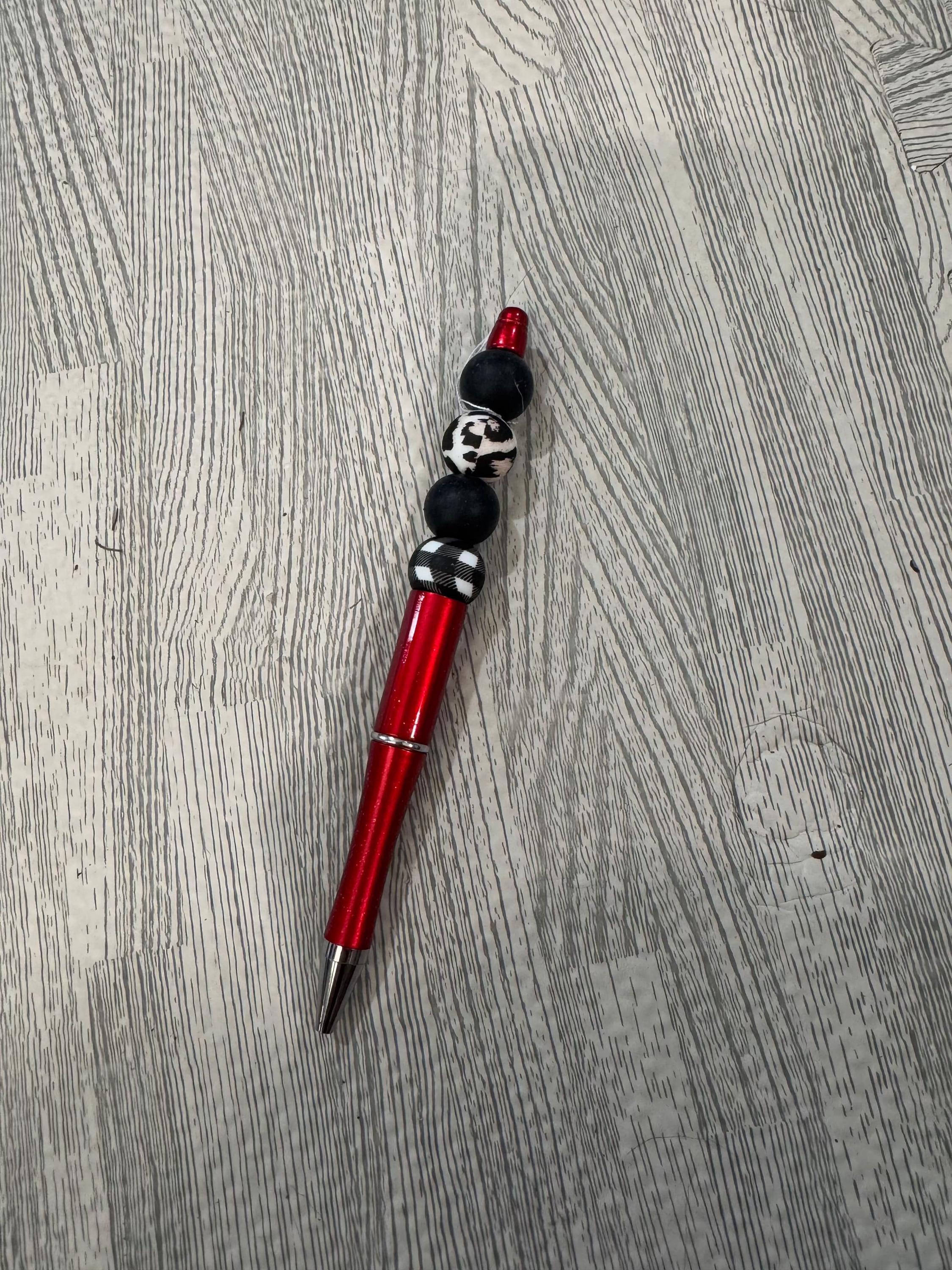 Add a touch of style and personality to your writing with these Red, White, and Black Beaded Pens. Designed with a striking color scheme, each pen offers a comfortable grip and smooth ink flow, making everyday writing tasks more enjoyable. Choose from several options to find the perfect pen that suits your style while helping you stay organized and inspired.