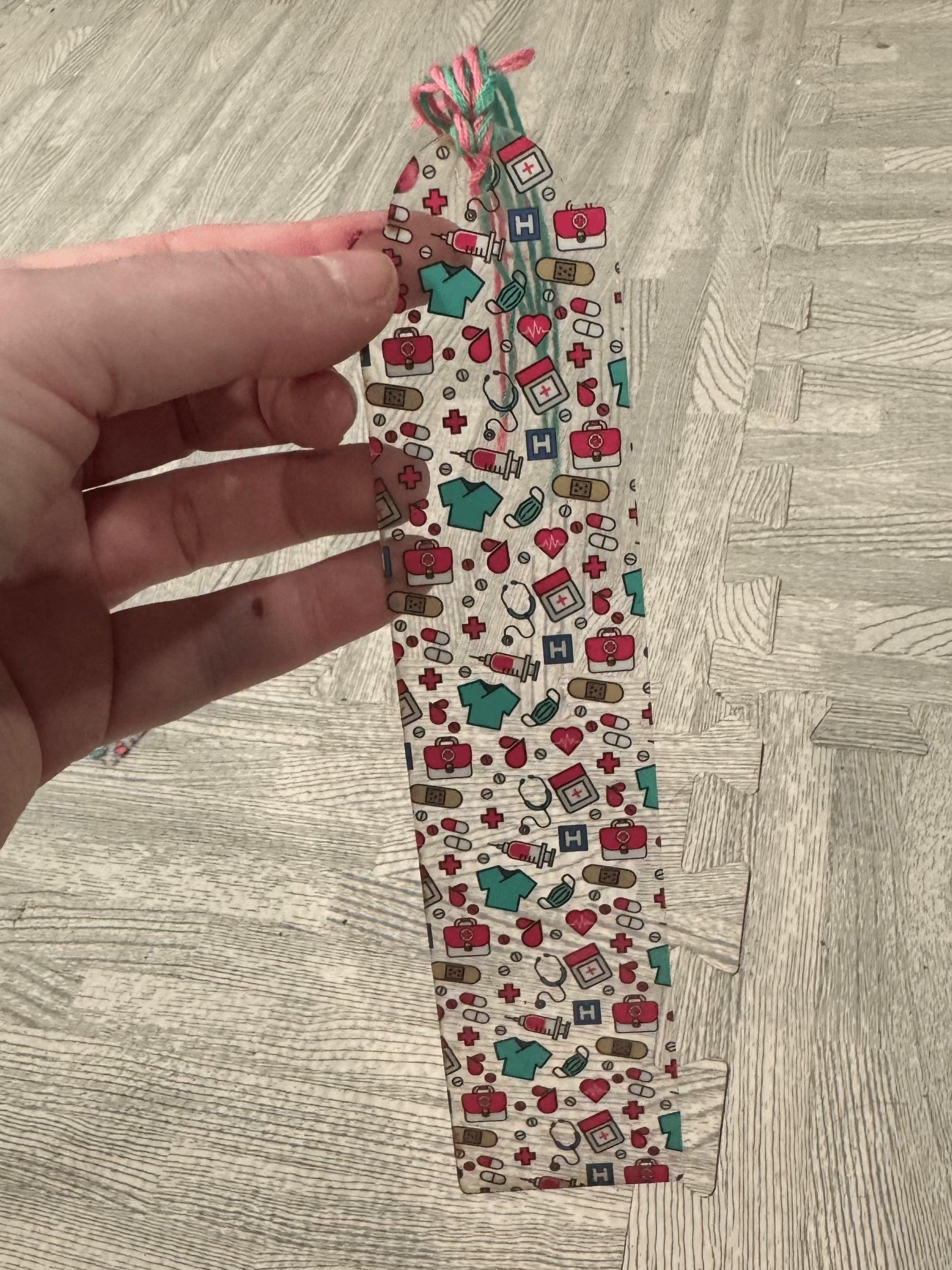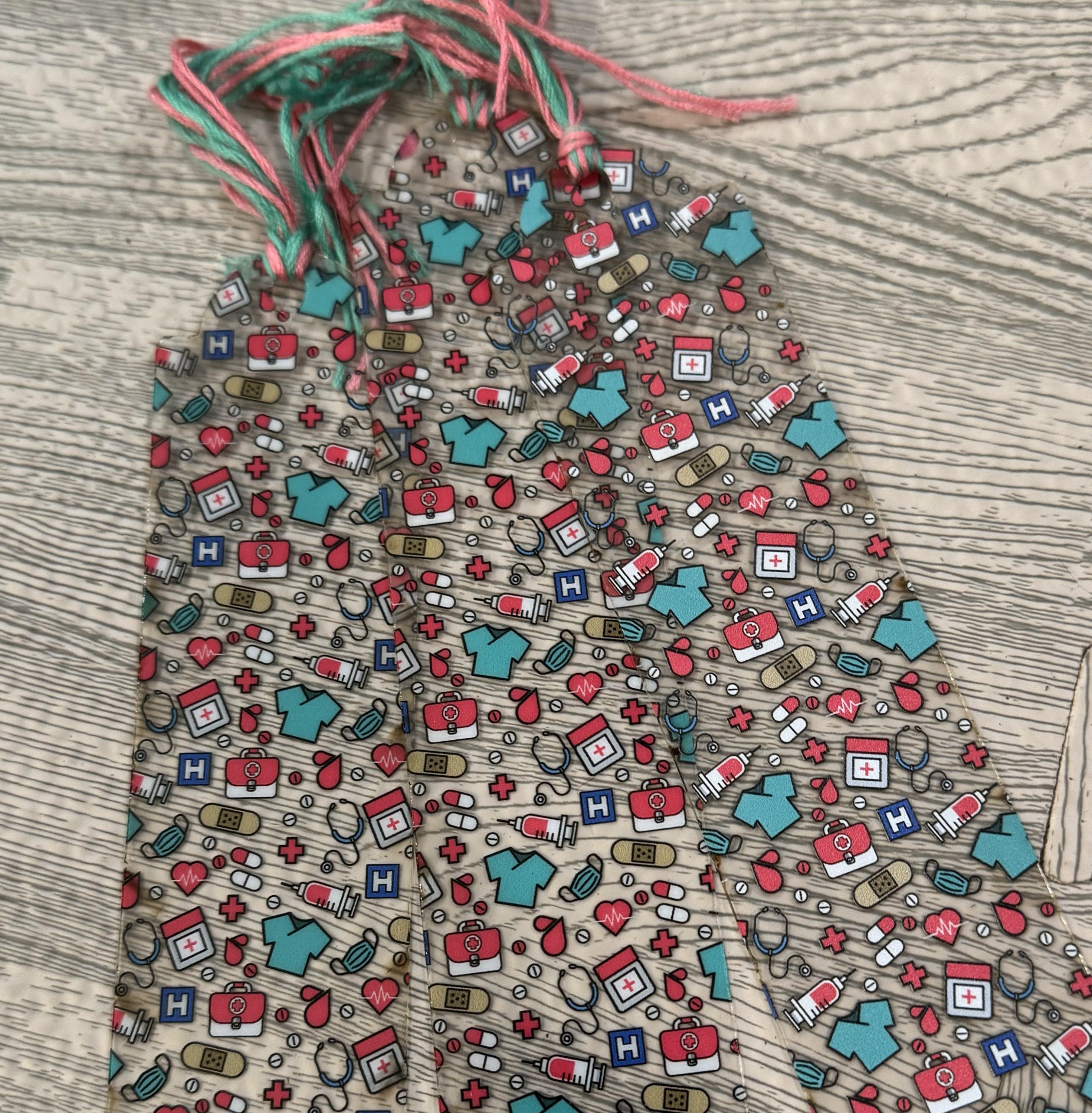 Keep your place in any book with this clear nurse-themed bookmark, featuring a calming turquoise and pink print. Thoughtfully designed for nurses and caregiving professionals, it’s a small reminder of your important work every time you read. Durable and lightweight, it blends practicality with heartfelt support for those who care.
