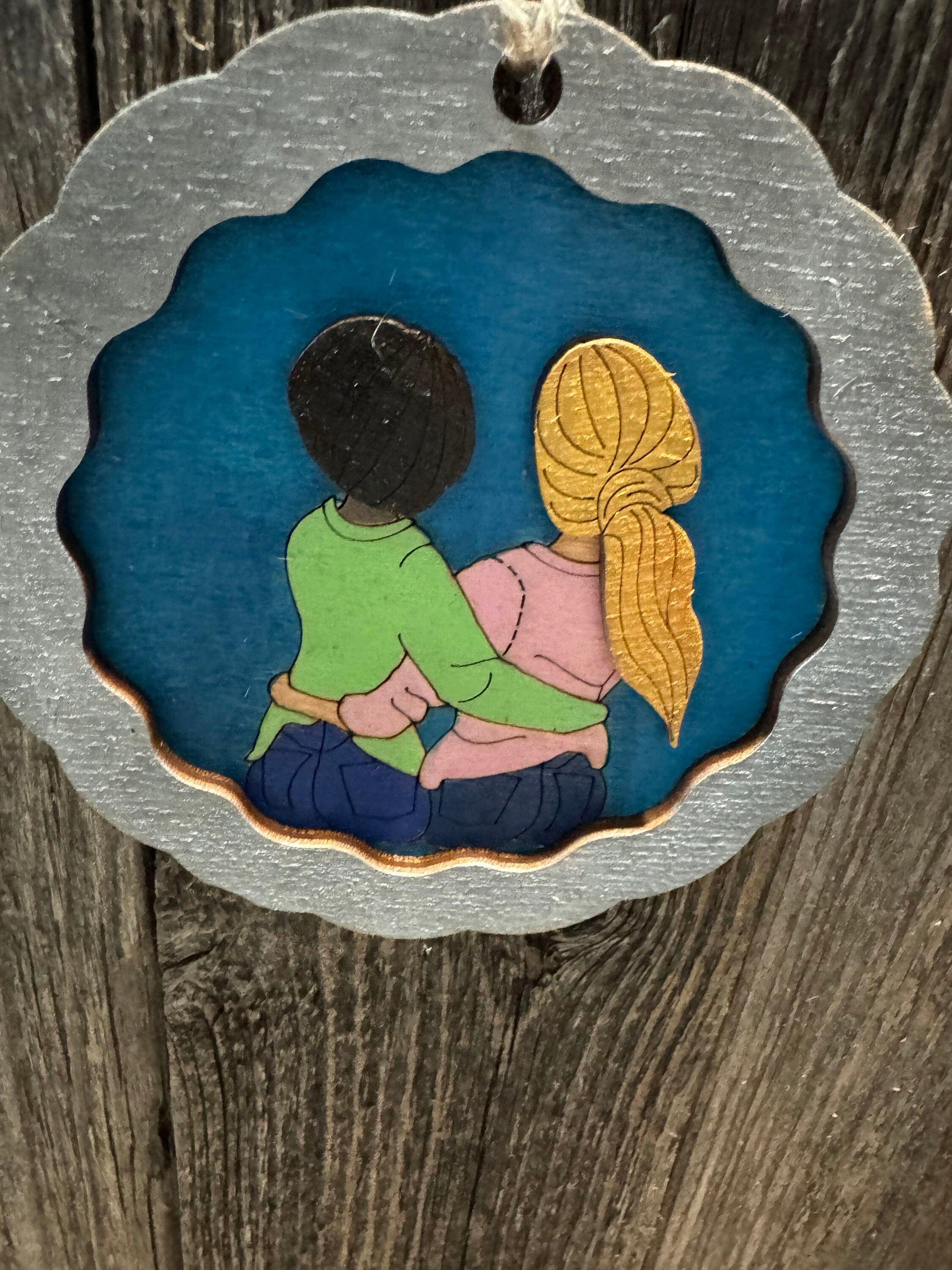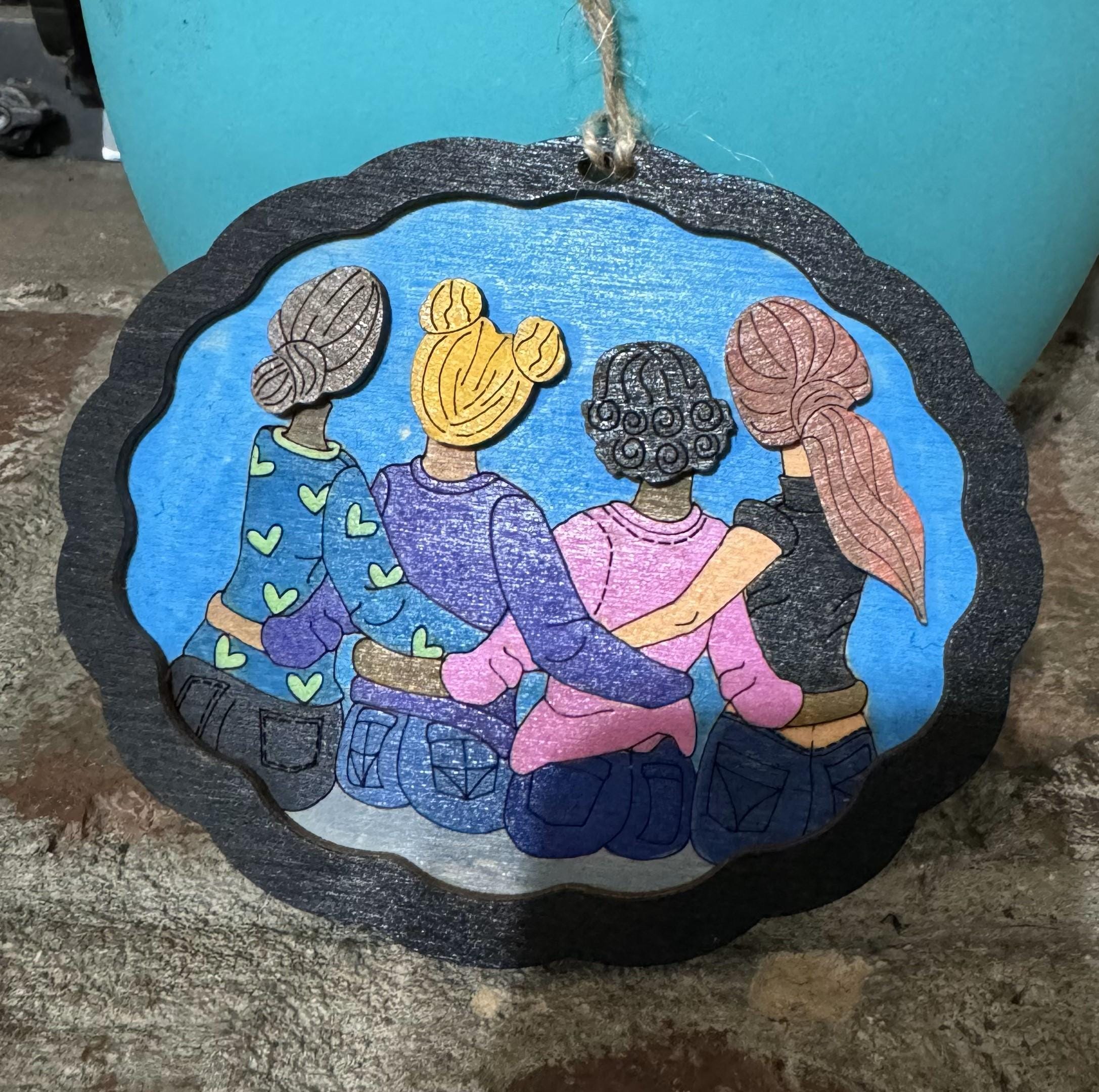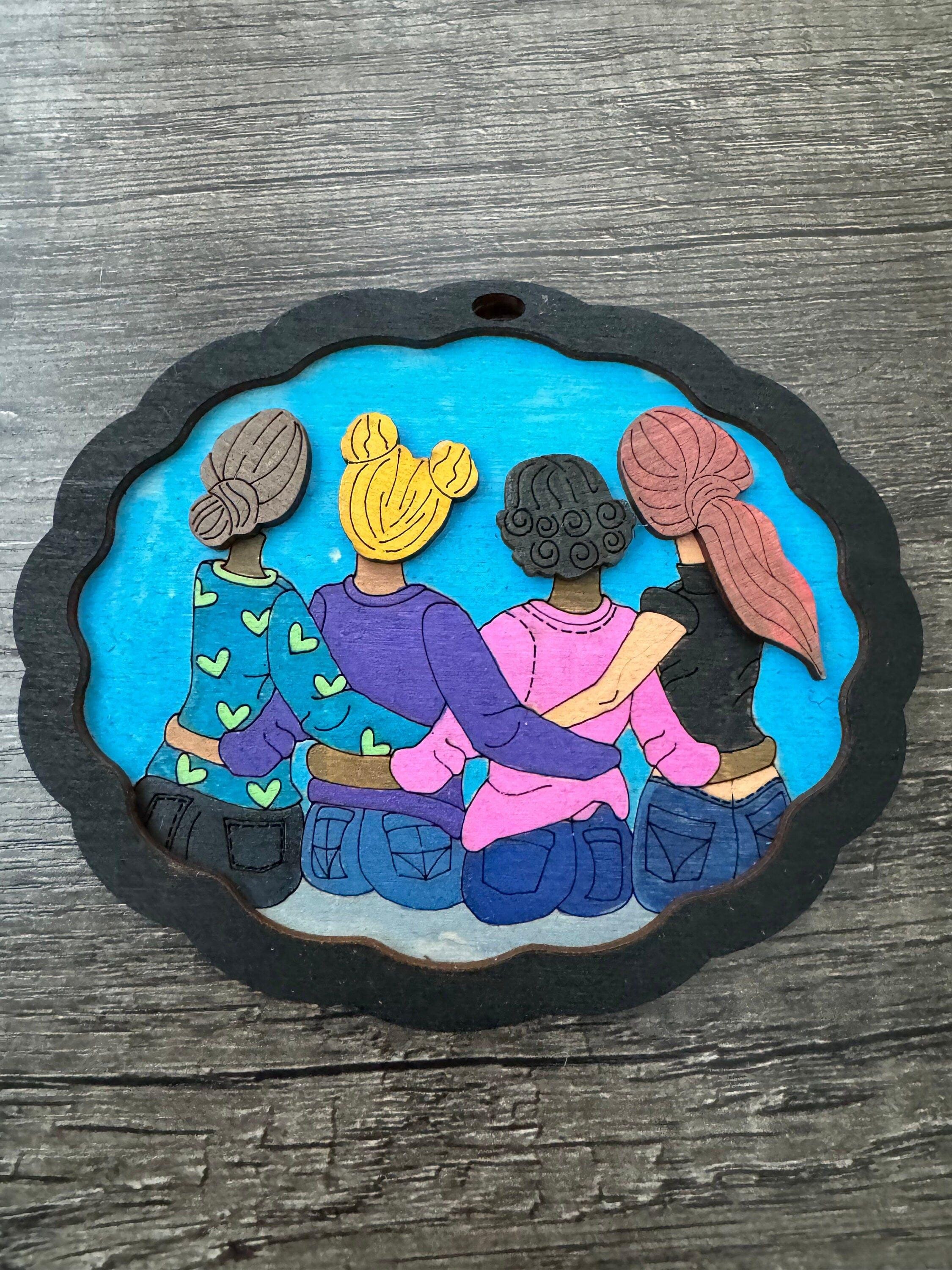 Celebrate your friendship with the Best Friends Customizable Ornament. Personalize it by selecting two to four friends, each with unique hairstyles and colors that reflect your bond. Choose your preferred primary background color and a contrasting secondary border color to create a one-of-a-kind keepsake. This ornament is a heartfelt way to honor your friends and make your holiday décor truly special.