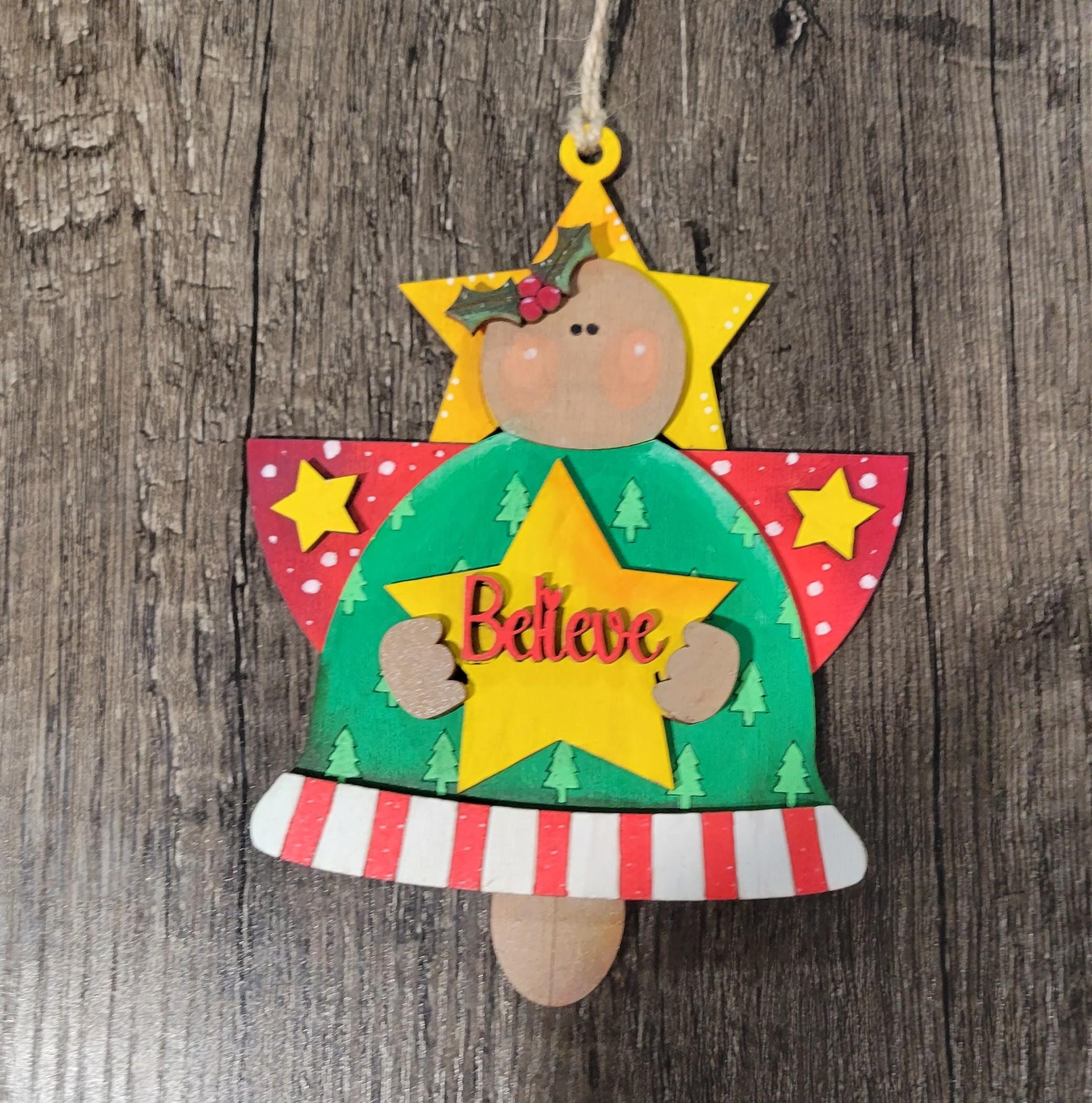 Spread holiday cheer with these heartfelt angel ornaments, each designed to inspire and uplift. Choose from three meaningful designs: a tree adorned with "Merry and Bright" to celebrate the season's joy, a gingerbread man with a heart featuring "Joy" for warmth and togetherness, or a shining star proclaiming "Believe" to encourage hope. Perfect for decorating your tree, gifting to loved ones, or creating cherished memories. In stock now, with custom order options available to make your holidays truly special.