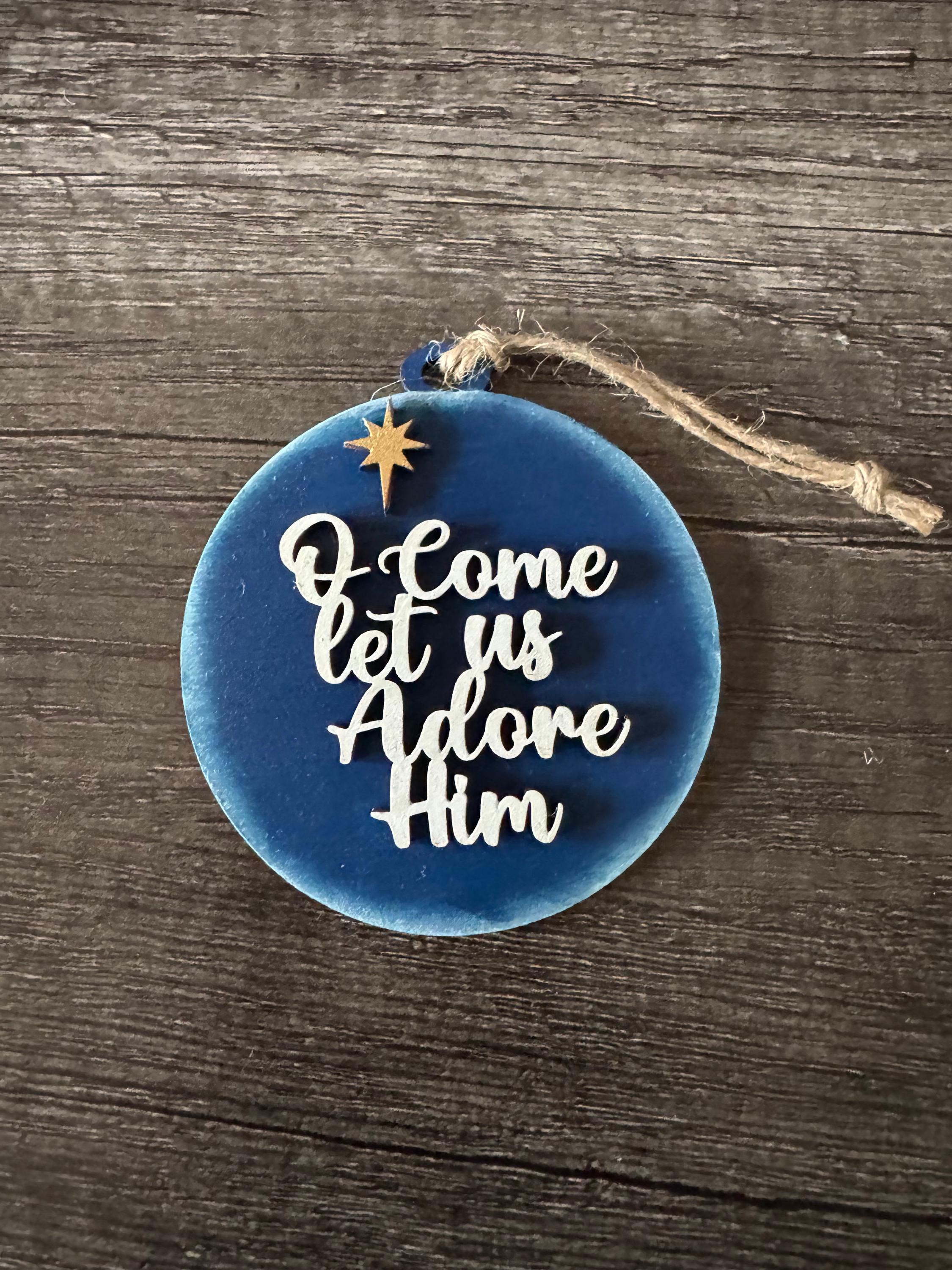 Celebrate the season with our diverse collection of nativity and religious ornaments. Each piece features meaningful words and phrases that capture the spirit of faith and tradition. Whether you're looking for a ready-to-ship design from our current inventory or dreaming of a personalized creation, we've got you covered. Our in-stock selections are perfect for last-minute gift-giving, while custom orders allow you to add a unique, heartfelt touch to your holiday décor. Find the perfect ornament to honor your beliefs and cherish for years to come.