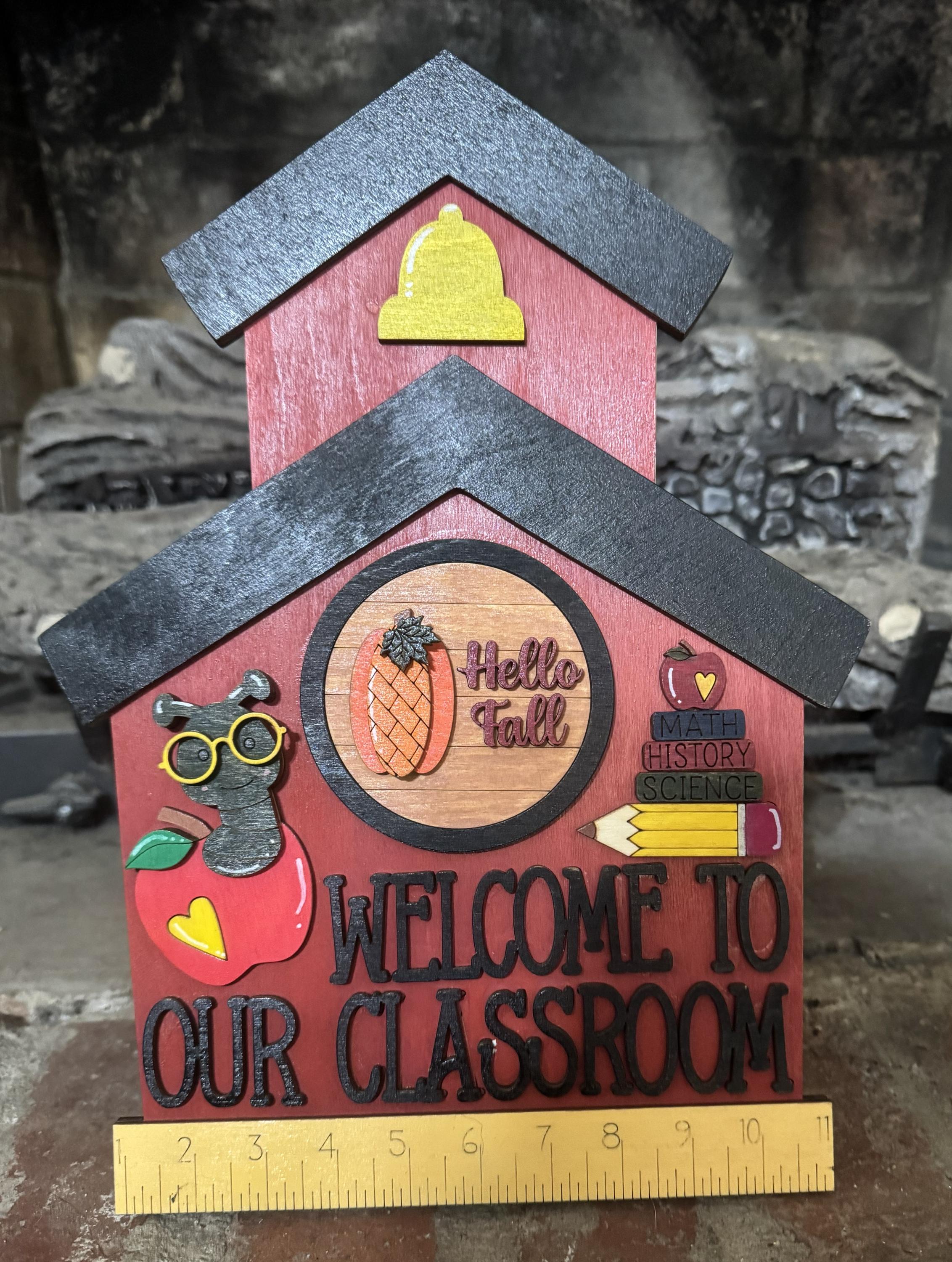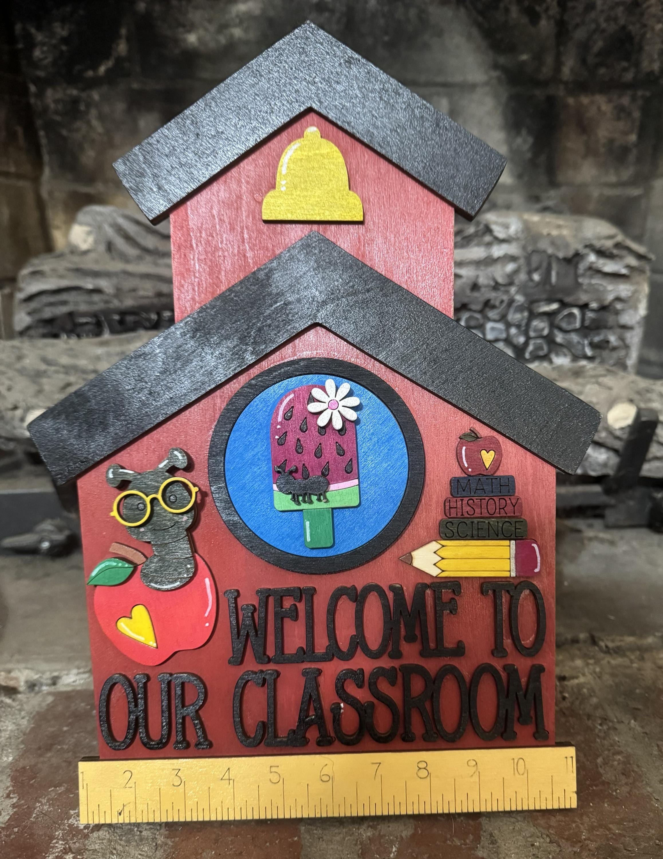 Welcome students with this charming handmade schoolhouse‑style sign — a cheerful, colorful piece perfect for classrooms, teacher desks, reading corners, or homeschool spaces. Featuring classic school imagery and a warm “Welcome to Our Classroom” message, it adds personality and positivity to any learning environment.