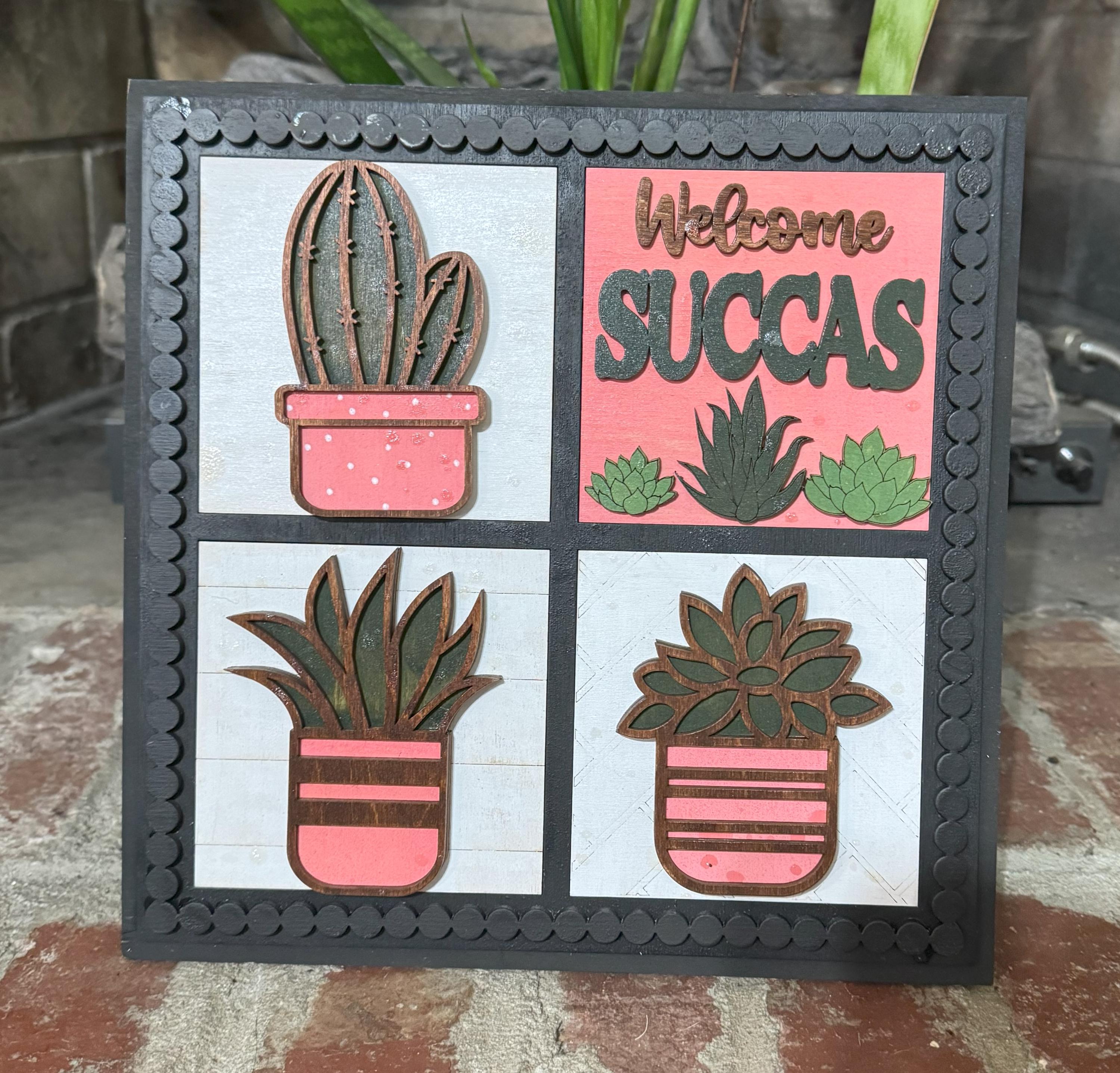 These mini art pieces make thoughtful gifts and brighten any room with their playful succulent and plant‑themed designs.