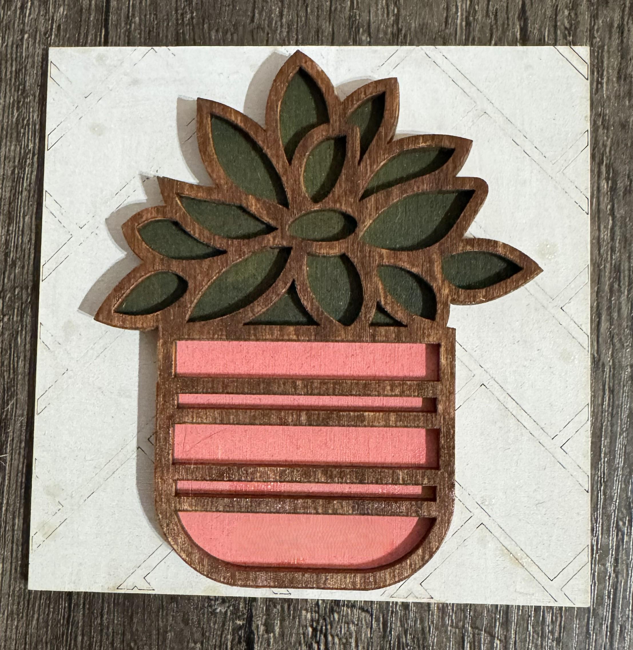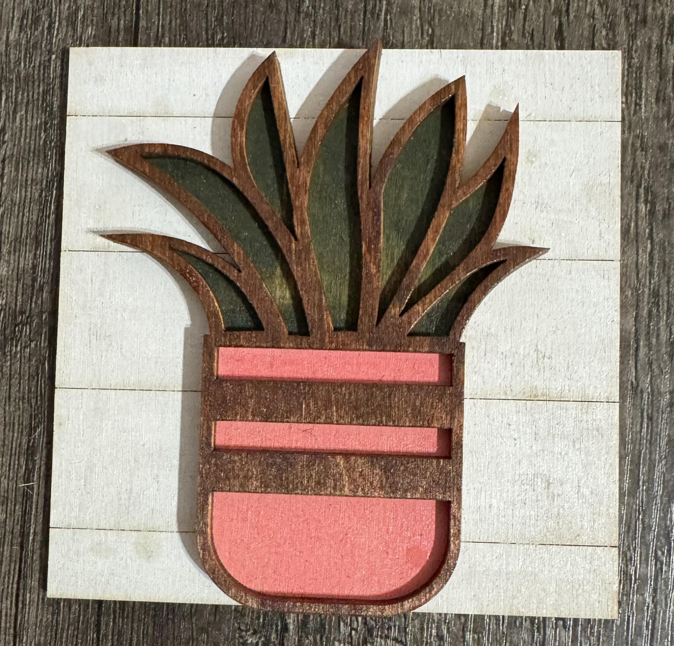 Add a pop of color and charm to your space with these 4.25-inch hand‑painted wooden tiles, perfect for plant lovers and home‑decor enthusiasts. Each tile is crafted by hand and features layered wood details for a dimensional, artisan look.