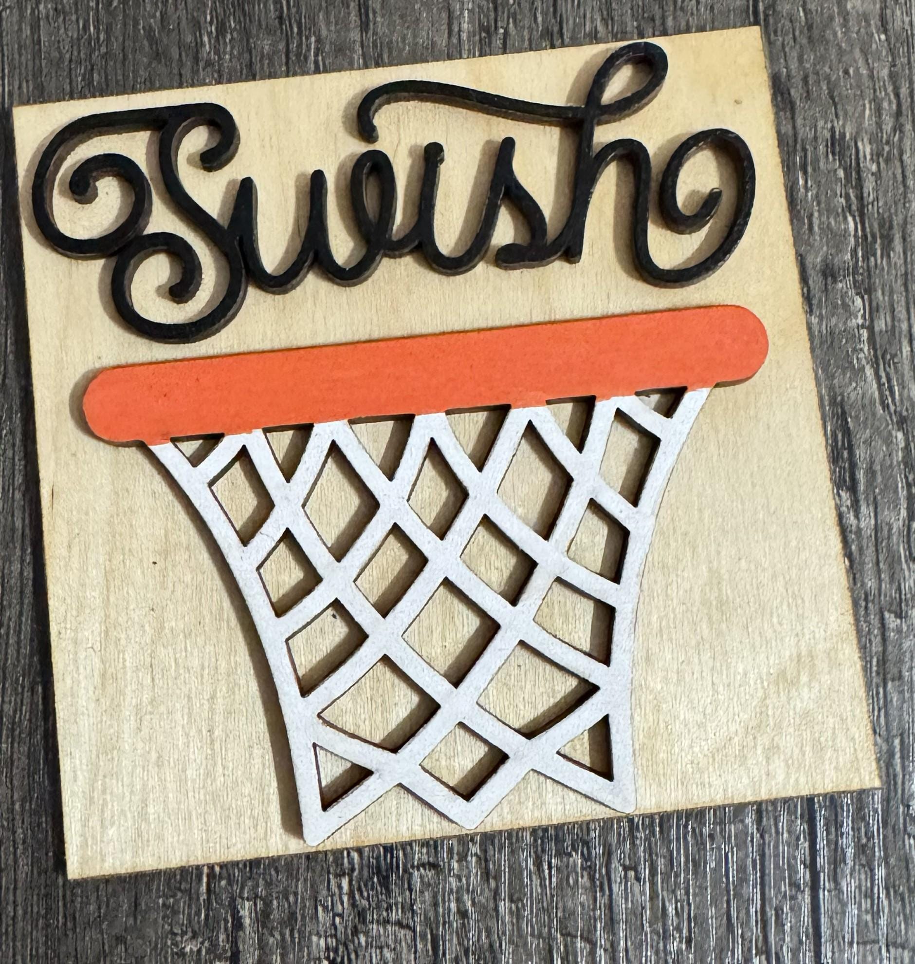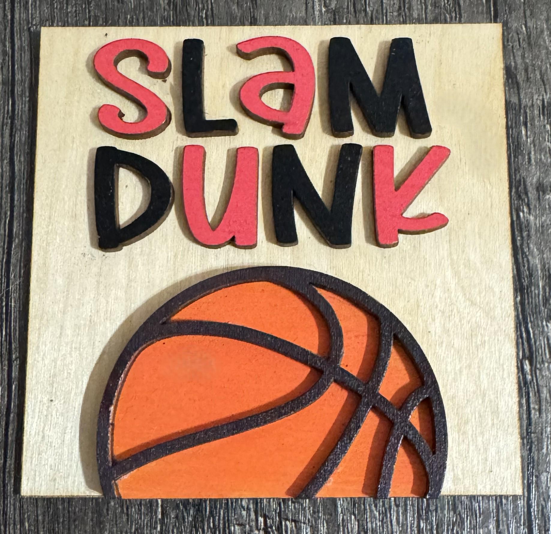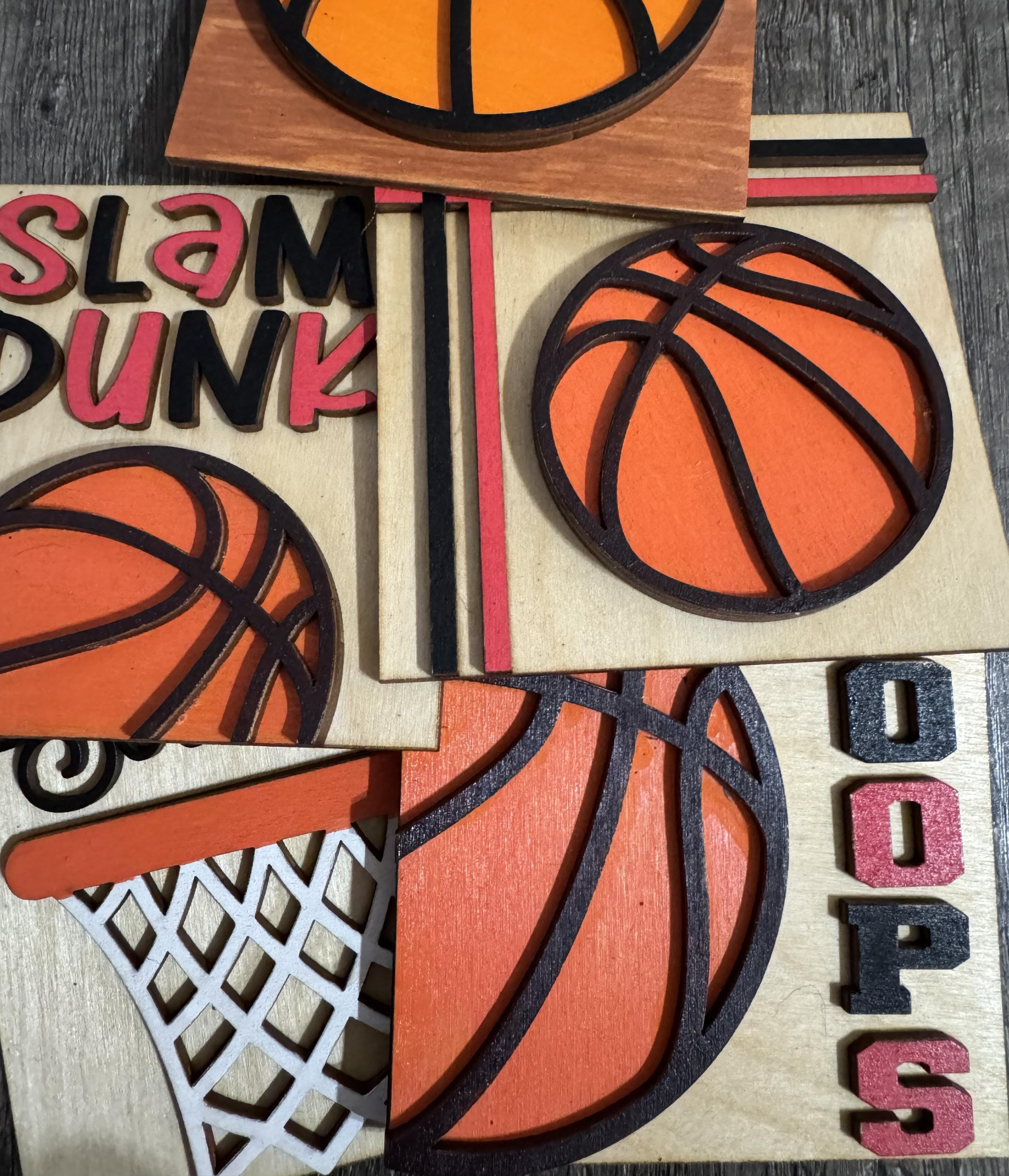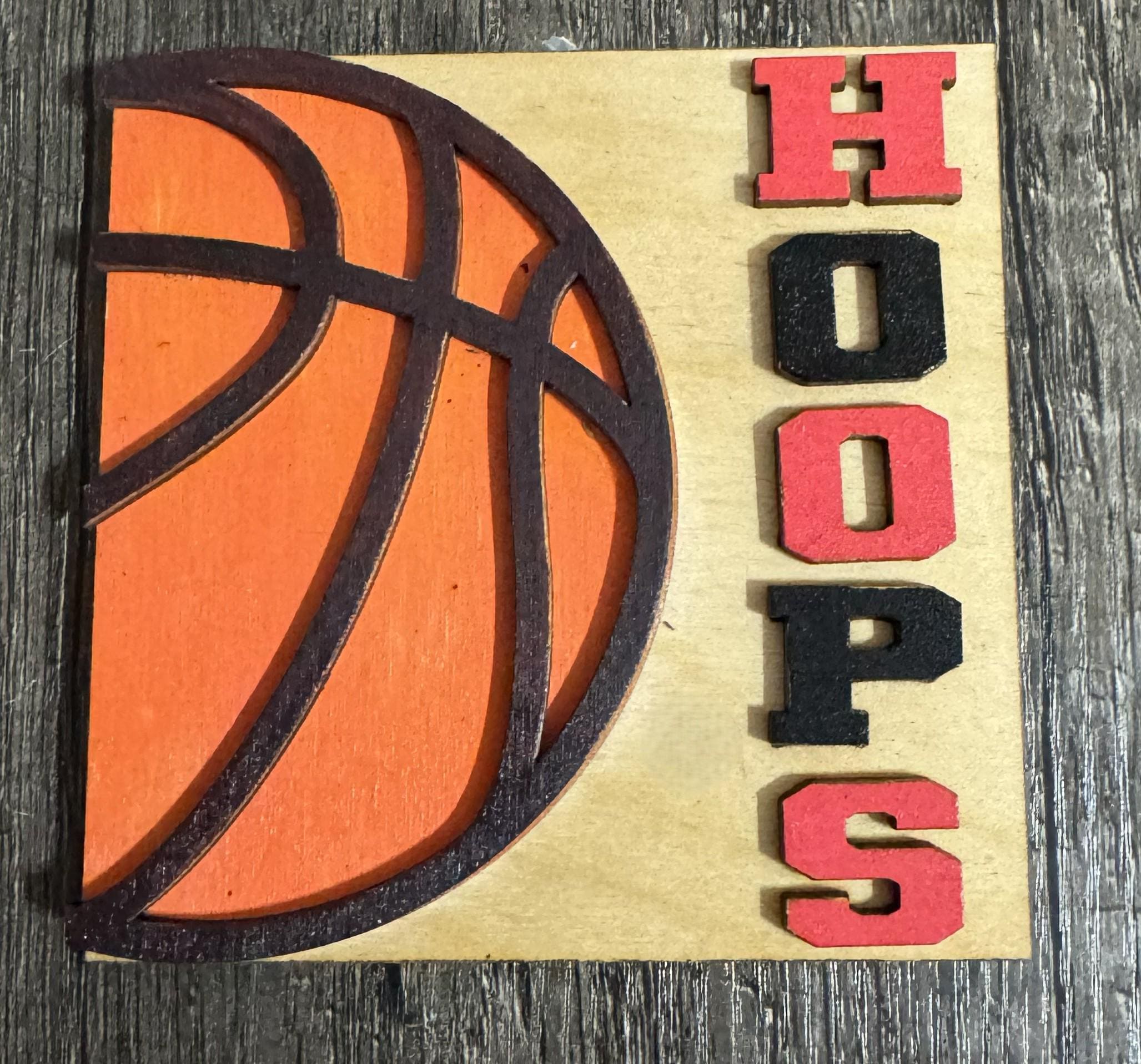 Add energetic, courtside style to your décor with these 4.25-inch hand‑painted wooden tiles, each designed with layered basketball details. Choose from basketballs, hoops, bold sports phrases, and fun game‑day designs to create a custom display for shelves, tiered trays, kids’ rooms, game rooms, or gift giving.