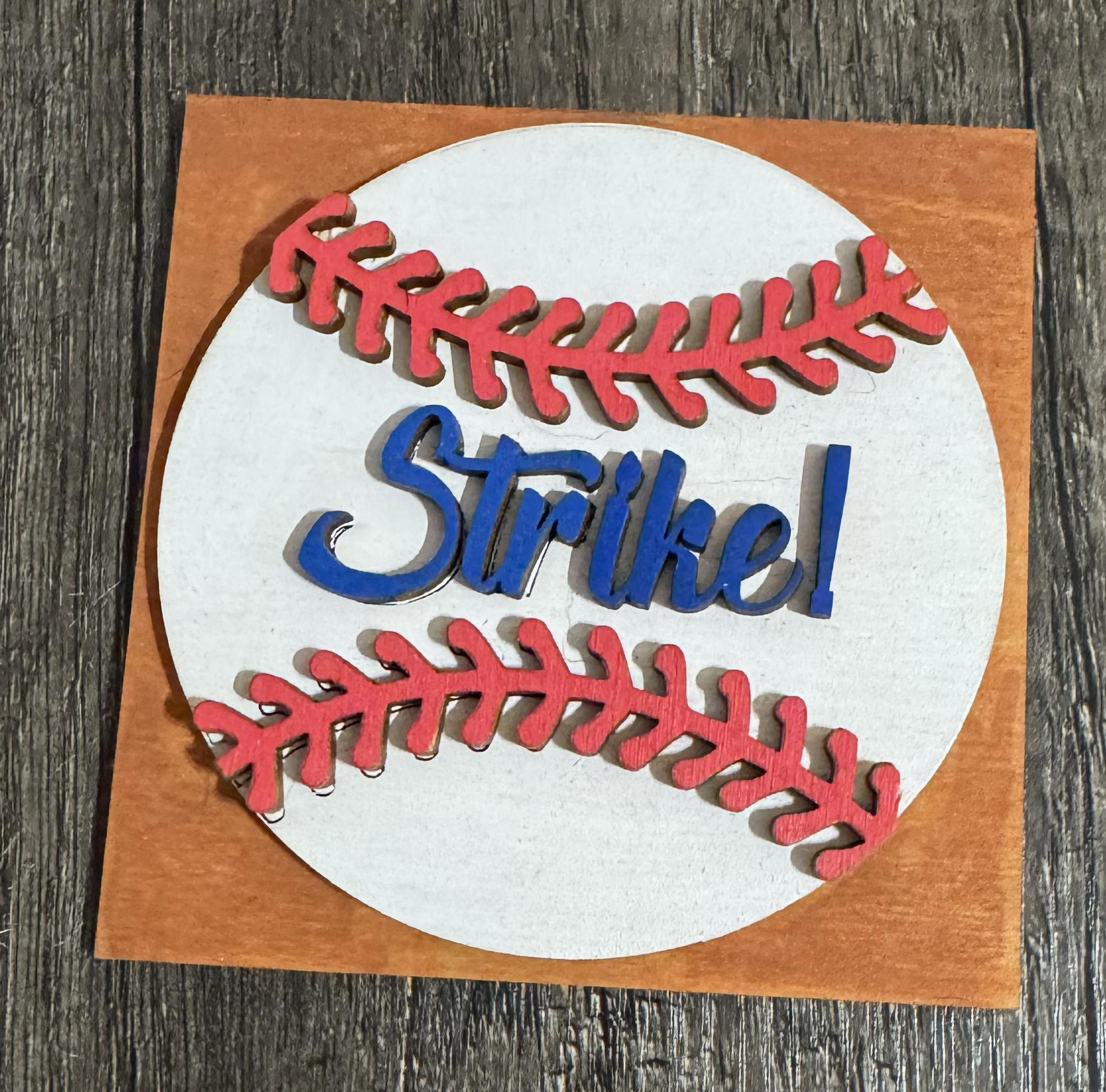 Bring ballpark charm into your home with these 4.25-inch hand‑painted wooden tiles, each designed with layered baseball details. Choose from baseballs, bats, home plate designs, and fun baseball sayings to create a custom display for shelves, tiered trays, kids’ rooms, game rooms, or gift giving.