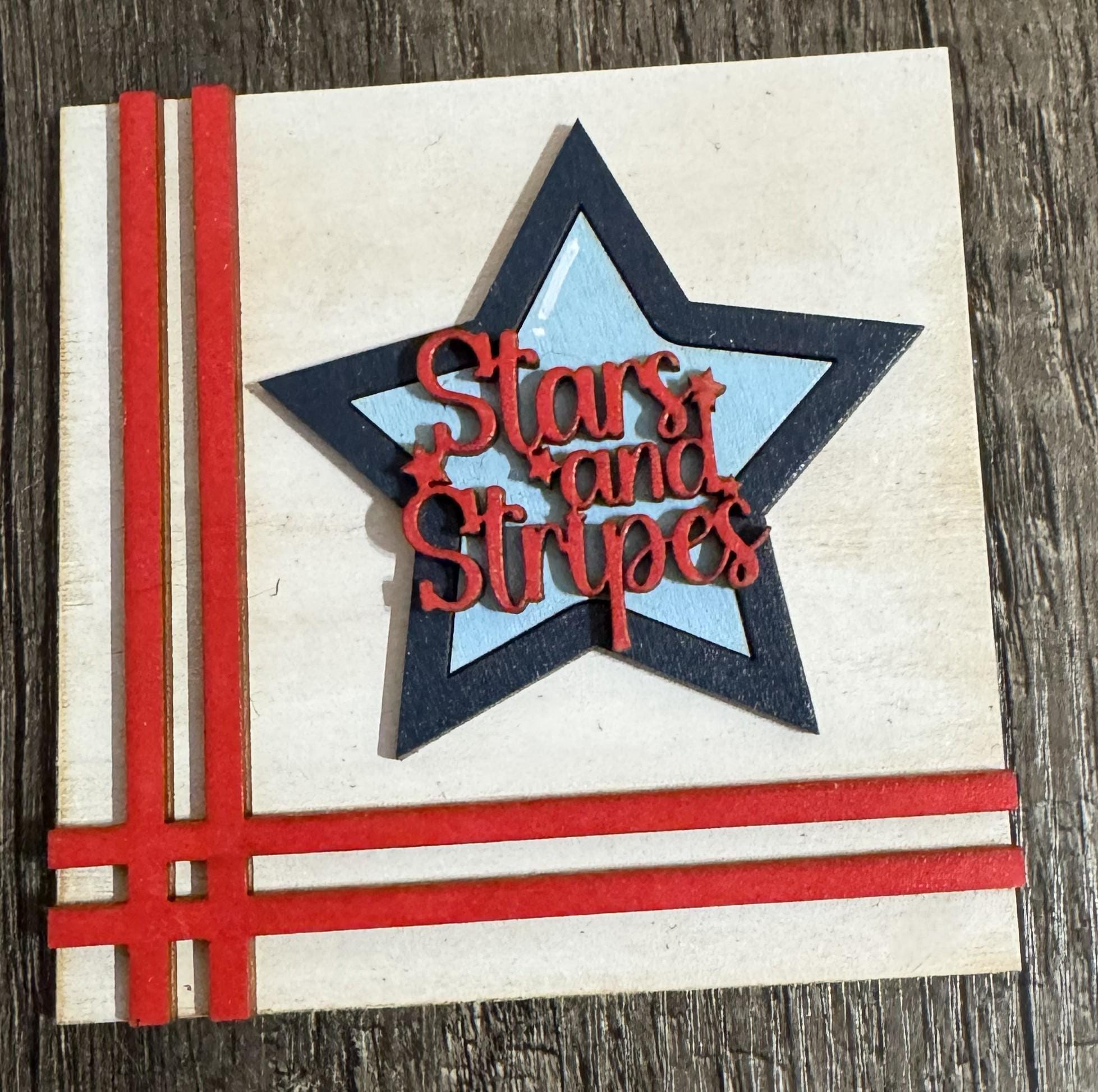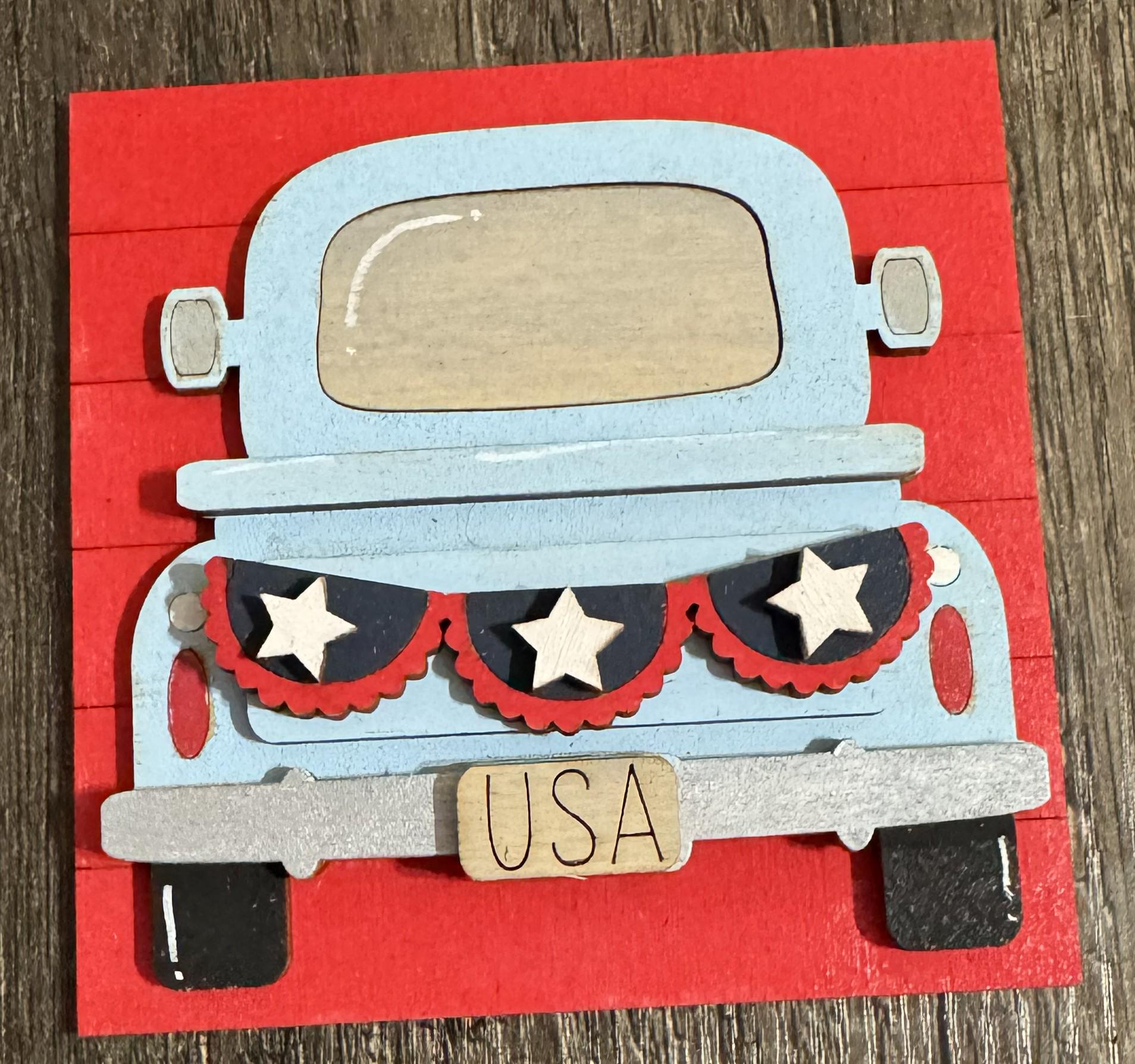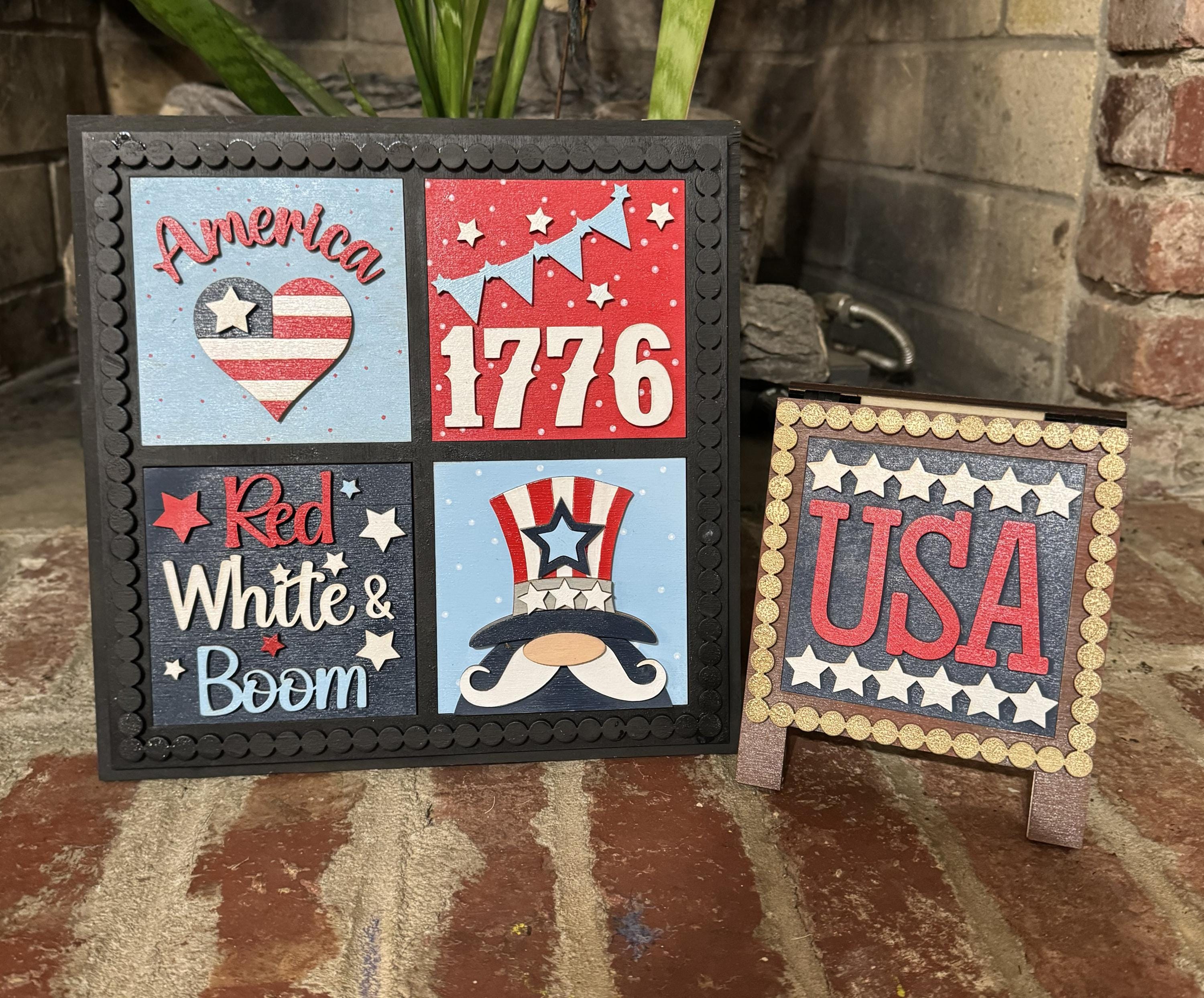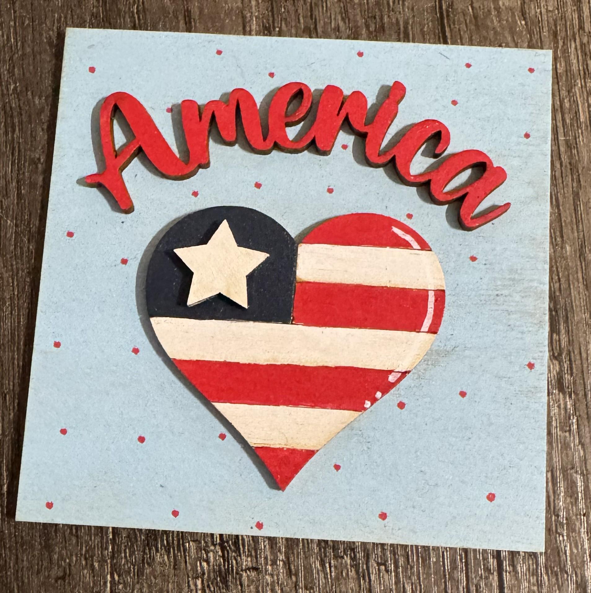 Celebrate the red, white, and blue with these hand‑painted interchangeable patriotic tiles, perfectly sized for your 4.25" display frames (sold separately). Each tile bursts with festive charm — stars, stripes, fireworks, vintage trucks, Uncle Sam, hearts, popsicles, and classic Americana sayings.