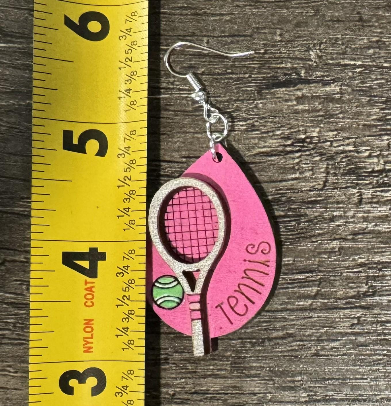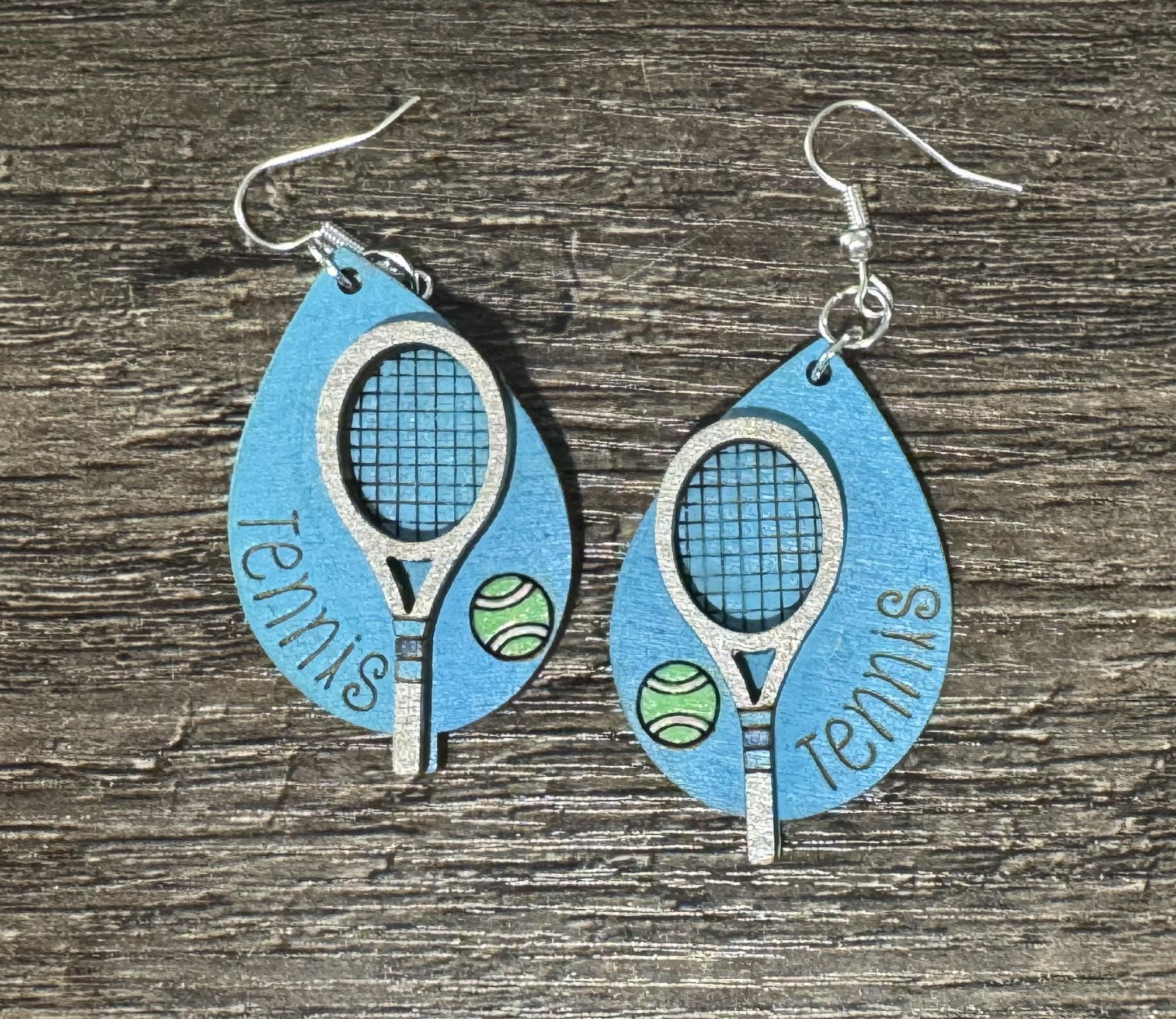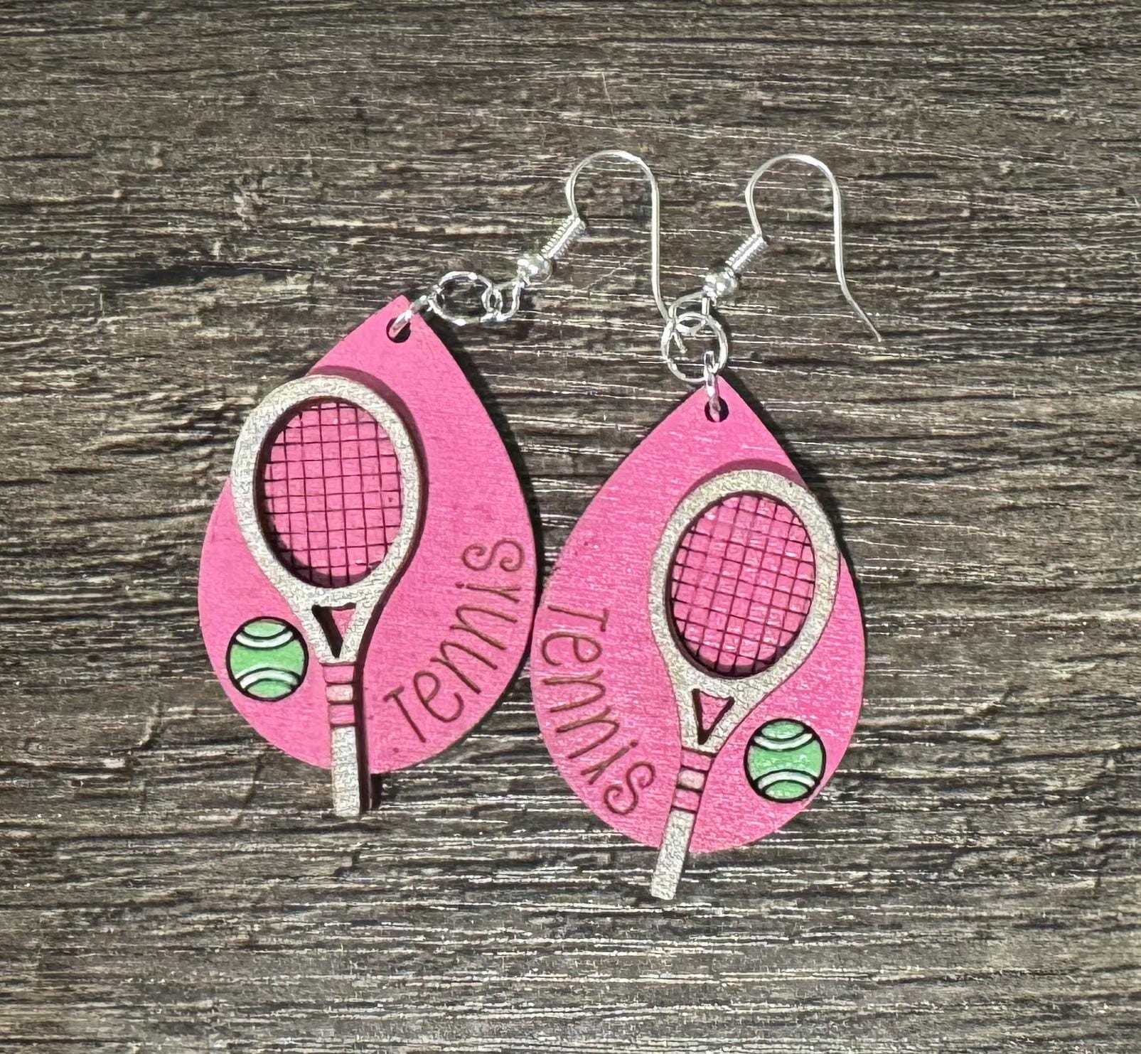 Show off your love for the game with these handmade tennis teardrop earrings, available in both pink and blue backgrounds. Each pair features a detailed tennis racket, bright tennis ball, and vertical “Tennis” lettering — the perfect accessory for players, coaches, fans, or anyone who lives for match day.