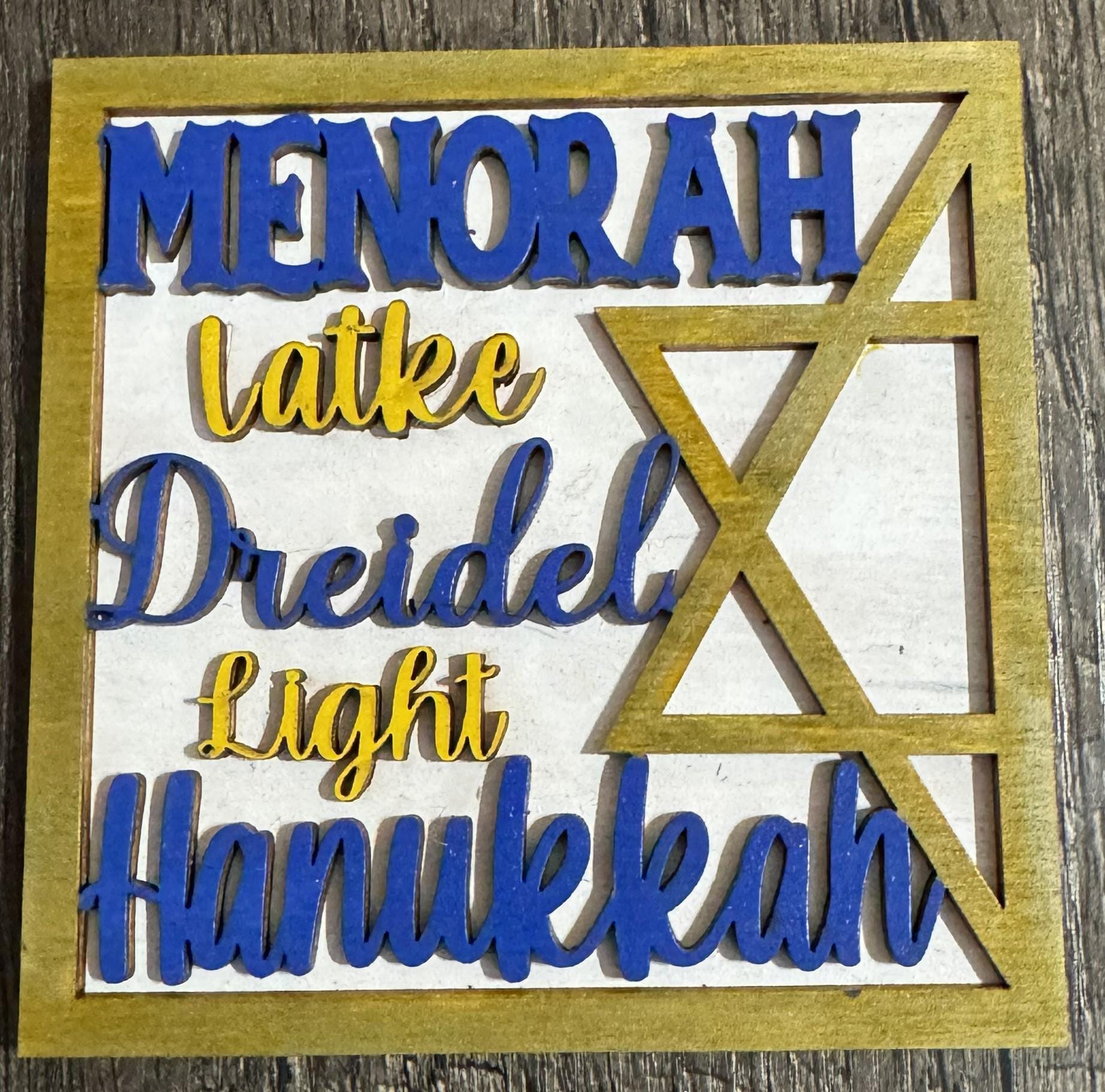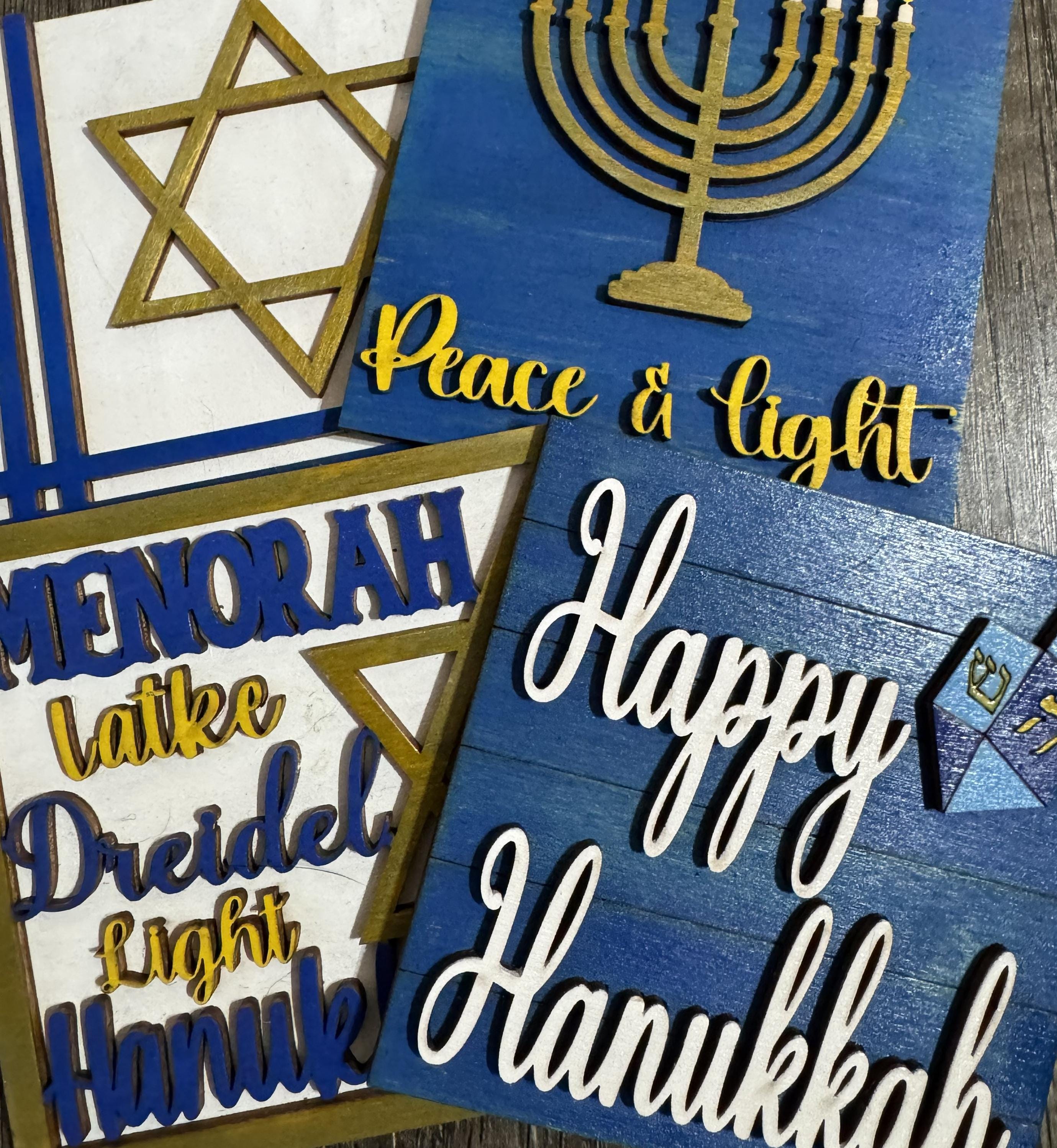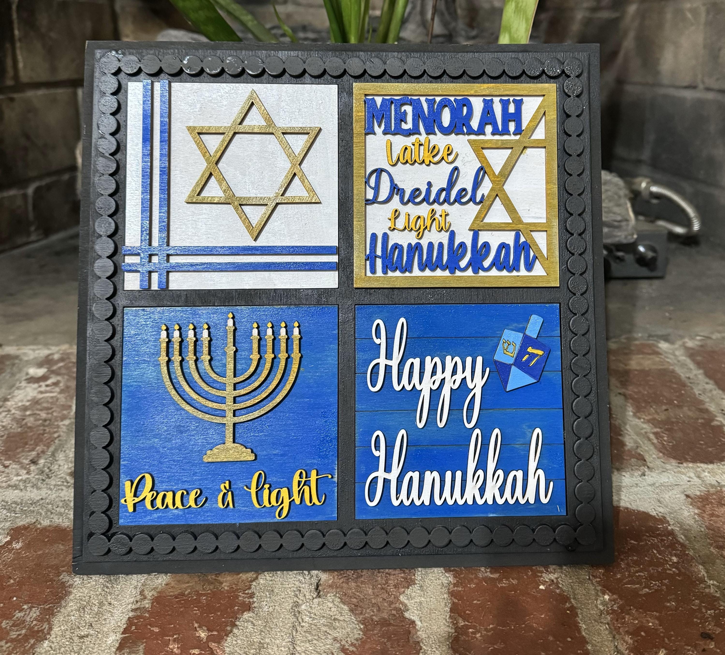 Celebrate the Festival of Lights with these hand‑painted interchangeable Hanukkah tiles, perfectly sized for your 4.25" display frames (sold separately). Each tile highlights meaningful symbols of the season — the Star of David, menorah, dreidel, festive greetings, and classic Hanukkah traditions.